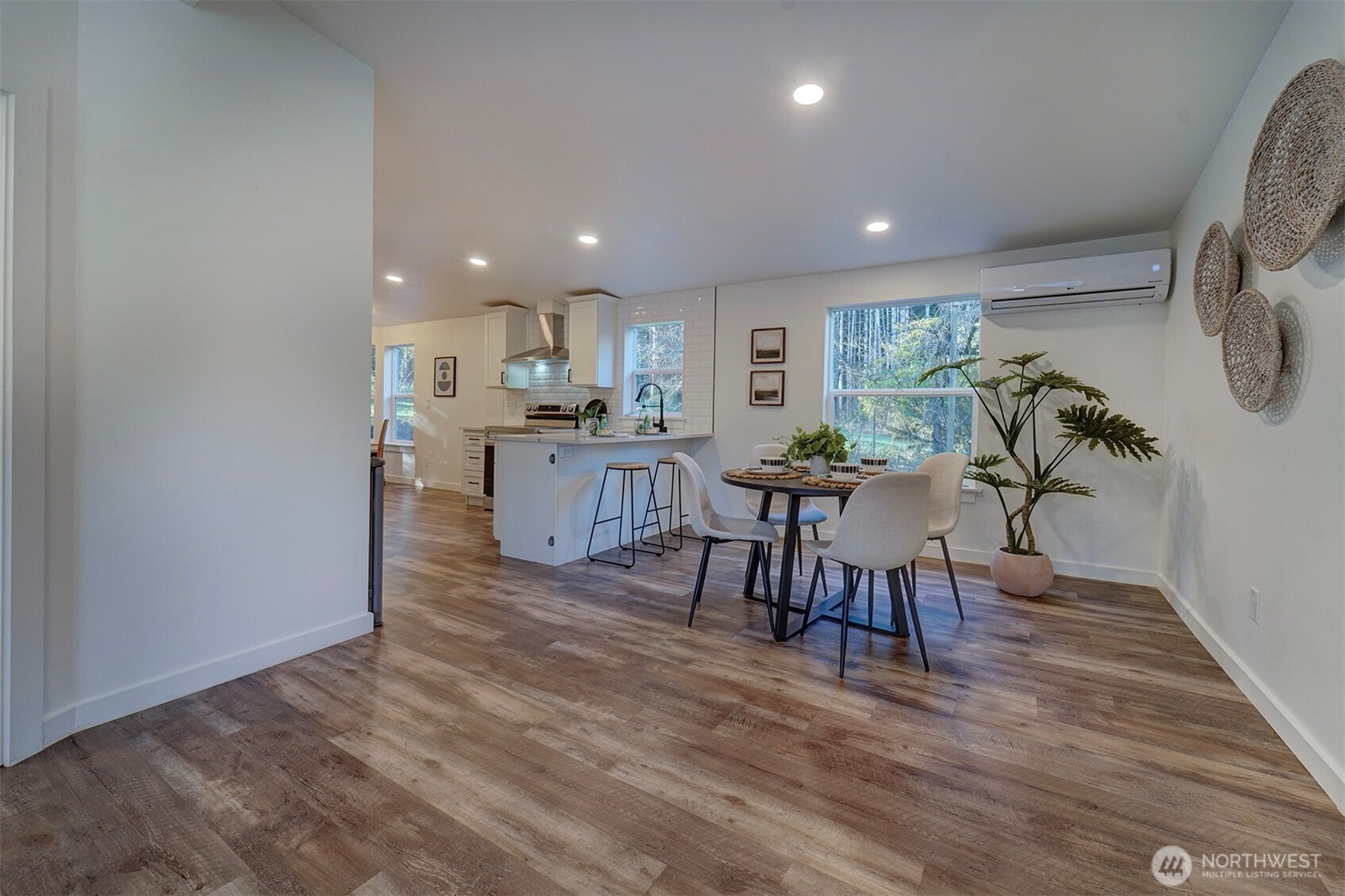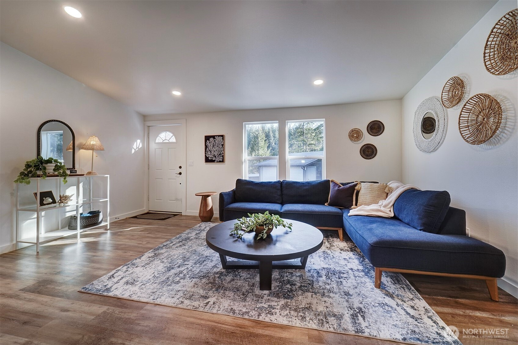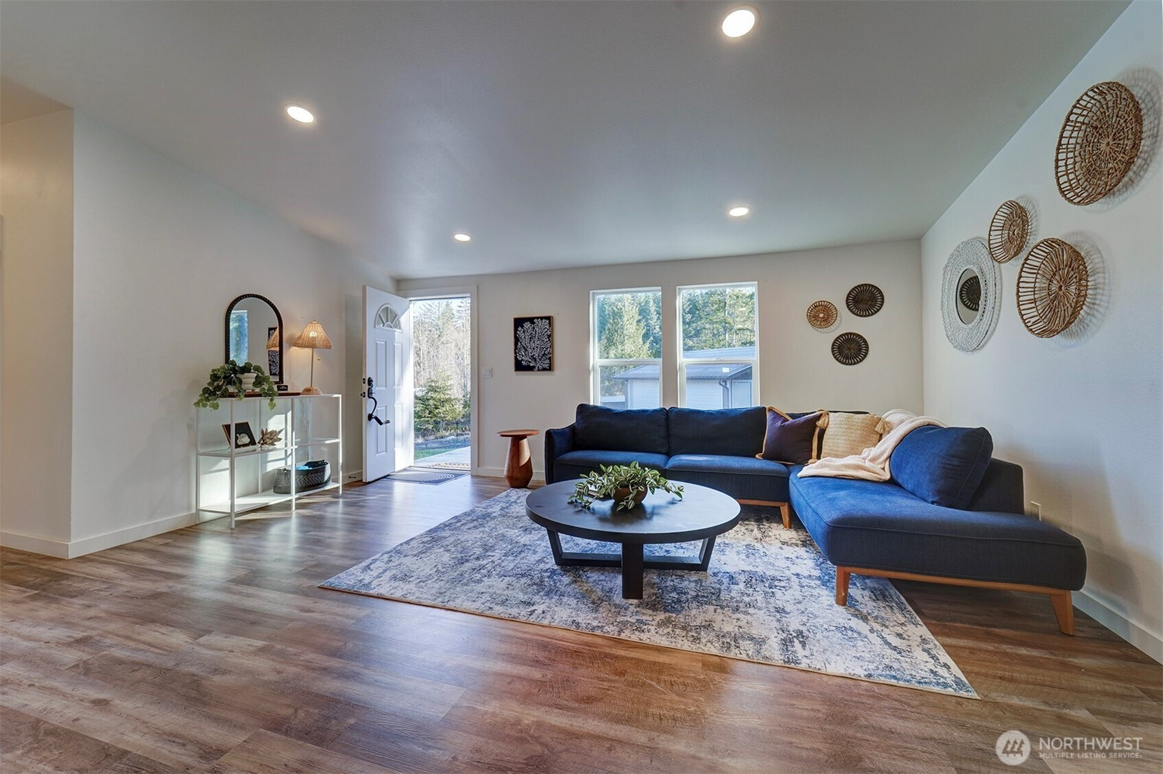 Discover the perfect blend of modern comfort and wooded serenity in this move-in-ready, single-level home. Extensively rebuilt in 2023 from the studs out, this 1,568-square-foot residence features three bedrooms and 1.75 baths, all thoughtfully designed for effortless living. The home sits on a sprawling 1.25-acre lot, offering a private forest retreat with a generous, sun-drenched clearing. For those with a green thumb, a fenced garden area provides the perfect space for a sustainable lifestyle. Hobbyists will love the detached two-car garage, which features its own electric panel and built-in workbenches—ideal for a workshop or secure storage. Inside, the home shines with high-end finishes, including quartz countertops, stainless steel appliances, and luxury vinyl flooring. Modern comforts like high-efficiency air conditioning and custom tile work elevate the space, while large windows capture peaceful territorial views. Perfectly positioned for an easy commute, you’re just minutes from Highway 3, Shelton, and Bremerton and Puget Sound Naval Shipyard. Tell your Broker you want to see this one today!
