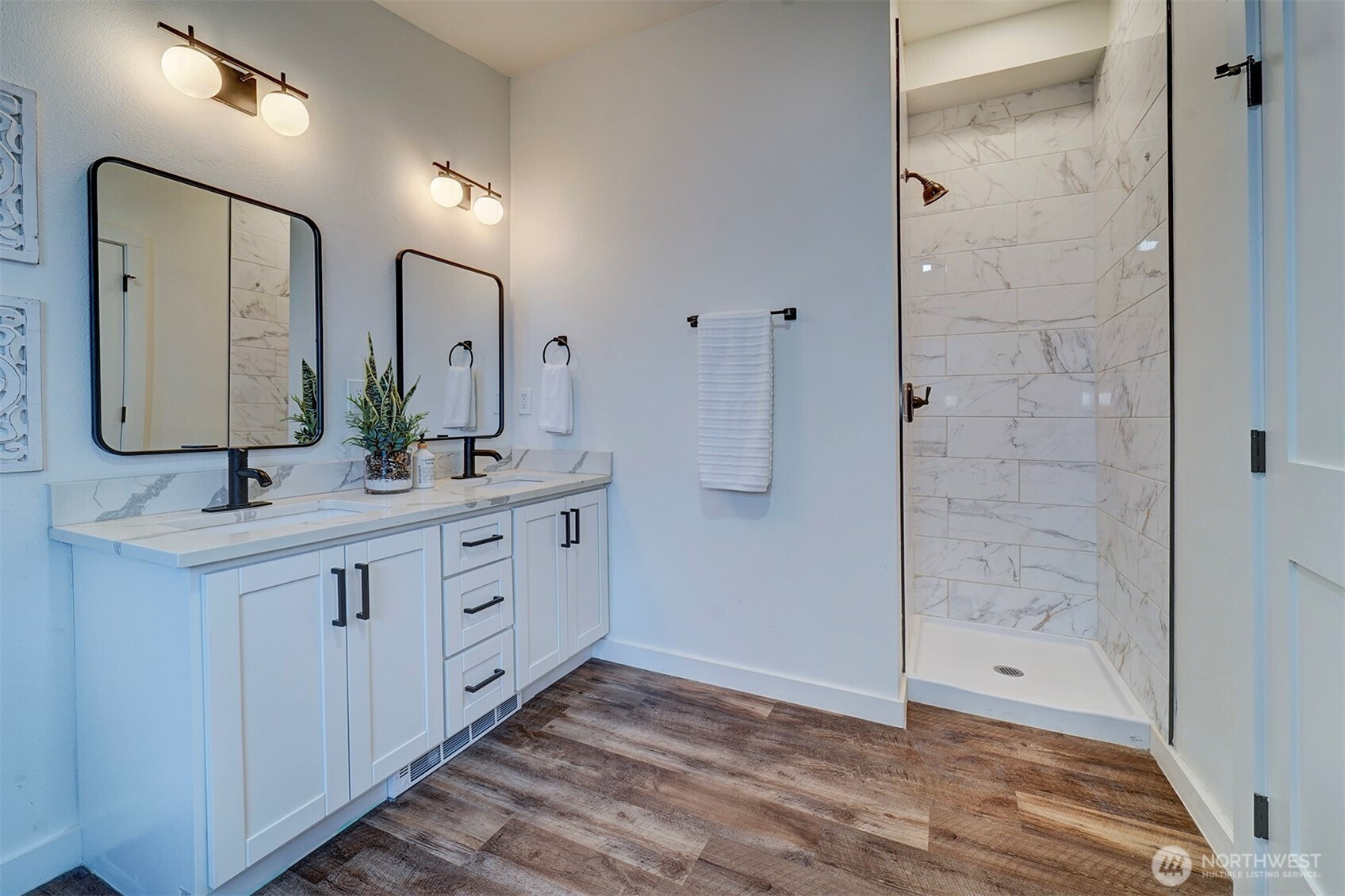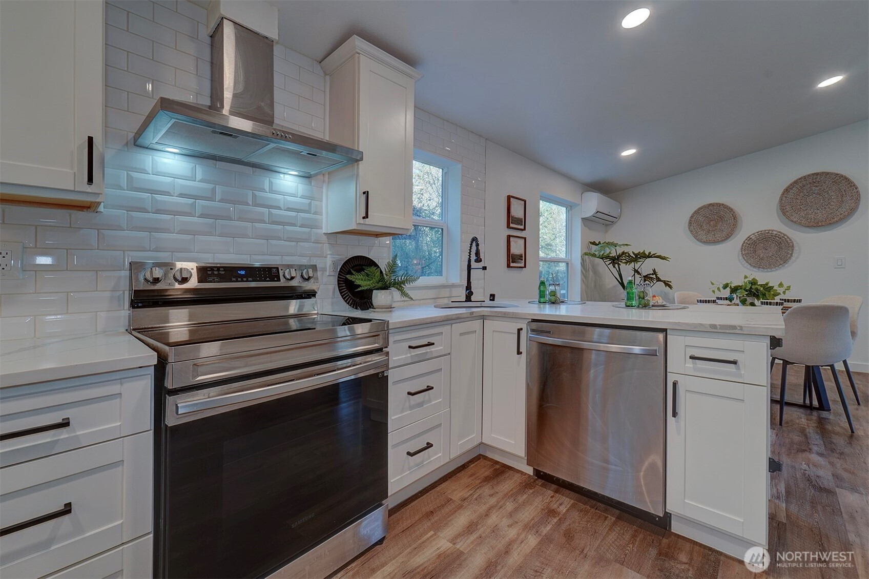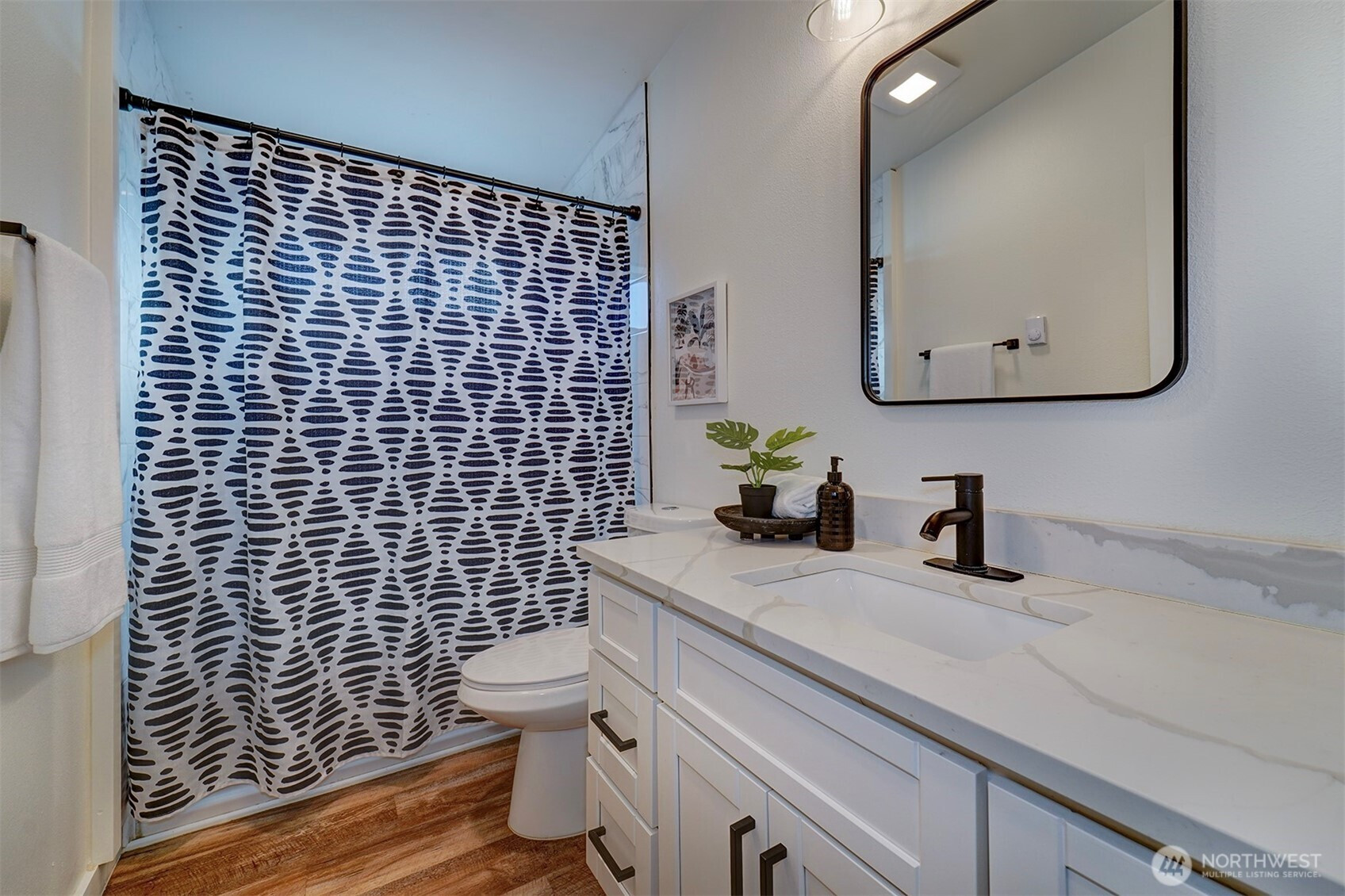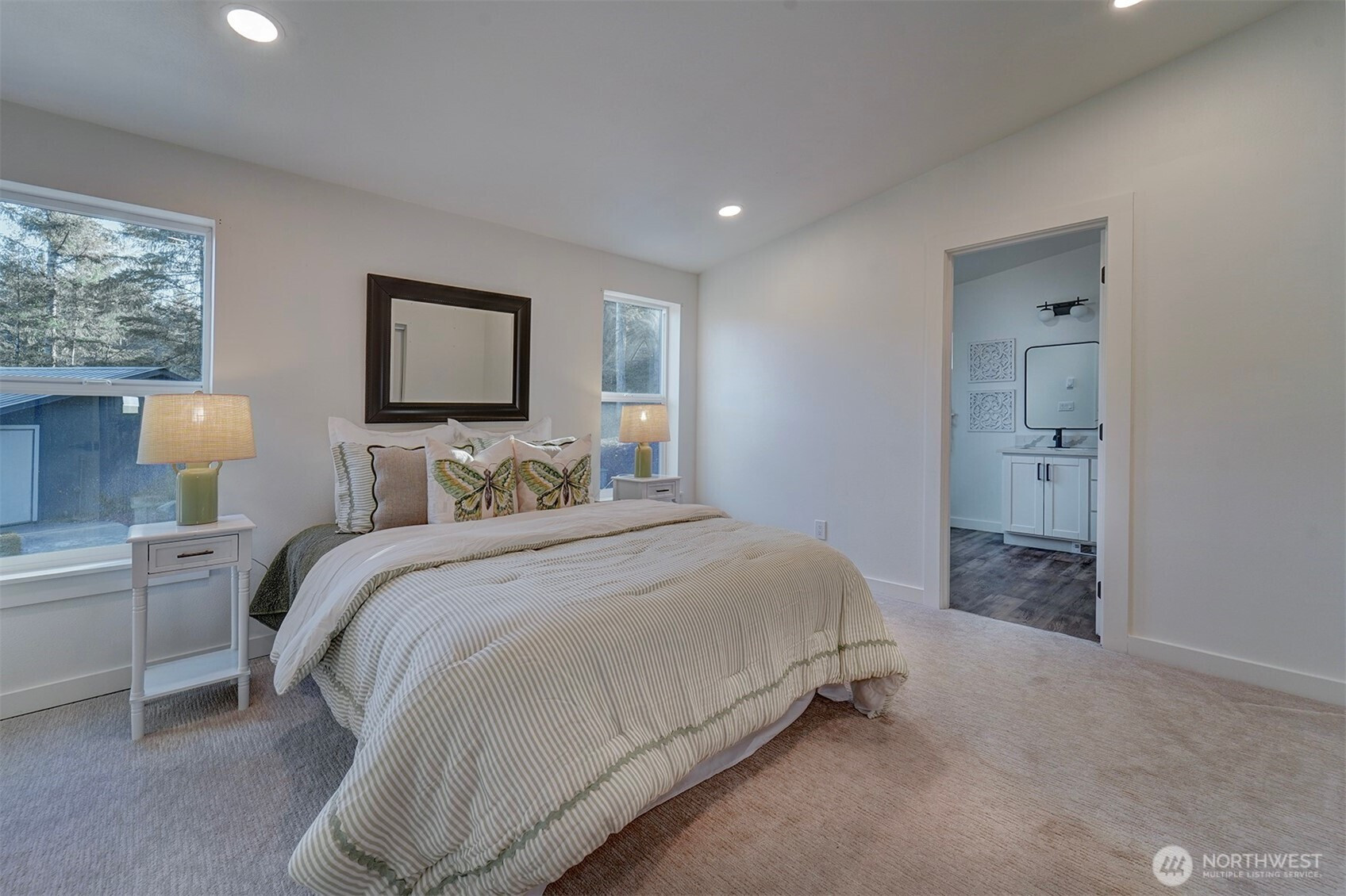Discover the perfect blend of modern comfort and wooded serenity in this move-in-ready, single-level home. Extensively rebuilt in 2023 from the studs out, this 1,568-square-foot residence features three bedrooms and 1.75 baths, all thoughtfully designed for effortless living. The home sits on a sprawling 1.25-acre lot, offering a private forest retreat with a generous, sun-drenched clearing. For those with a green thumb, a fenced garden area provides the perfect space for a sustainable lifestyle. Hobbyists will love the detached two-car garage, which features its own electric panel and built-in workbenches—ideal for a workshop or secure storage. Inside, the home shines with high-end finishes, including quartz countertops, stainless steel appliances, and luxury vinyl flooring. Modern comforts like high-efficiency air conditioning and custom tile work elevate the space, while large windows capture peaceful territorial views. Perfectly positioned for an easy commute, you’re just minutes from Highway 3, Shelton, and Bremerton and Puget Sound Naval Shipyard. Tell your Broker you want to see this one today!