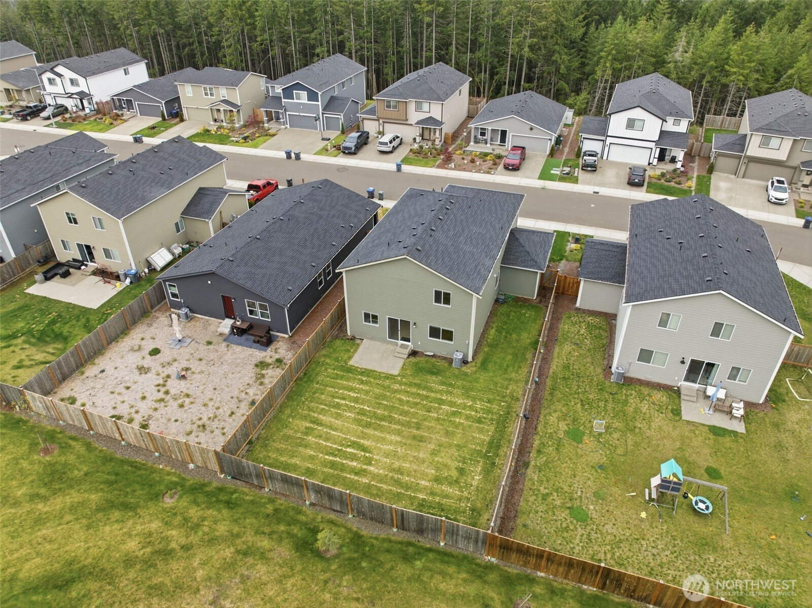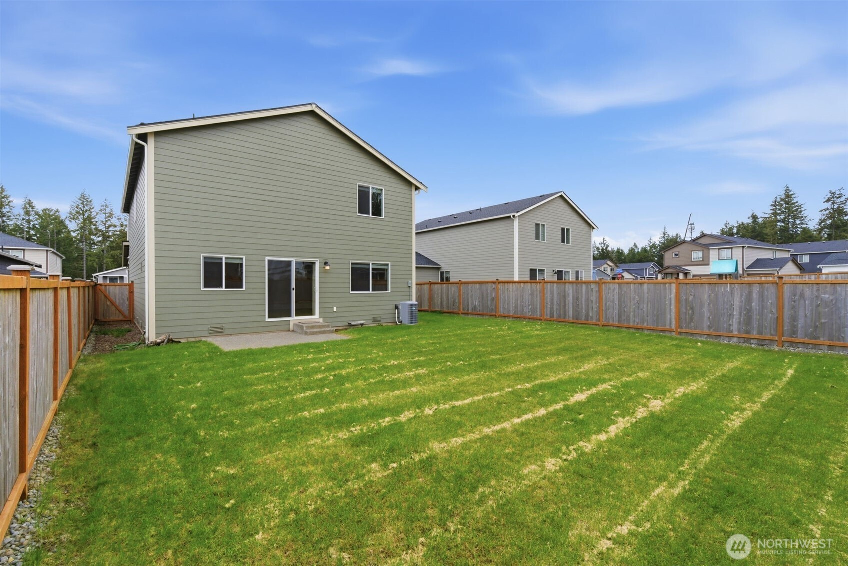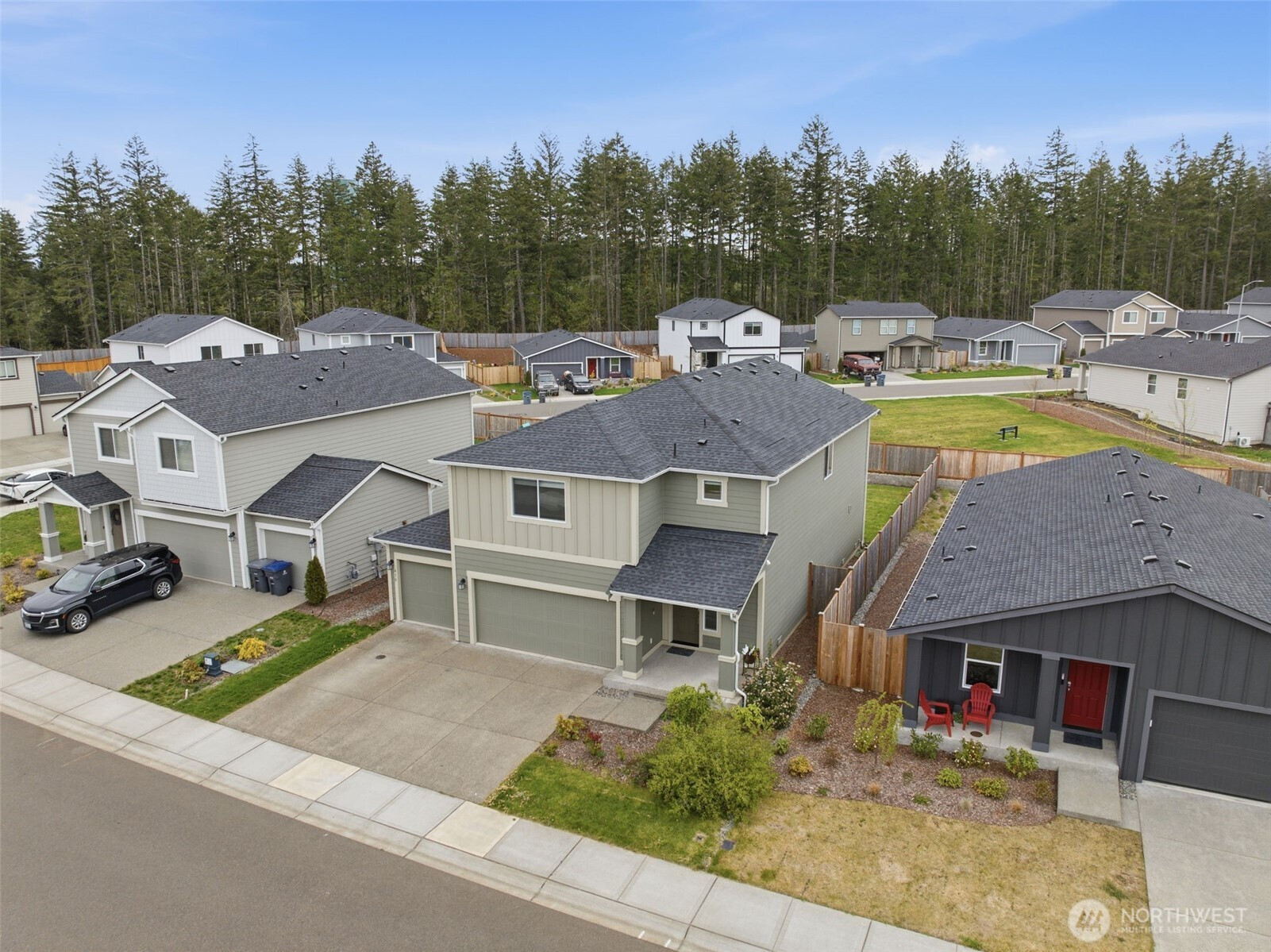 Perched above Belfair is this beautiful nearly new 2-story home built in 2023. Offering the perfect blend of modern design and functional space, this 5-bedroom, 3-bathroom residence is designed to accommodate any lifestyle with ease. The open-concept main floor features a seamless flow between the living, dining & kitchen areas (aka the great room); perfect for hosting gatherings or enjoying quiet evenings. Upstairs are 3 guest bedrooms and the generously sized primary bedroom with its own private bathroom and a huge walk-in closet. 3-car attached garage with ample storage throughout. Outside, the fully fenced backyard provides a secure and private oasis for pets, play, gardening or weekend BBQs. Situated in Belfair's newest neighborhood, Olympic Ridge, with sidewalks, trails, and common areas, don't forget the VIEWs of the Hood Canal and the Olympic Mountain Range while driving up. Minutes away from schools, shopping centers, Post Office, and major highways for an effortless commute. Why wait for a new build when this turn-key gem is ready for you today?