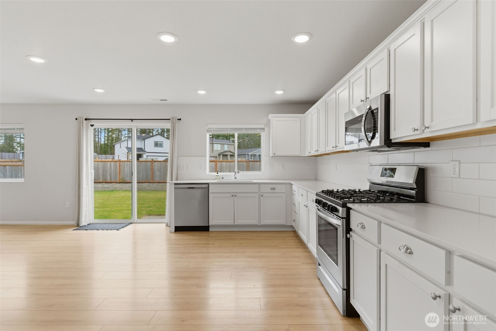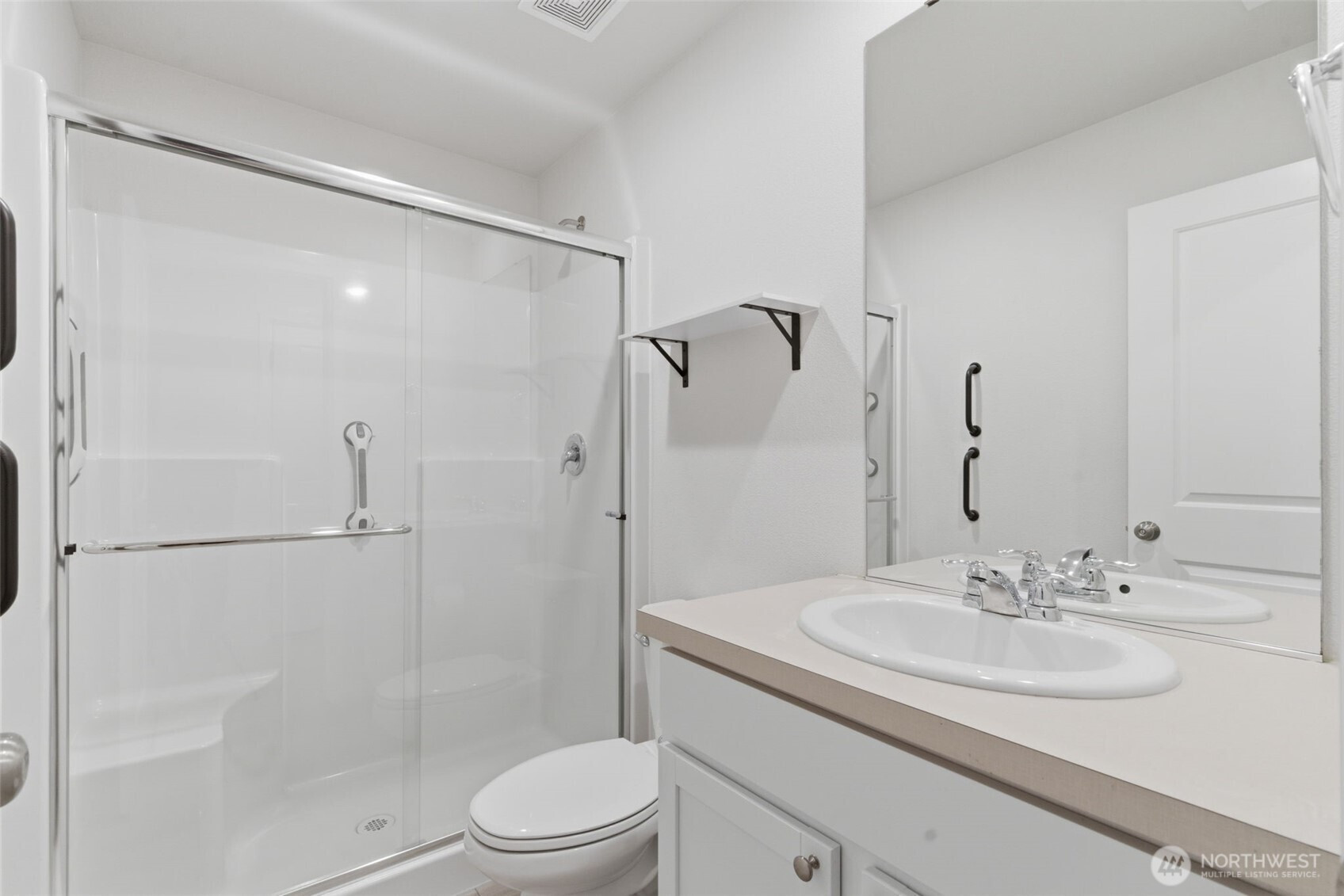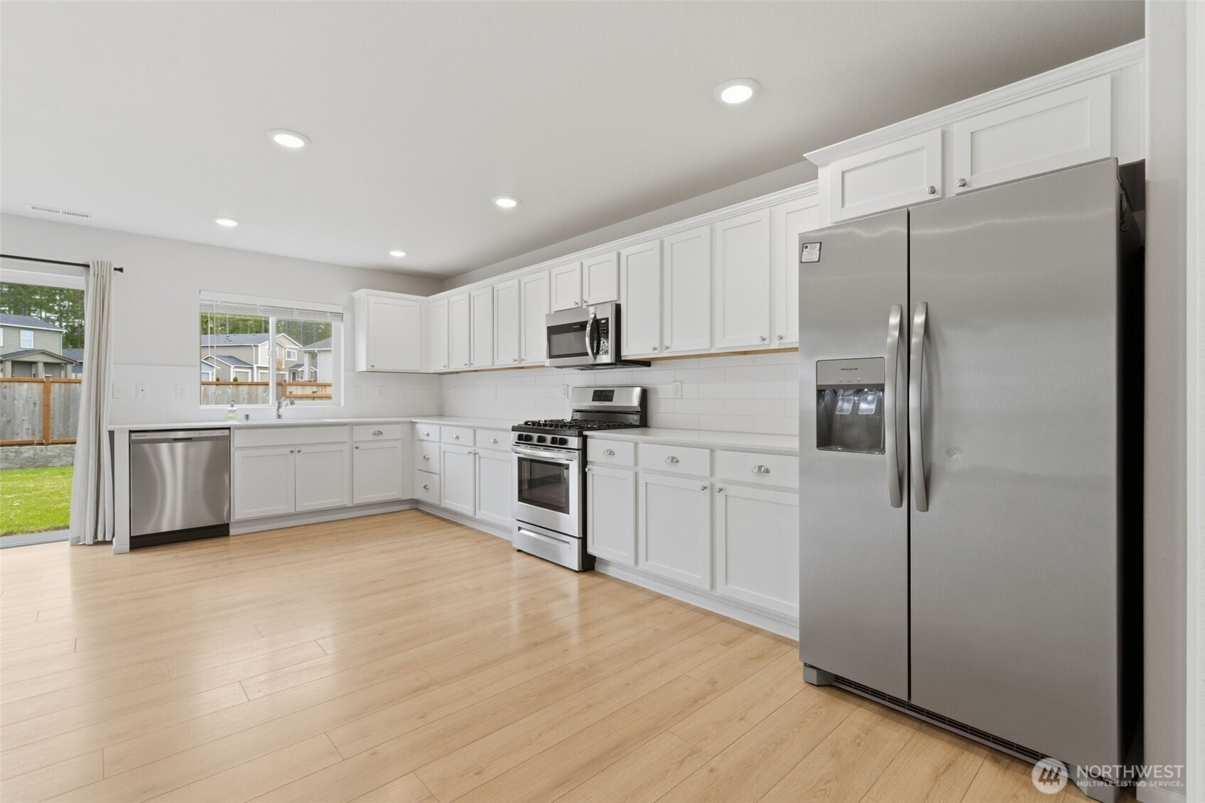Perched above Belfair is this beautiful nearly new 2-story home built in 2023. Offering the perfect blend of modern design and functional space, this 5-bedroom, 3-bathroom residence is designed to accommodate any lifestyle with ease. The open-concept main floor features a seamless flow between the living, dining & kitchen areas (aka the great room); perfect for hosting gatherings or enjoying quiet evenings. Upstairs are 3 guest bedrooms and the generously sized primary bedroom with its own private bathroom and a huge walk-in closet. 3-car attached garage with ample storage throughout. Outside, the fully fenced backyard provides a secure and private oasis for pets, play, gardening or weekend BBQs. Situated in Belfair's newest neighborhood, Olympic Ridge, with sidewalks, trails, and common areas, don't forget the VIEWs of the Hood Canal and the Olympic Mountain Range while driving up. Minutes away from schools, shopping centers, Post Office, and major highways for an effortless commute. Why wait for a new build when this turn-key gem is ready for you today?