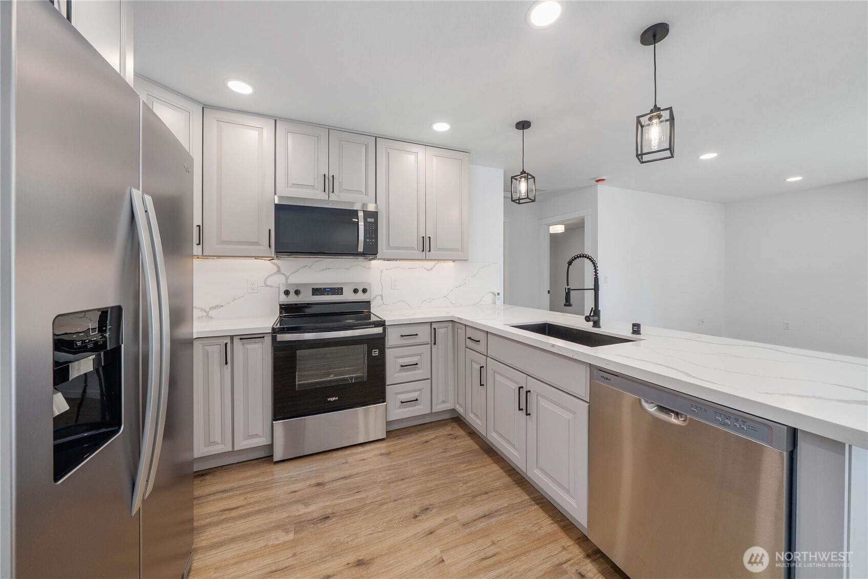Welcome to a rare opportunity to own a stunning new construction home perfectly situated within Shelton city limits! Thoughtfully designed with both style and functionality in mind, this home offers modern living at its finest in an ideal, convenient location. Step inside to discover a beautifully curated interior featuring quartz countertops and a full-height quartz backsplash in the kitchen, seamlessly carried through the bathrooms for a cohesive, upscale feel. The kitchen is equipped with sleek stainless steel appliances, creating a space that is as functional as it is eye-catching—perfect for everyday living and entertaining alike. Custom upgrades elevate this home even further, including elegant under-cabinet lighting that adds warmth and ambiance, along with an EV charger in the garage—perfect for today’s lifestyle and future-ready convenience. Outside, enjoy low-maintenance landscaping designed to provide a peaceful, tranquil setting without the upkeep. Whether you’re relaxing at home or heading out, you’ll appreciate the easy balance of comfort and simplicity this property offers. New construction opportunities like this don’t come around often—especially in such a prime Shelton location. Don’t miss your chance to make this exceptional home yours!