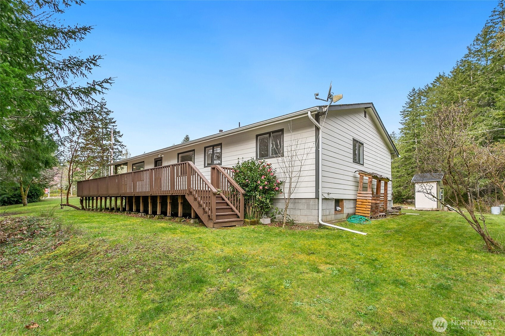 Stunning single-story home on almost 3 acres, this beautifully updated property offers the perfect blend of modern upgrades & outdoor living. Recent improvements include fresh interior & exterior paint, resurfaced wrap-around patio, new flooring & trim, new electrical panel & tankless water heater. The heart of this home is the brand-new kitchen, featuring custom cabinetry, butcher block counters & stainless steel appliances. The remodeled bathroom boasts a custom vanity, elegant lighting & mirror w/ linen cabinetry for added storage. Outside, the property offers gorgeous landscaping improvements including walking trails, beauty vegetation, gardening & flower beds.
