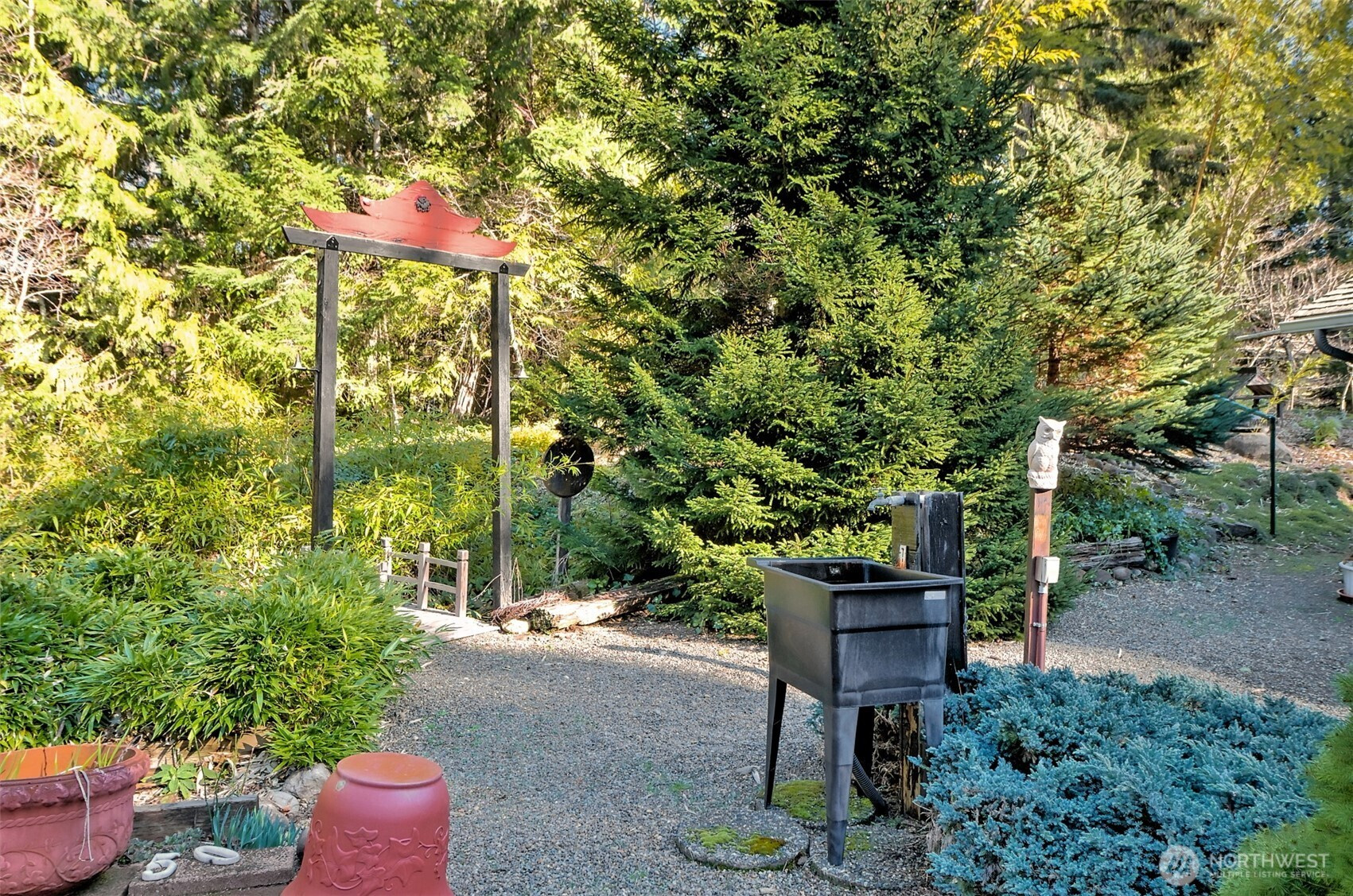 Tucked away in the desirable Lake Cushman area, this beautiful 3-bedroom, 2 full bath home offers over 2,000 sq ft of inviting living space on 5 private acres. The thoughtfully designed layout features a main floor primary bedroom, a cozy fireplace, and a spacious open kitchen. An attached sunroom provides the perfect spot to relax and enjoy the peaceful surroundings year-round. Outside, the property truly shines. A large shop offers ample space for projects, storage, or hobbies, while the detached artist studio creates a quiet, inspiring retreat. The grounds are beautifully developed with a terraced garden, a mature orchard boasting 10 different fruit varieties, and a serene koi pond complete with 17-year-old koi—all included. Enjoy privacy and tranquility while still benefiting from all Lake Cushman amenities, including parks, lakes, boat launches, a golf course, hiking trails, and community recreational areas. Whether you're looking for a full-time residence or a private getaway, this property offers a rare blend of comfort, character, and connection to nature.