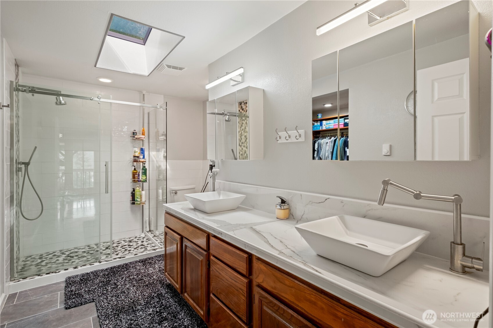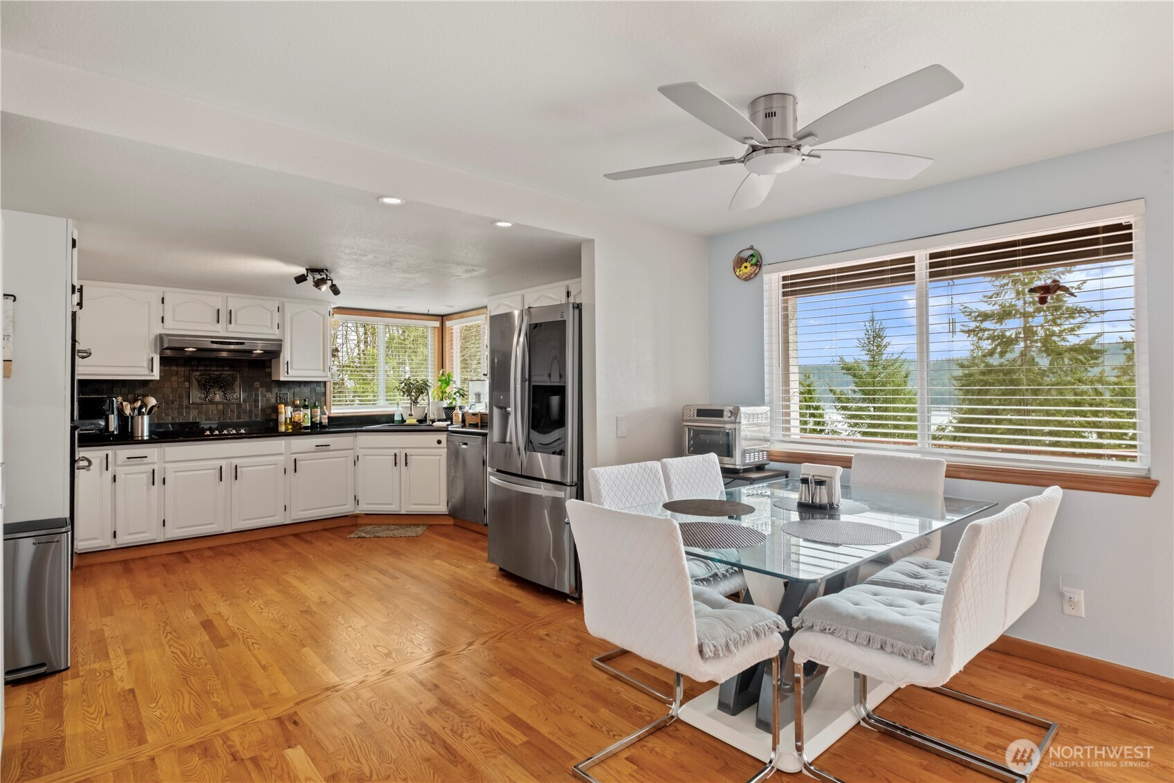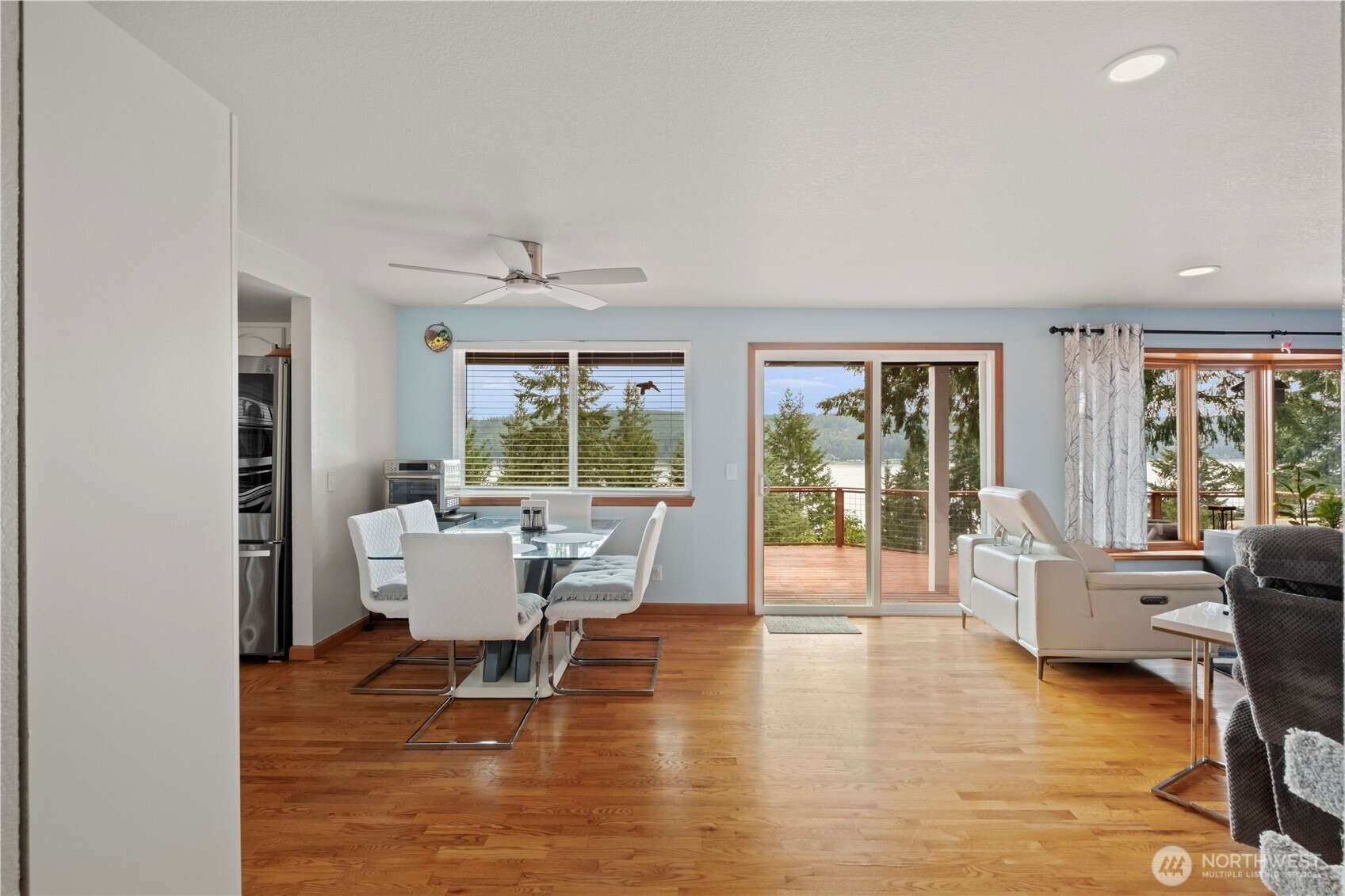 Imagine waking up to awe-inspiring views of Hood Canal, watching orcas, eagles, otters and other wildlife from every bedroom in this magnificent two-story sanctuary! This 4-bedroom, 3-bathroom home has been meticulously upgraded with new paint, windows, doors, and flooring. Every bathroom has been artfully remodeled, including the master ensuite, which includes a large walk-in closet. The open-concept living room and kitchen are perfect for entertaining, while the new ductless A/C unit ensures comfort year-round. Add a whole-house generator hookup, an oversized three-car garage with an E-car charging station hookup, hot tub, and a private beach and boat ramp. A dedicated office/playroom makes this property functional as well as beautiful.
