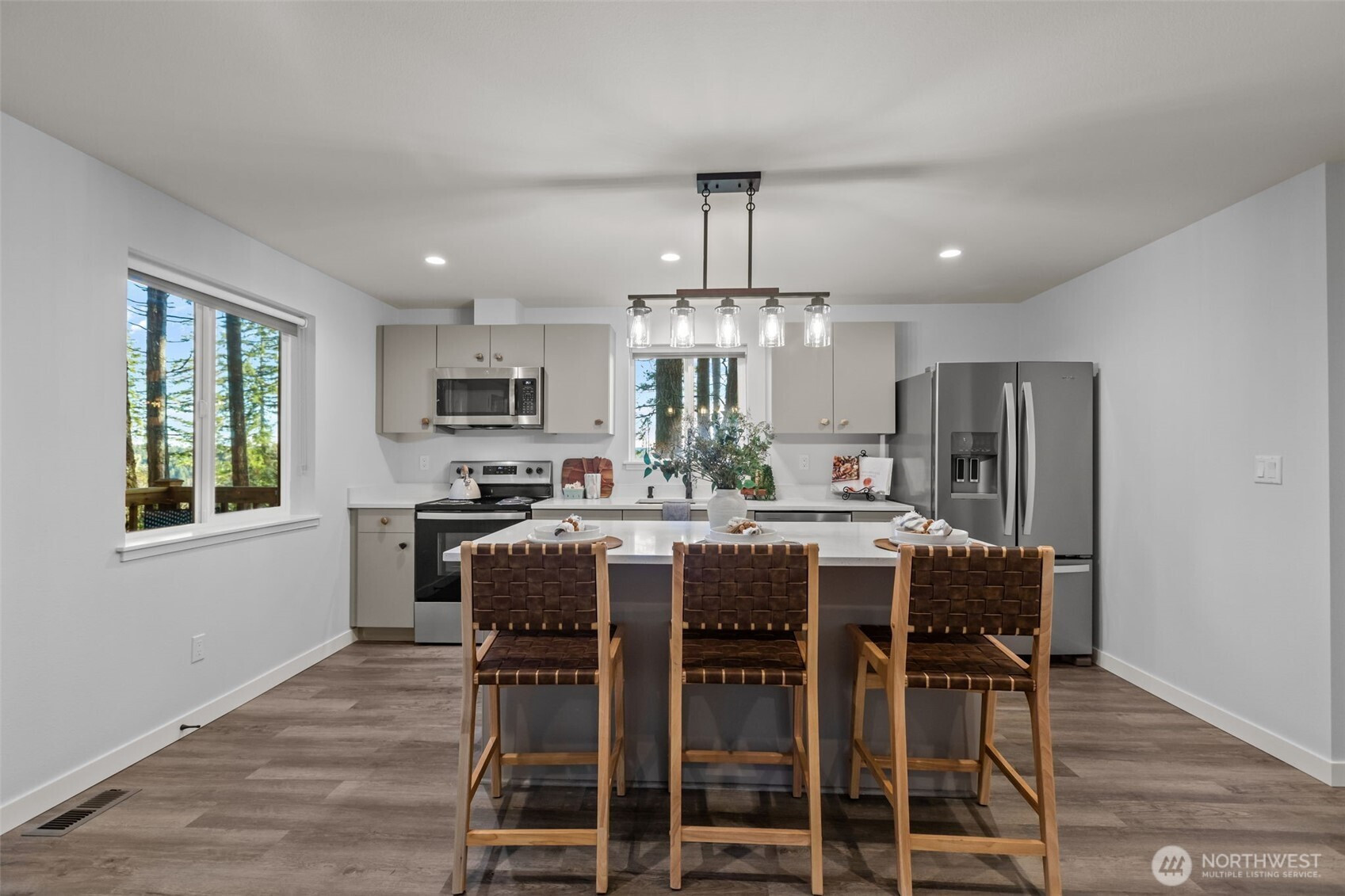 Stunning fully renovated open-concept one-story just blocks from Maggie Lake! Welcome to your dreamy cabin retreat, nestled on a large corner lot with lush landscaping in the quiet and serene Maggie Lake community. Enjoy a beautiful territorial view while you sip your morning coffee, soaking in the peaceful surroundings. This home has been fully remodeled from head to toe with a stylish Anthropologie-inspired vibe, blending modern finishes with cozy, inviting charm. Features include soft-close cabinetry and drawers, quartz countertops, double-pane windows, air conditioning for year-round comfort, and a brand-new kitchen with modern appliances. Step inside to discover fresh interior and exterior paint and warm, welcoming living spaces filled with character and natural light. The primary bedroom offers double closets for ample storage, with an additional closet housing the hot water tank and washer/dryer combo. A brand-new lifetime warranty roof adds peace of mind, along with ample RV and boat parking—perfect for all your outdoor toys. Enjoy the private lake, boat launch, and park, paired with private access to Hood Canal where you can pick oysters, crab, and clams. This home is ideal as a full-time residence or the perfect weekend getaway. Located in the heart of Maggie Lake, you’ll experience the best of lake living and saltwater adventures in one peaceful setting.
