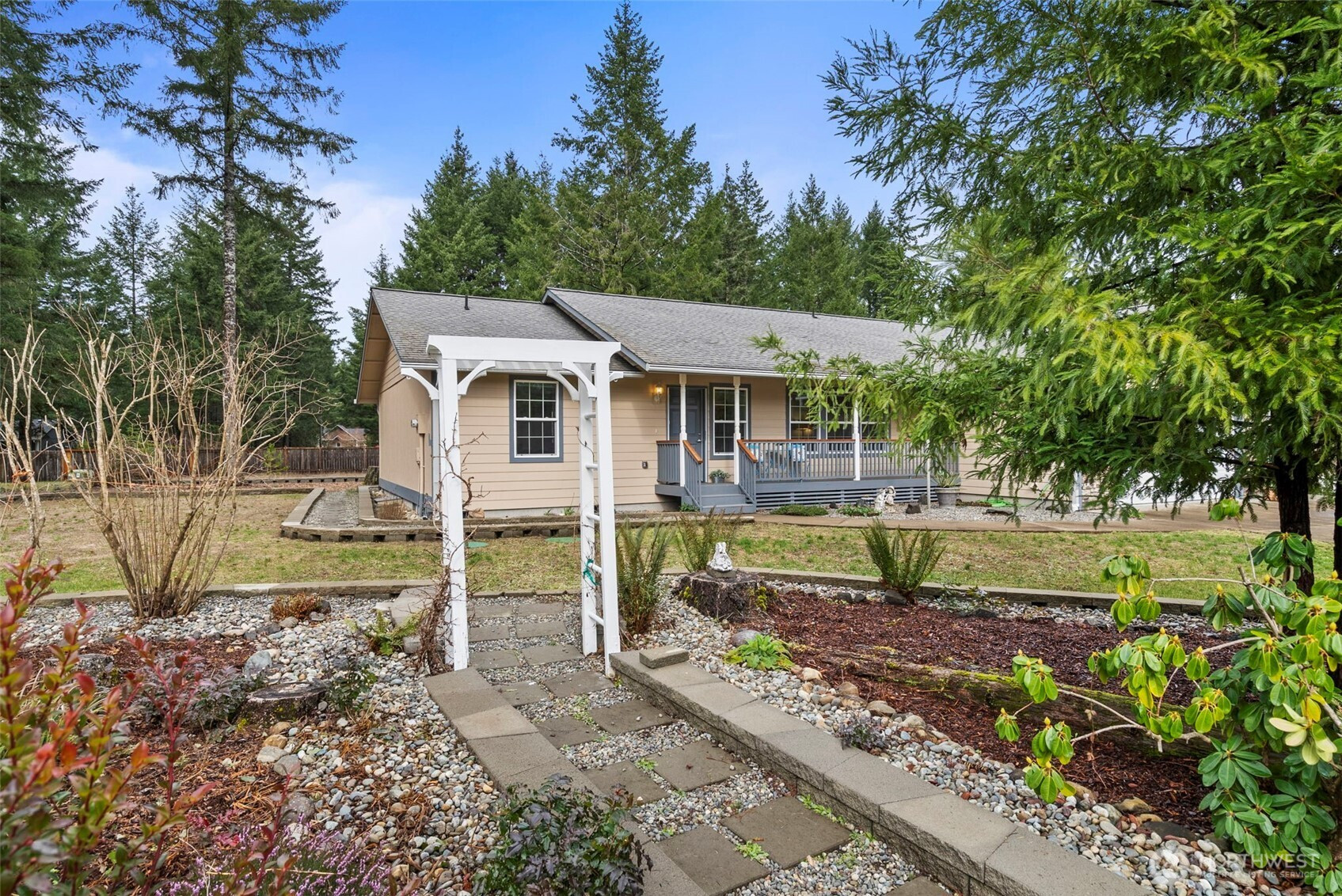Escape to your own peaceful retreat in Shelton, where privacy, open space, and everyday convenience blend beautifully. Set on a flat, landscaped, and fully usable 1.11-acre lot. This 3-bedroom, 1.75-bath home offers 1,904 sq ft of comfortable one-level living, located only 30 minutes to Olympia and 1 hour to Tacoma. Inside, soaring cathedral ceilings and warm natural light create an inviting, airy feel from the moment you enter. The open-concept layout with hard surface flooring connects the spacious kitchen and living room, making it easy to gather, entertain, or simply enjoy quiet evenings at home. A versatile 4th room offers flexibility for a home office, media space, or additional bedroom. The primary suite is designed for rest and relaxation, complete with a walk-in closet and private slider leading to the expansive deck—perfect for morning coffee or unwinding under the evening sky. Outdoors, you’ll love the charming covered front porch, and the low-maintenance, composite decking. The professionally landscaped grounds offer you elevated peace with plenty of space to garden or roam. An attached 2-car garage, storage shed, and ample boat & RV parking add everyday functionality. Enjoy the feeling of being away from it all while still having nearby amenities and easy freeway access. Major cities are within reach, yet far enough to truly slow down and unwind. *Check out the Listing Video!*