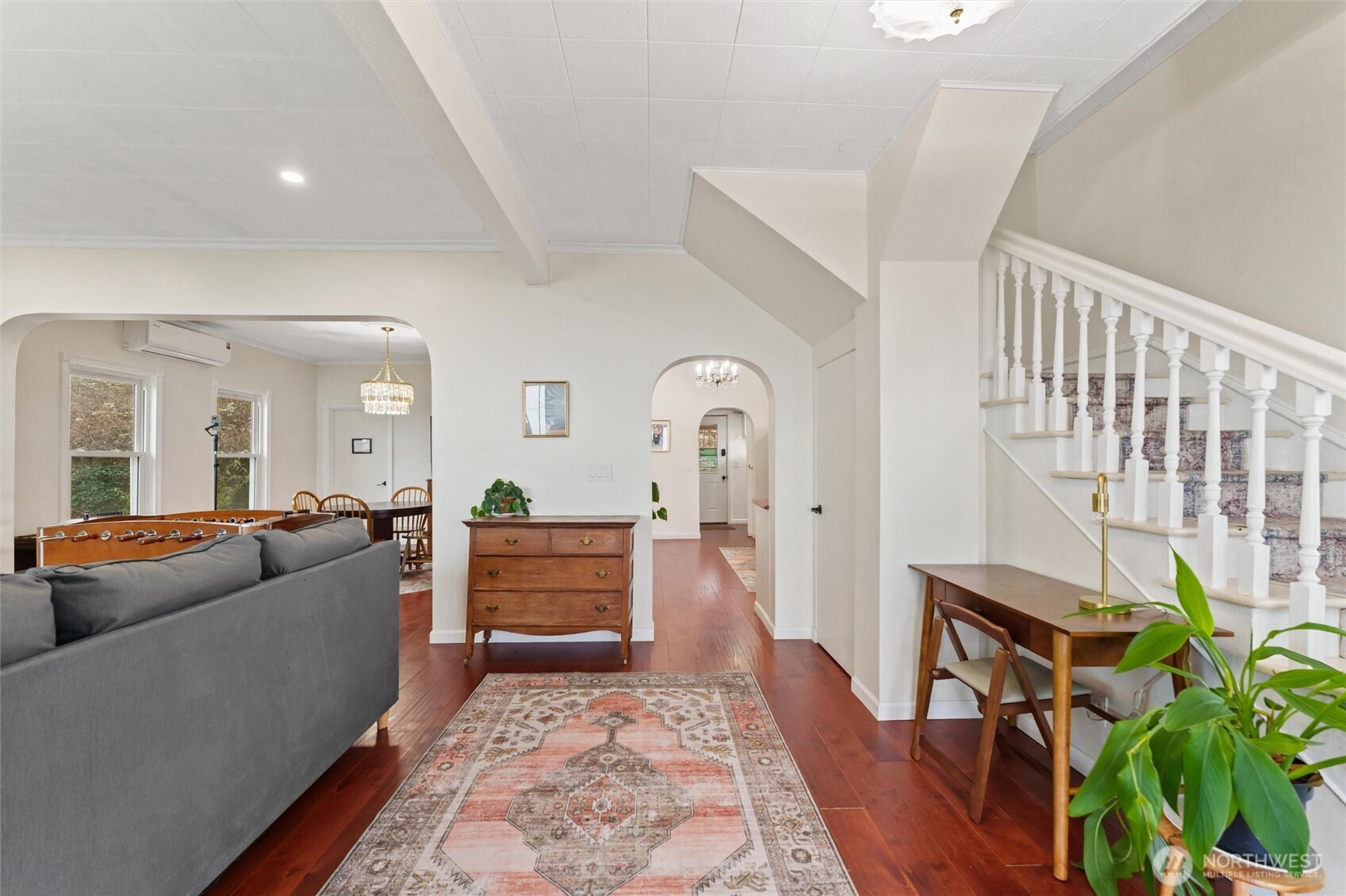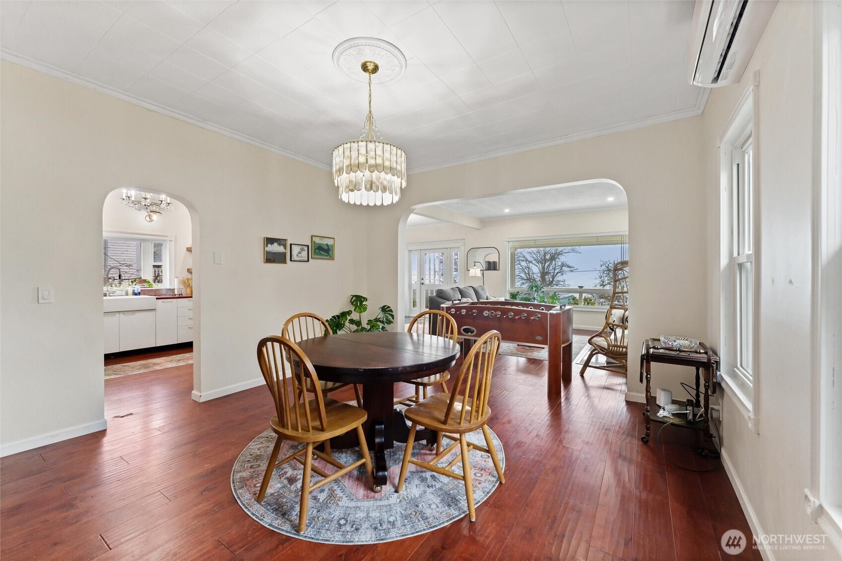 Charming, fully furnished vintage home in the heart of downtown Union with sweeping views of Hood Canal and the Olympic Mountains. Just across the street from public beach access, marina and boat launch, boutique shops, and local restaurants, this is a rare opportunity to enjoy small-town waterfront living with modern comfort. The home feels light and airy, featuring a traditional floor plan with generous living and dining spaces, high ceilings, and beautiful old-world details throughout. Three bedrooms and three bathrooms include classic touches like transom windows and vintage-inspired finishes that honor the home’s character. Thoughtful updates provide peace of mind, including all-new electrical wiring, a new roof, fresh interior and exterior paint, and a new ductless mini-split heating system. Outdoors, terraced garden areas, fruit trees, and mature landscaping frame the views and create inviting spaces to relax or garden. A truly special Union property where timeless charm meets thoughtful update, all just steps from the water.