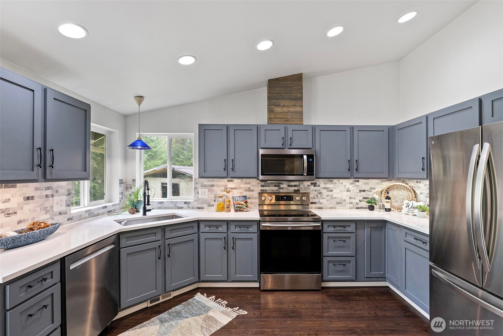 Welcome to your private retreat! This immaculate one-level home sits on 5 beautiful acres of privacy and serenity. Step inside the open great room and kitchen, with plenty of room to spread out and relax, before retreating to the large Primary bedroom and attached bath. The three bedrooms and an office have the space you need for long-term guests or working from home. This home absolutely shines, with gorgeous updates, finishes, and colors throughout. This property is absolutely stunning, with acres of endless possibilities! Whether you’re dreaming of outdoor recreation, enjoying the quiet outdoors, or expanding the already established garden, this property has everything you’ve been looking for. There’s RV parking, with plenty of room for all of your toys, and future plans. If you’ve been looking for mainfloor living on acreage, this home is an absolute must see!