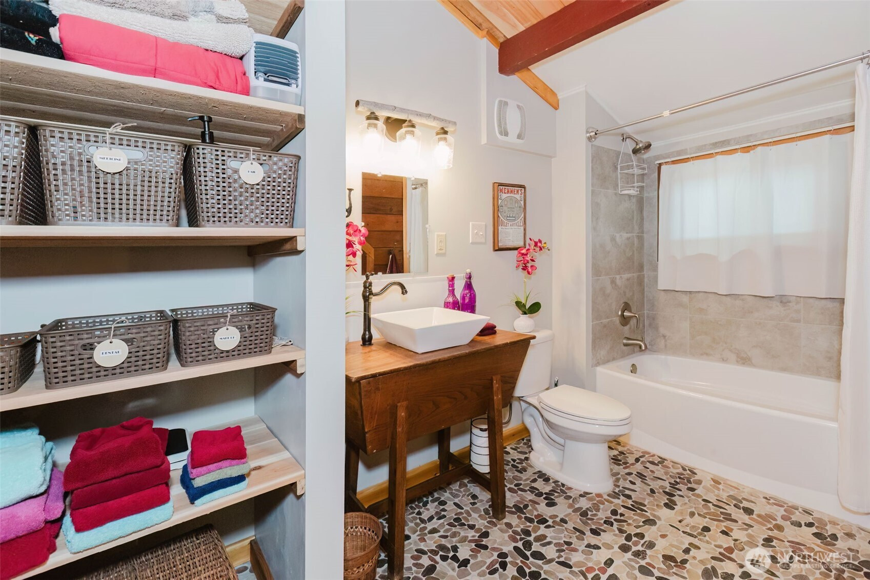 (503) 893-8874Up in the hills off North Shore is an amazing cedar mountain cabin in the woods on 2-3/4acres. With 3 bedrooms & 3 baths, there's plenty of space for everyone! This home was disassembled in Kirkland & lovingly rebuilt in its current location with all the proper approved permitting. You'll find modern conveniences with rustic touches! Soaring cathedral ceiling & beautiful windows that look out over the property & onto the large deck. Possible to use downstairs as a vacation rental with its own kitchenette. A 960sf enormous garage is perfect for vehicle storage or wood shop. In the spring & summer comes the real beauty; fruit trees & flowers throughout the property. Plenty of parking even for an RV. Solitude and peace are calling your name!