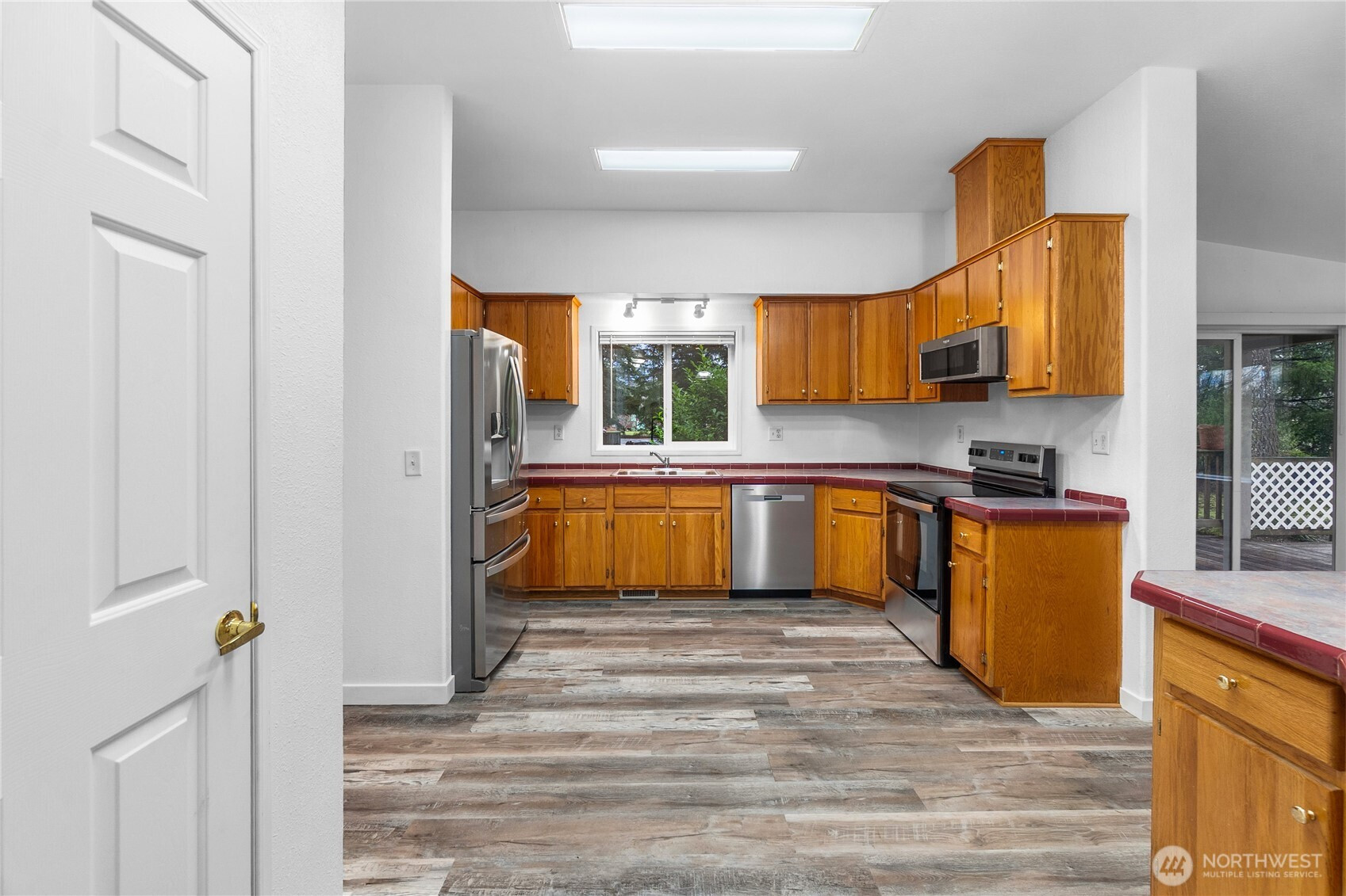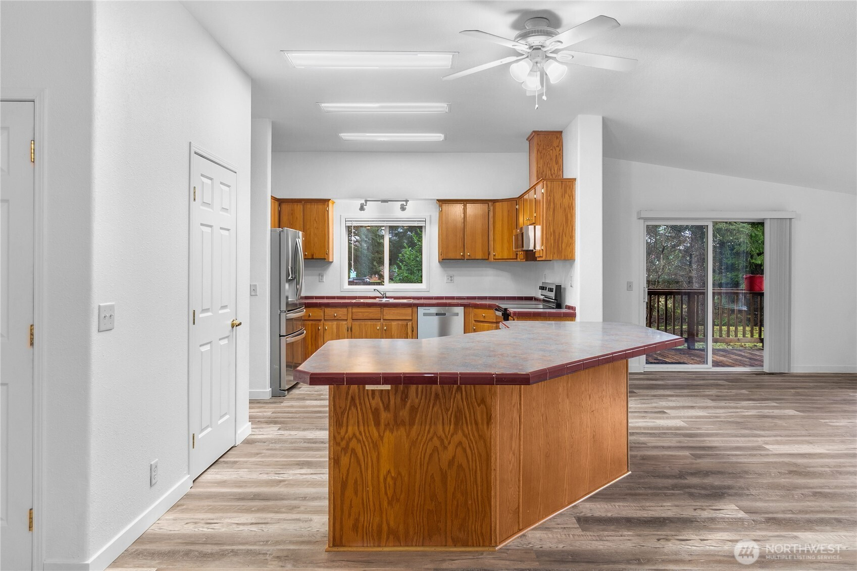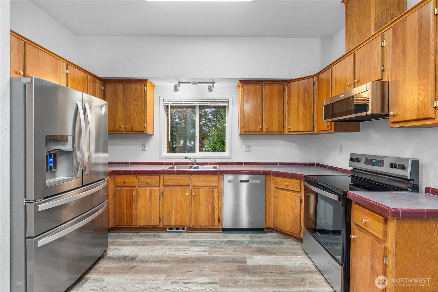 Spacious home for sale in a fantastic location, just off Johns Prairie Rd on a private dead-end drive! This beautiful home features brand-new stainless-steel appliances, all new flooring throughout, and a freshly painted interior that feels bright and move-in ready. Enjoy gatherings in the dining room and cozy evenings by the wood fireplace in the living room. The large kitchen island offers plenty of prep space and storage, perfect for entertaining. Also includes a walk-in pantry. The oversized primary bedroom is a true retreat, featuring French doors leading to the back deck, a walk-in closet, and a 5-piece en-suite bath. The laundry room includes convenient access to the outdoors. Step outside to incredible outdoor living with a wraparound porch, plus an area ready for a hot tub including an awning for rainy days. Property also includes a 3-bay shop with additional workshop space and a surveillance system—ideal for hobbies, storage, or projects. A wonderful combination of comfort, functionality, and location—this one is a must-see!
