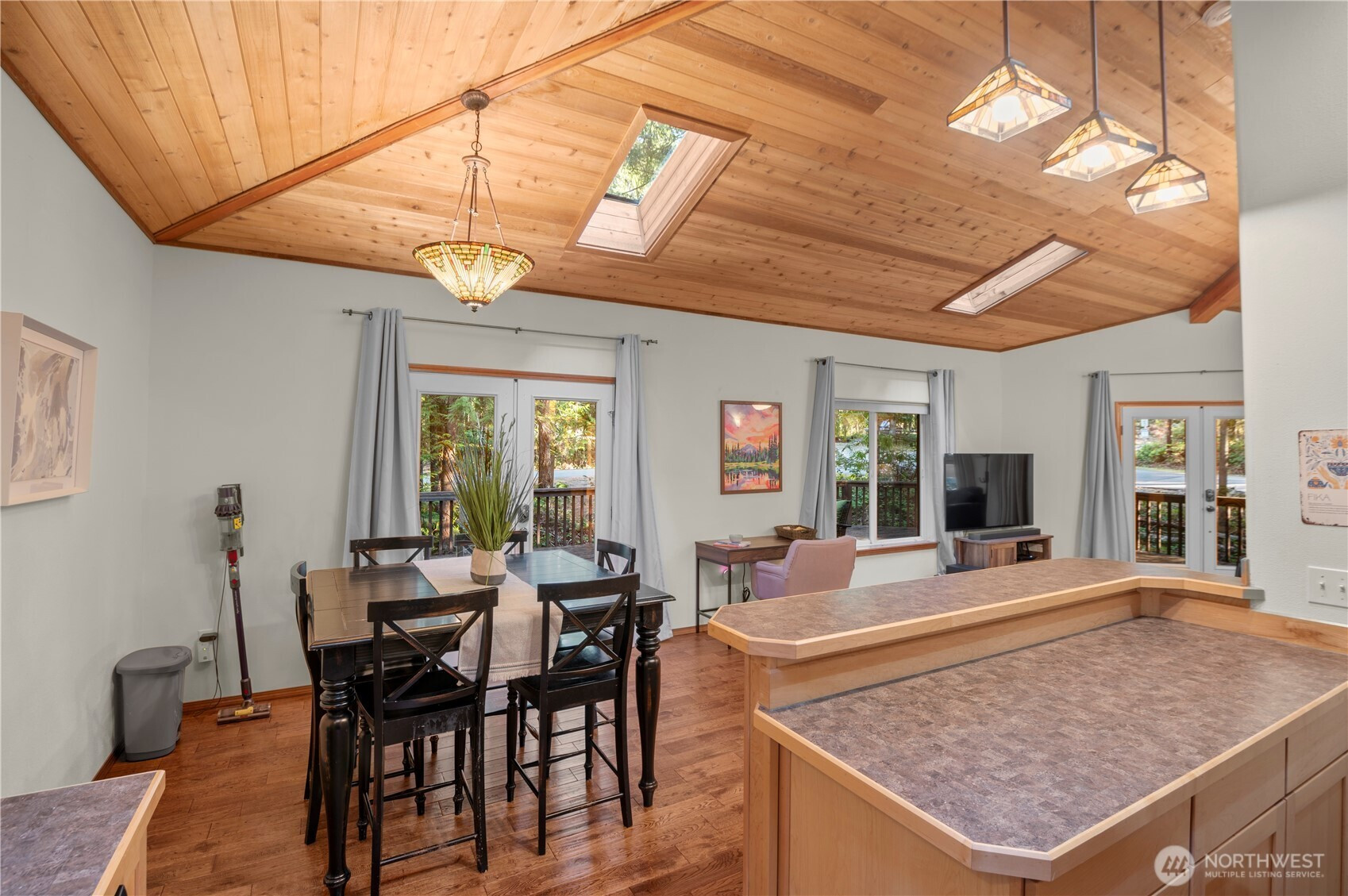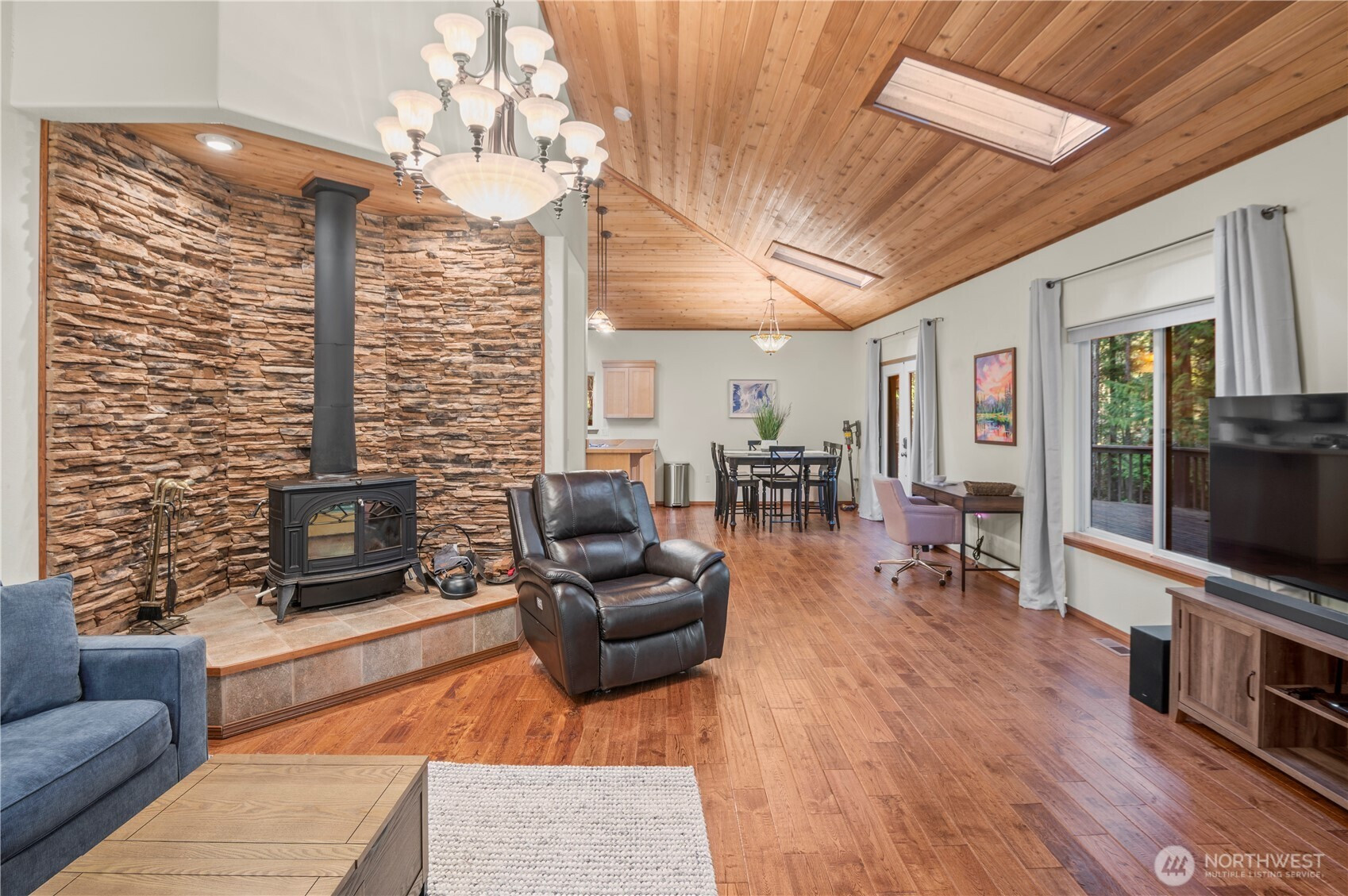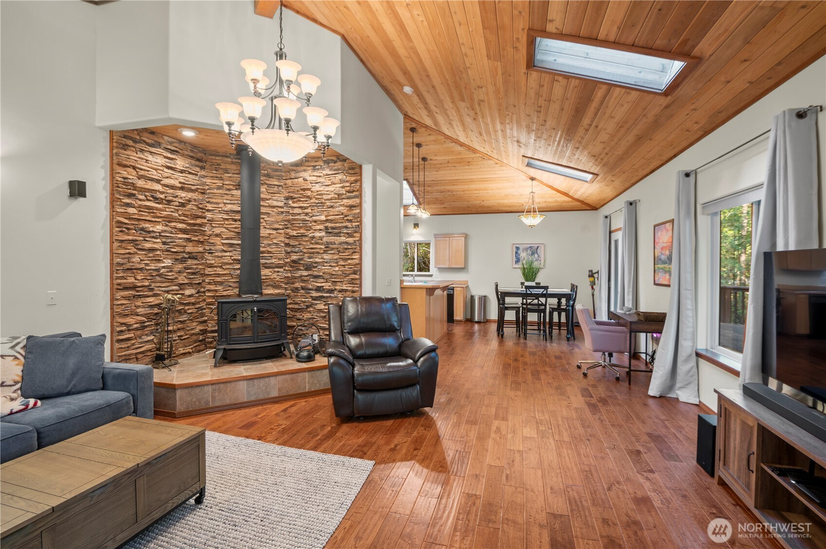 Tucked among the towering evergreens of Lake Cushman, this inviting 2-bedroom retreat welcomes you with warmth, light, and unmistakable Northwest charm. The home’s distinctive roofline rises above the main living space, where a band of transom windows pours natural light across vaulted ceilings and rich wood tones - creating an atmosphere that feels both cozy and uplifting from the moment you step inside. At the heart of the home, the open living area gathers around a charming stone-framed freestanding stove, the perfect place to unwind after a day on the lake or exploring the Olympic National Forest's endless labyrinth of hiking trails. The thoughtful layout flows effortlessly to the expansive deck, where mornings begin with quiet forest air and evenings are spent relaxing beneath the trees. Outside, an oversized detached two-car garage provides generous space for vehicles and lake toys, keeping everything ready for the next spontaneous adventure. Located on a sunny corner lot just a short stroll from the coveted Division 3 park and boat launch, you’ll enjoy easy access to one of Lake Cushman’s most breathtaking settings, where sweeping lake and mountain views frame swimming beaches, picnic areas, playgrounds, and waterfront gatherings. Whether you're searching for a peaceful full-time residence or the perfect weekend escape, this charming Cushman retreat offers a place where lake days, mountain adventures, and quiet forest evenings become part of everyday life.