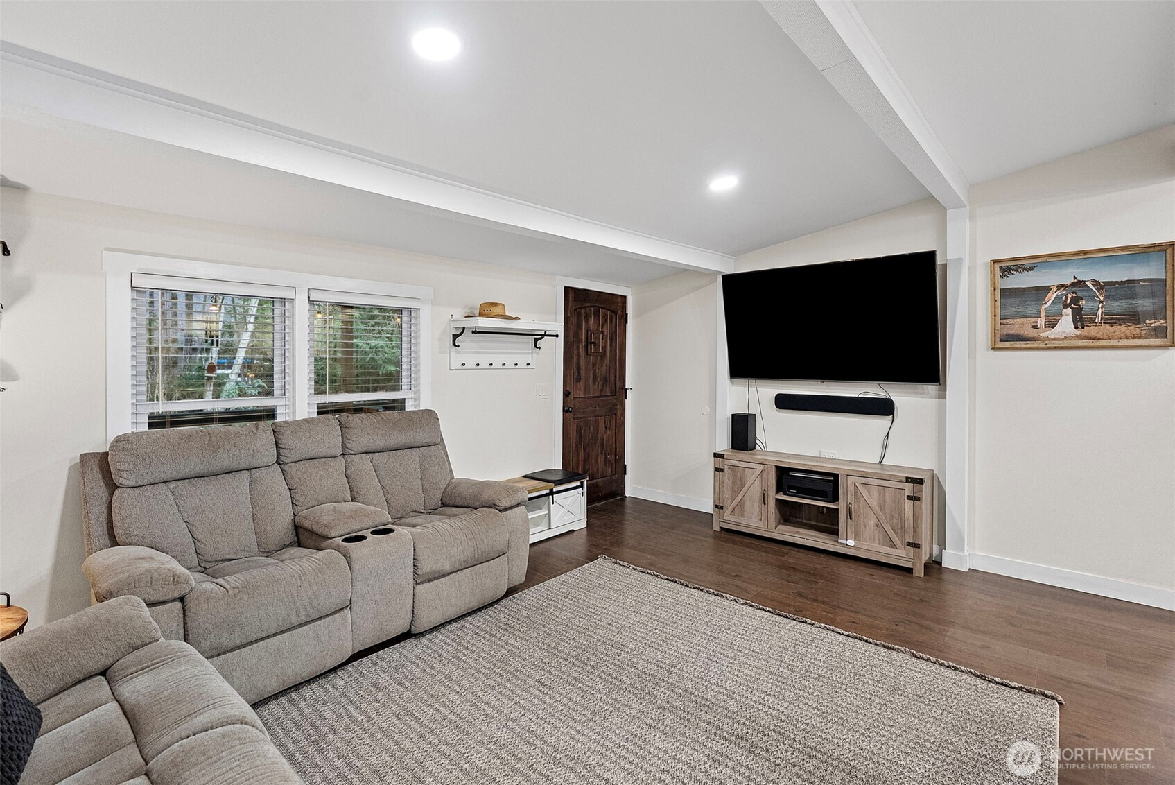 Welcome to Harstine Island, where coastal living meets effortless charm. This inviting single-story home is tucked into a waterfront community with coveted private beach access and welcomes you in with a covered front porch & custom front door that sets the tone from the moment you arrive. Inside, a bright and open living room flows seamlessly into the heart of the home, the kitchen! Thoughtfully updated and designed for gathering, it features butcher block countertops, shaker-style cabinetry, a prep sink, built-in beverage fridge, open shelving, and a massive island with plenty of room to entertain, create, and connect. The primary bedroom offers a peaceful retreat with a walk-in closet and private three-quarter bathroom. The primary bath adds a touch of everyday luxury with a beautifully tiled shower & stylish vanity. An additional bedroom and updated bathroom provide comfortable flexibility, while the dedicated laundry room includes a deep sink and direct access to the side deck and yard for everyday ease. Outside, the fully fenced yard with gated entry offers privacy, space to play, and room to unwind. A covered front deck invites slower mornings and sunset evenings, while the fire pit, nearly new outbuilding, and level, usable yard make outdoor living easy and enjoyable. And with community beach access just moments away, days by the water are simply part of every day life here.
