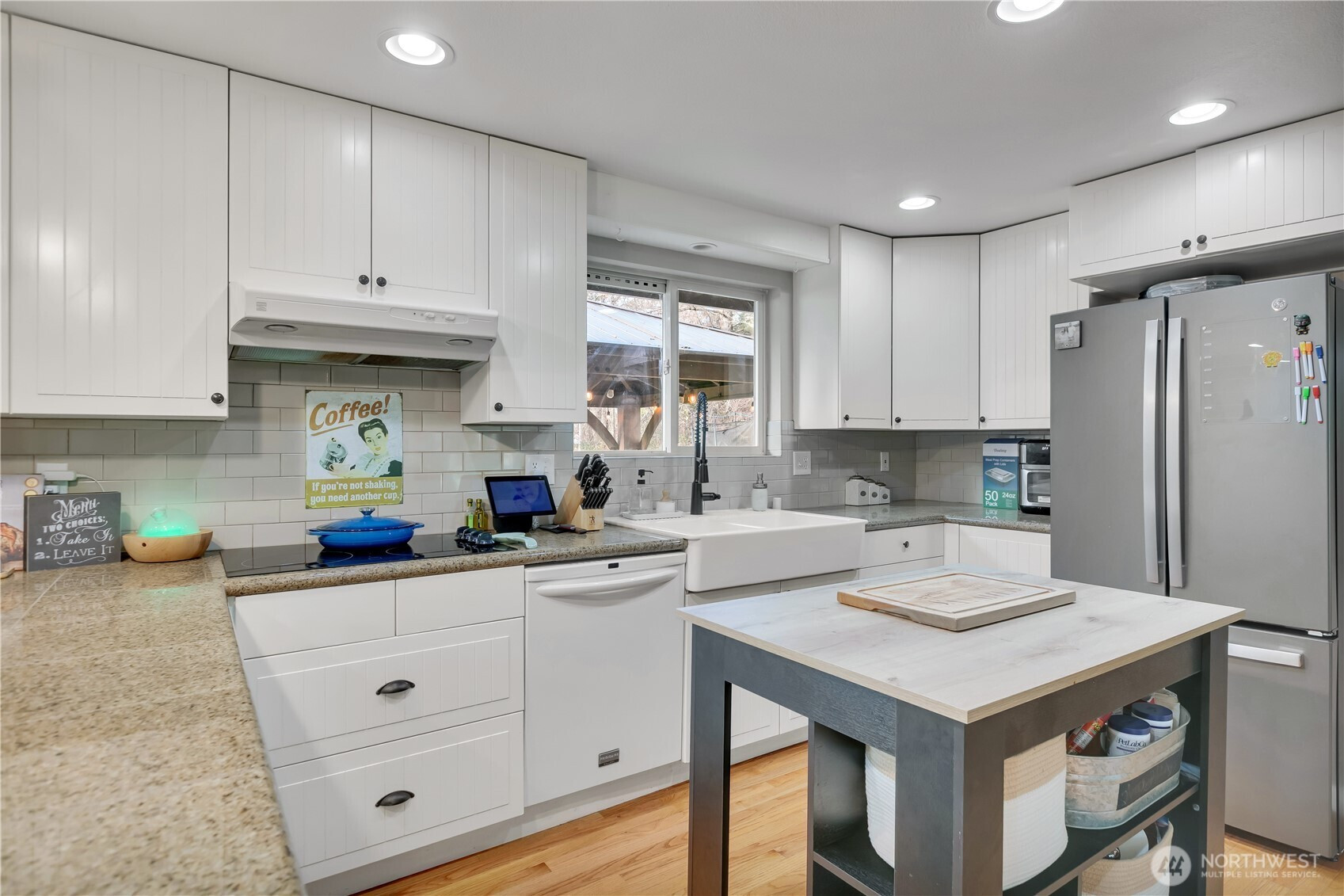 Beautifully remodeled and well maintained single story home on 1.31 level acres. This 3 bedroom, 2 bath home offers 1,398 sq ft with oak hardwood floors and a bright open floor plan. Spacious kitchen features granite countertops with ample cabinet and counter space and opens to the family room. Primary bedroom includes a private bath. Additional features include a two car attached garage, shop, RV parking, ample off street parking, and a large partially fenced yard. Move in ready with room for recreation and gatherings.