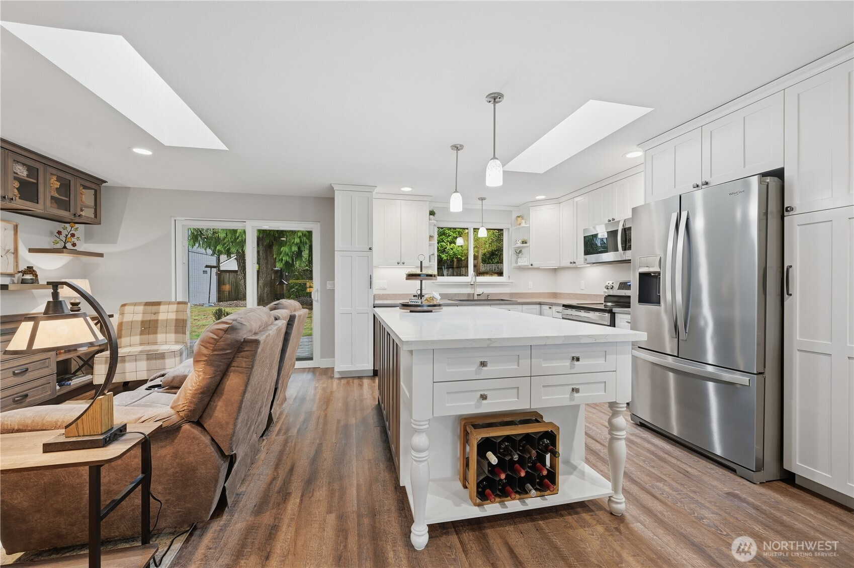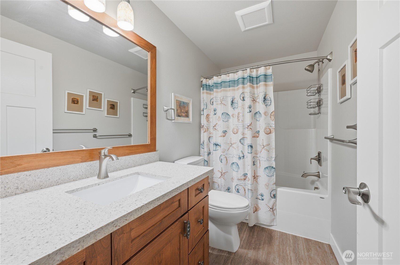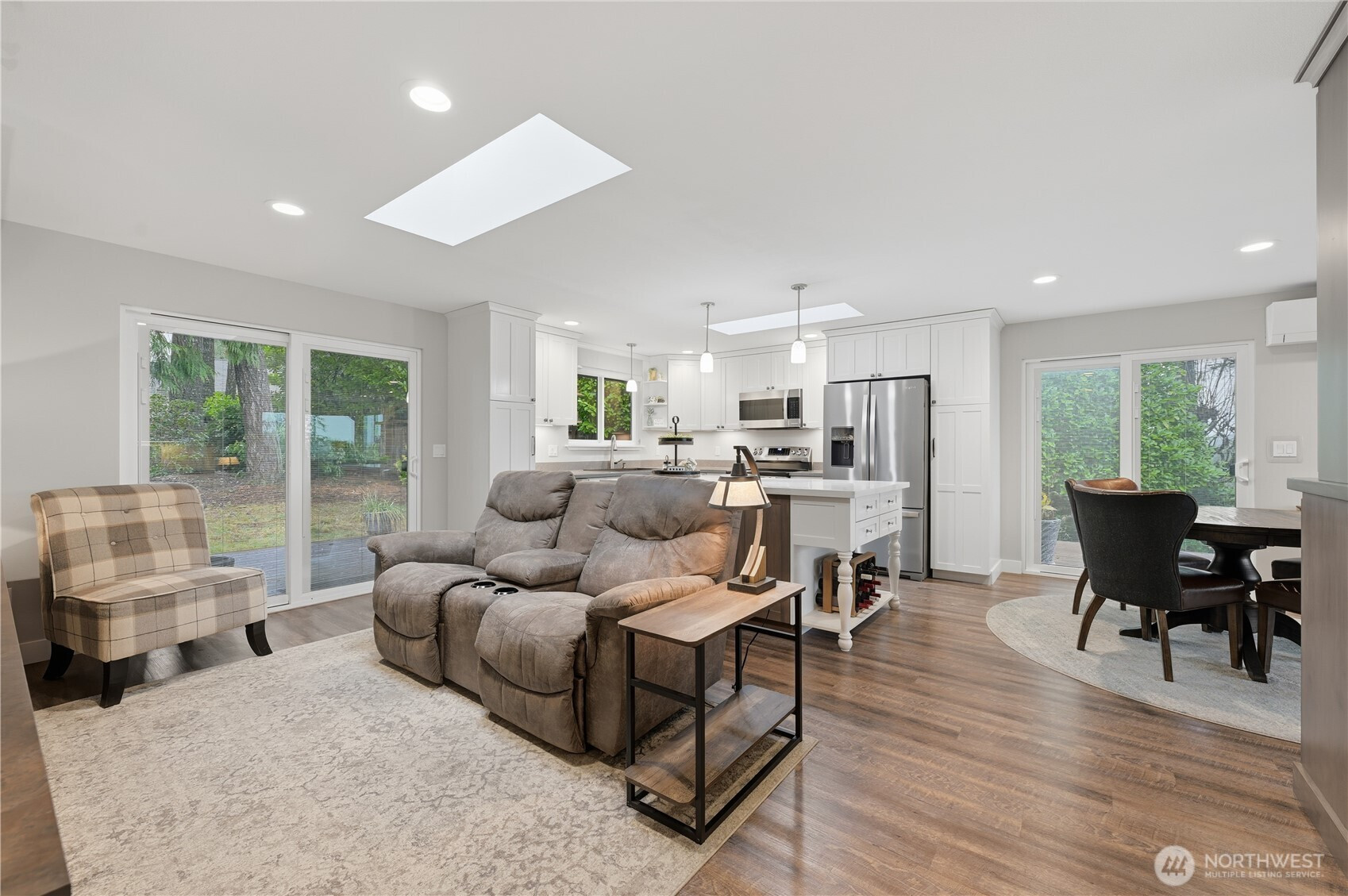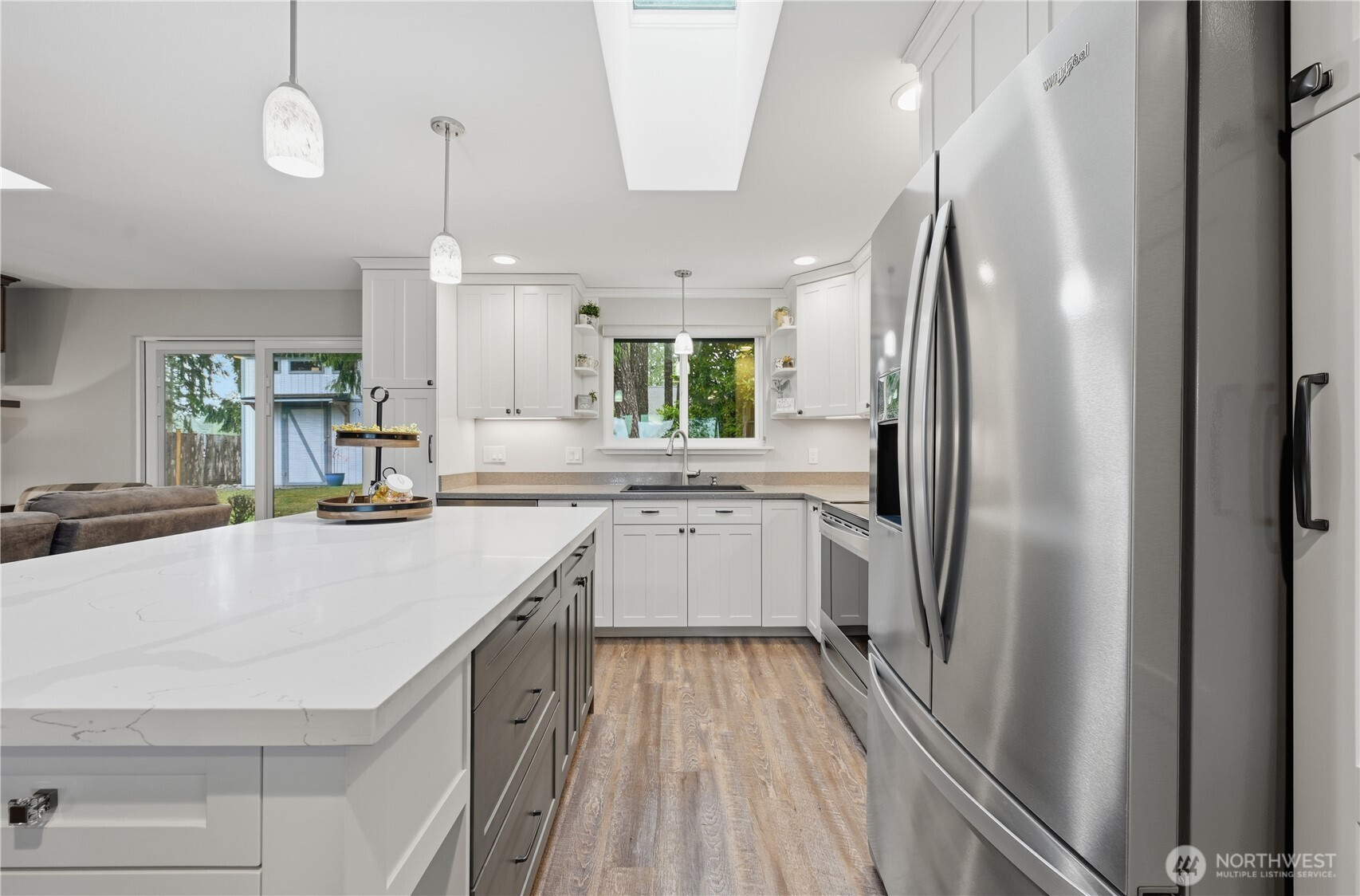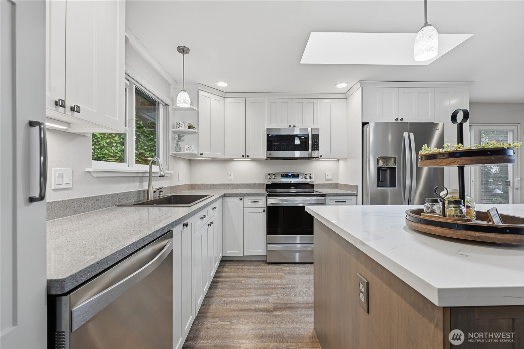 Enjoy stunning views of Mt. Rainier and peekaboo views of the Sound from this beautifully maintained Lakeland Village home. The Trex deck is perfect for taking in the scenery or entertaining year-round. Fully remodeled in 2015, the interior features custom built-in cabinets, soft closing drawers, quartz countertops in the kitchen and bathrooms, and thoughtfully designed living spaces filled with natural light. A new roof installed in May 2024 adds peace of mind. This inviting home blends comfort, quality, and exceptional Pacific Northwest charm.