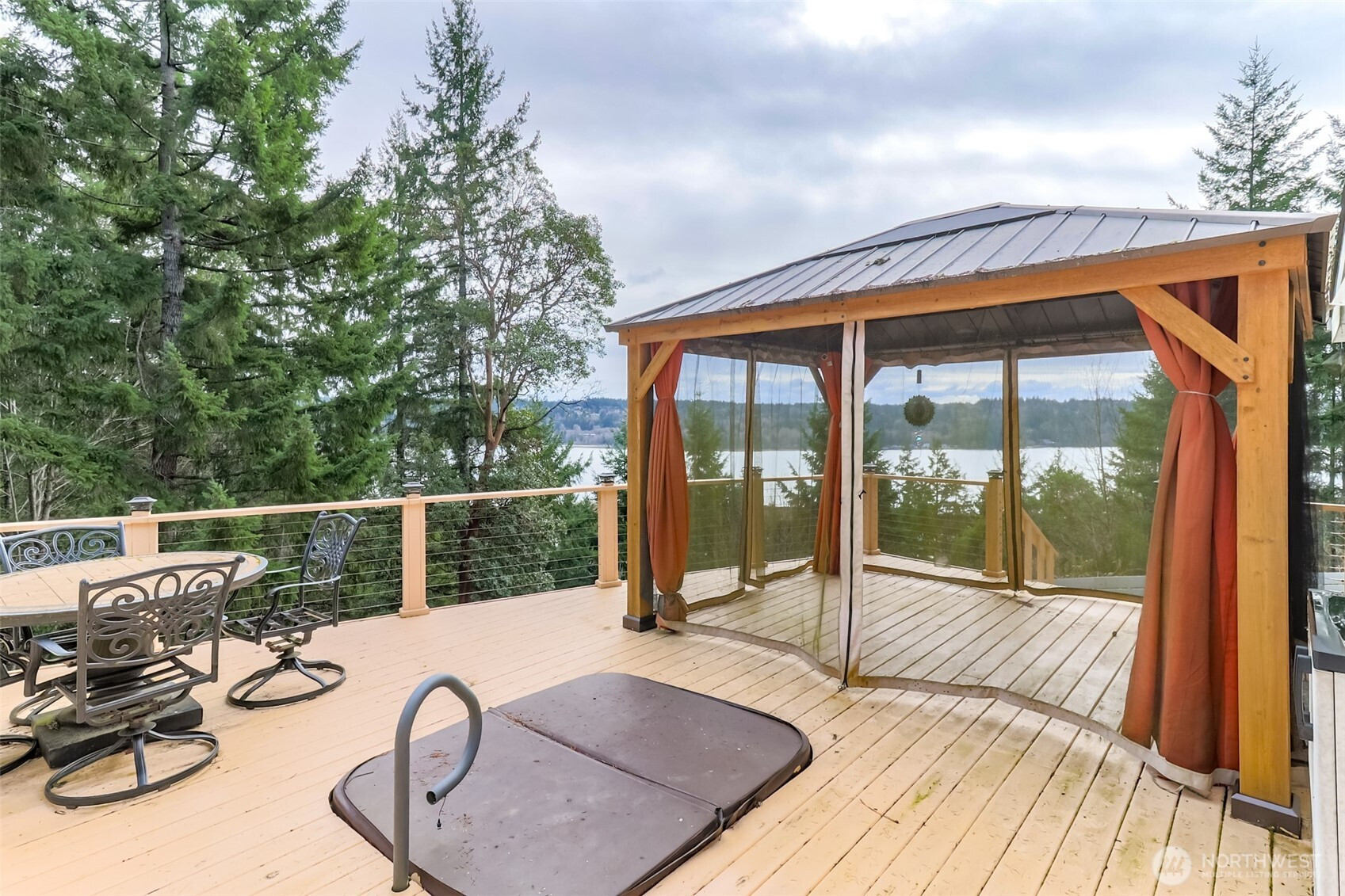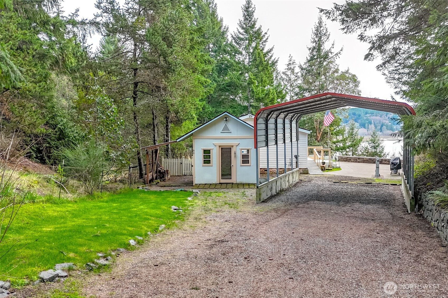 Enjoy breathtaking canal views from this beautifully maintained 3-bedroom, 2-bath home designed for both relaxation and entertaining. Vaulted ceilings and skylights flood the interior with natural light, creating an open and airy feel throughout the main living space.The spacious porch features a covered gazebo and hot tub — the perfect place to unwind while taking in the peaceful setting. Incredible patio area ideal for gatherings, BBQs, and evening sunsets. Need space for toys or guests? The RV-style carport includes partial hookups, offering flexibility and convenience for visitors or travel enthusiasts. Located in a desirable community close to the Hood Canal and Tahuya State Forest!