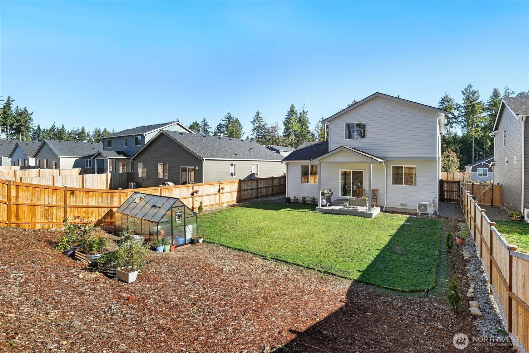Beautiful 2024 home on one of the neighborhood’s largest lots! Better than new, this light-filled home offers a fully fenced backyard backing to a serene tree line for added privacy. An oversized covered front porch creates a welcoming first impression, while the community offers endless outdoor enjoyment with Huff N Puff trails, disc golf, and pickleball courts. Inside, the main level features an open-concept layout with stainless steel appliances, quartz countertops, and an eat-up peninsula—perfect for entertaining. The living room flows seamlessly to the private backyard through a sliding glass door. Upstairs, retreat to the spacious primary suite with ensuite bath and walk-in closet, plus two additional bedrooms, a stylish loft for flexible living, and a dedicated laundry room. Set within a charming, amenity-rich neighborhood, this home perfectly blends modern design, comfort, and convenience.