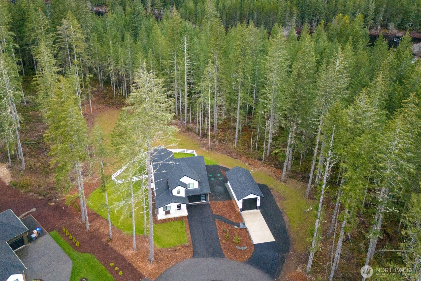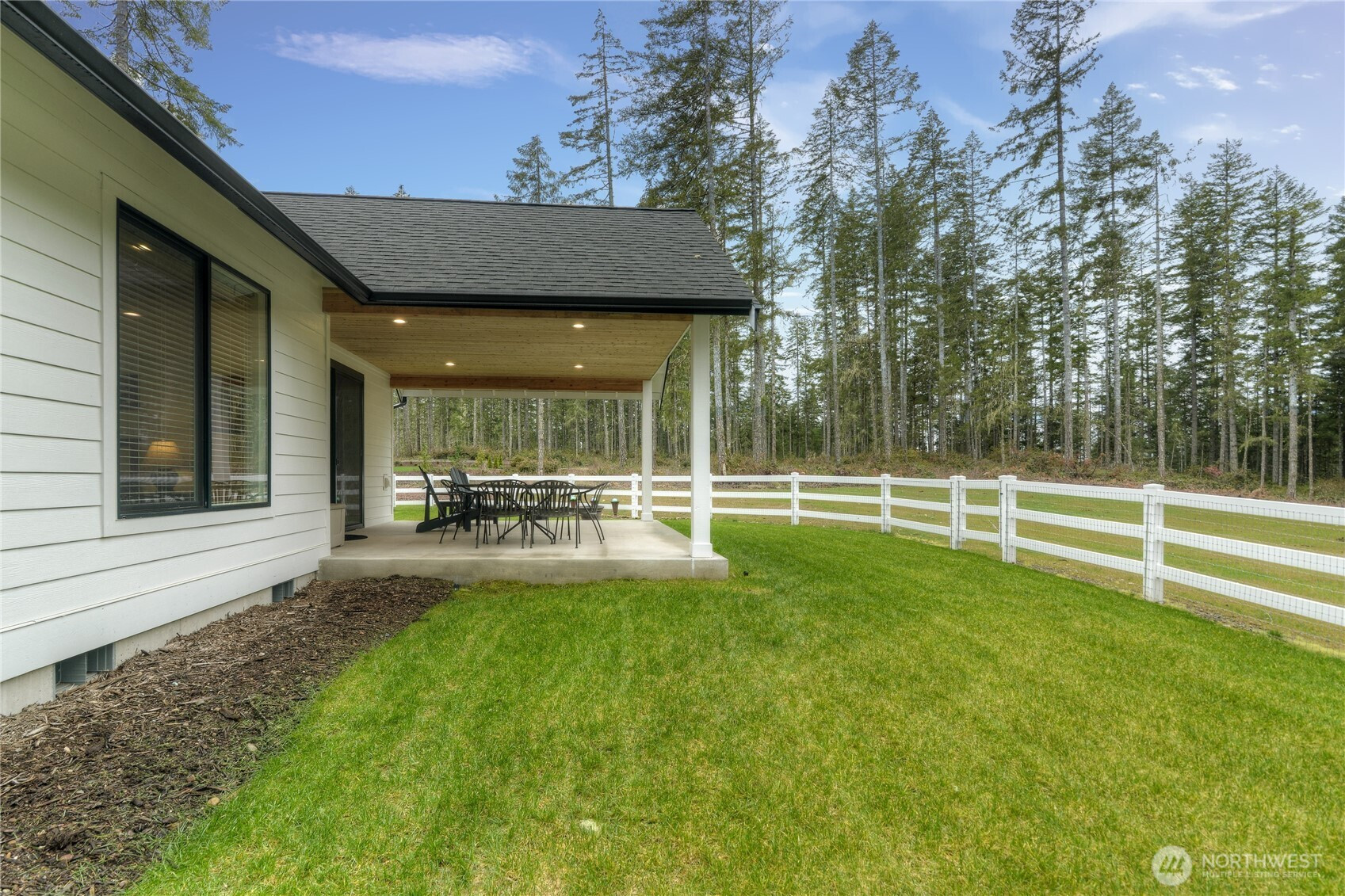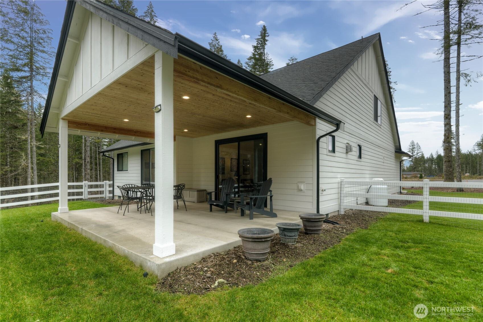 This gated community gem features rare main floor primary suite, 16' x 32' insulated RV/boat garage, covered patio, chef's kitchen with large leathered-granite island, upgraded laundry room and closets, dog-friendly fenced yard situated on two acres at end of private road cul de sac, with a community lakefront parcel on Clear Lake. Equipped with generator transfer panel, irrigated yard for easy care, and just minutes from shopping, medical services, restaurants and downtown Shelton. A must-see.