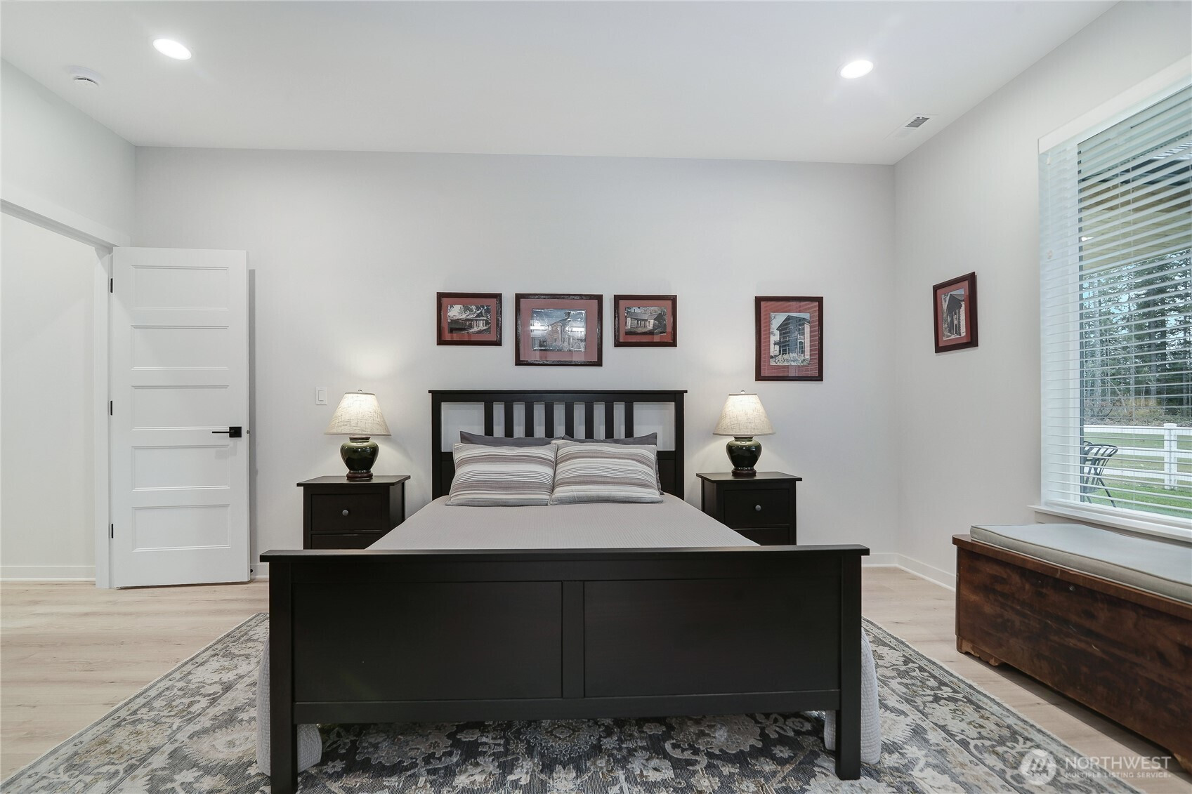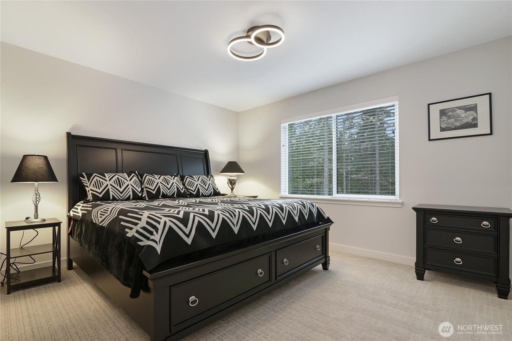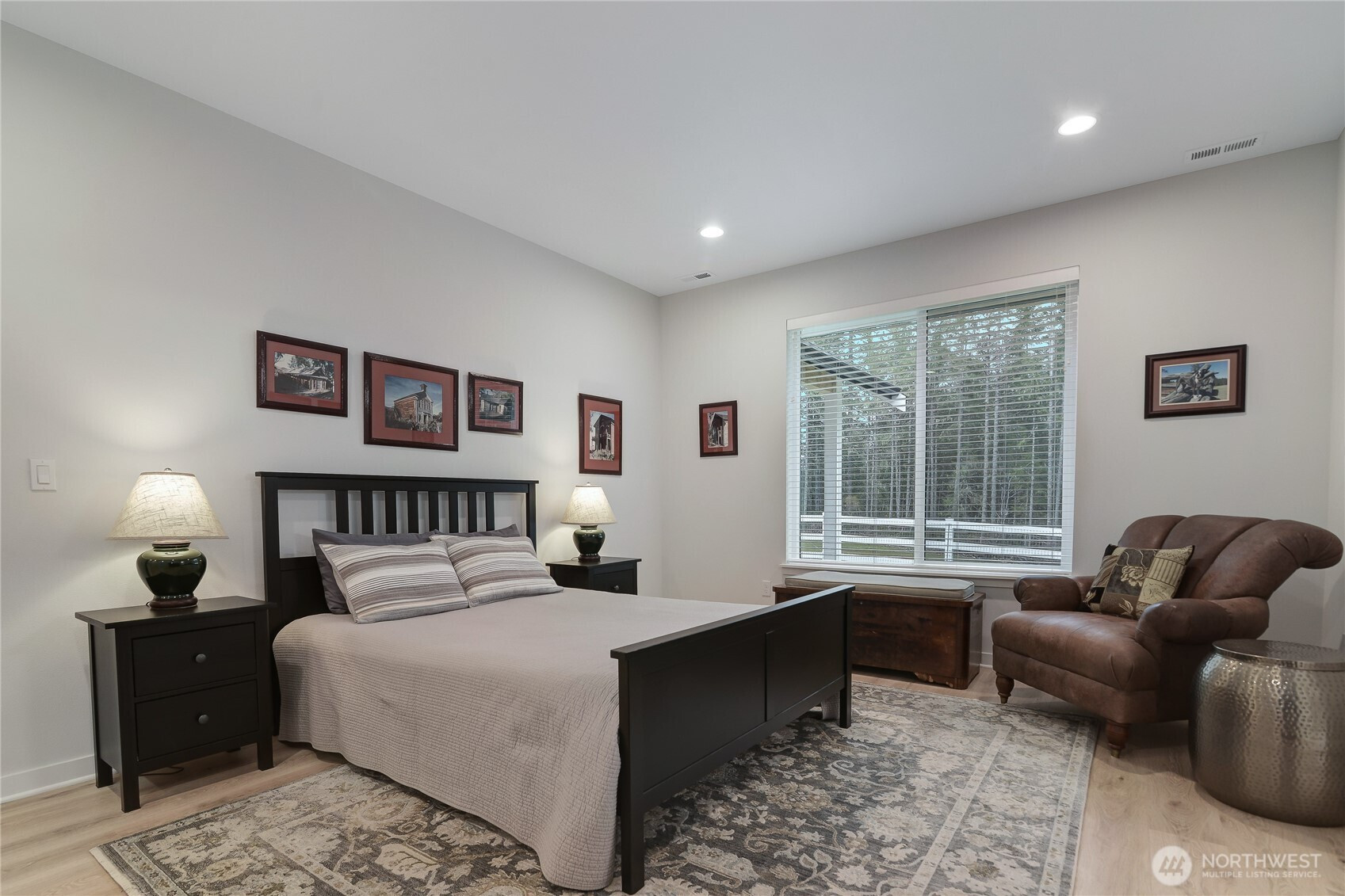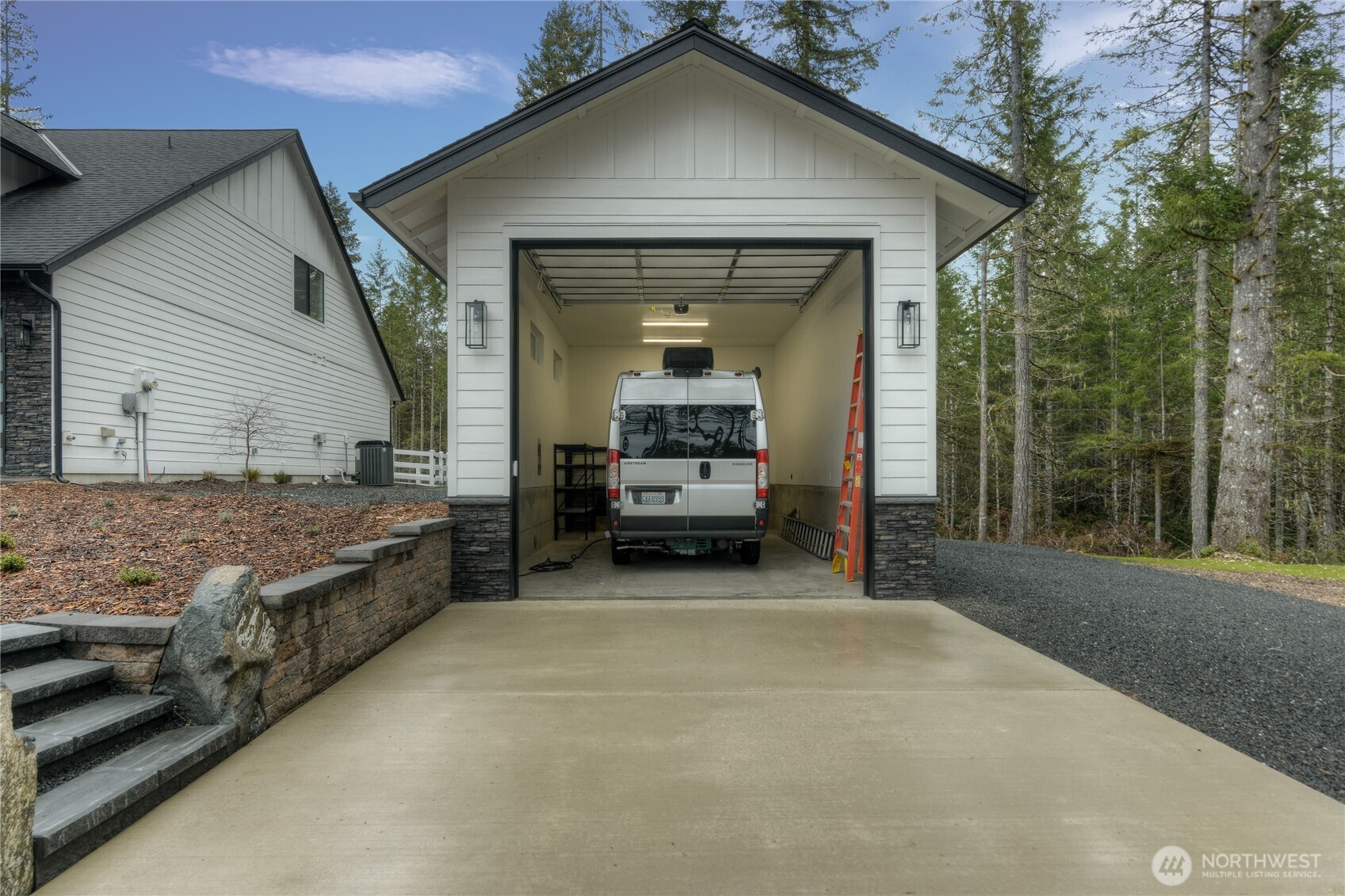 This gated community gem features rare main floor primary suite, 16' x 32' insulated RV/boat garage, covered patio, chef's kitchen with large leathered-granite island, upgraded laundry room and closets, dog-friendly fenced yard situated on two acres at end of private road cul de sac, with a community lakefront parcel on Clear Lake. Equipped with generator transfer panel, irrigated yard for easy care, and just minutes from shopping, medical services, restaurants and downtown Shelton. A must-see.