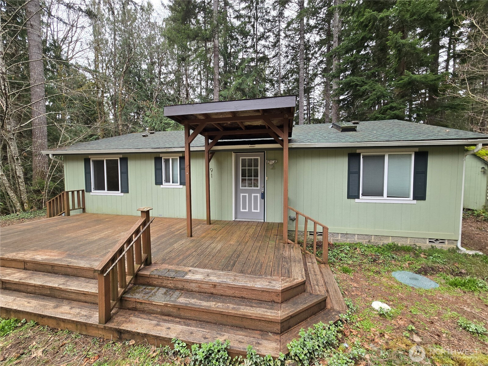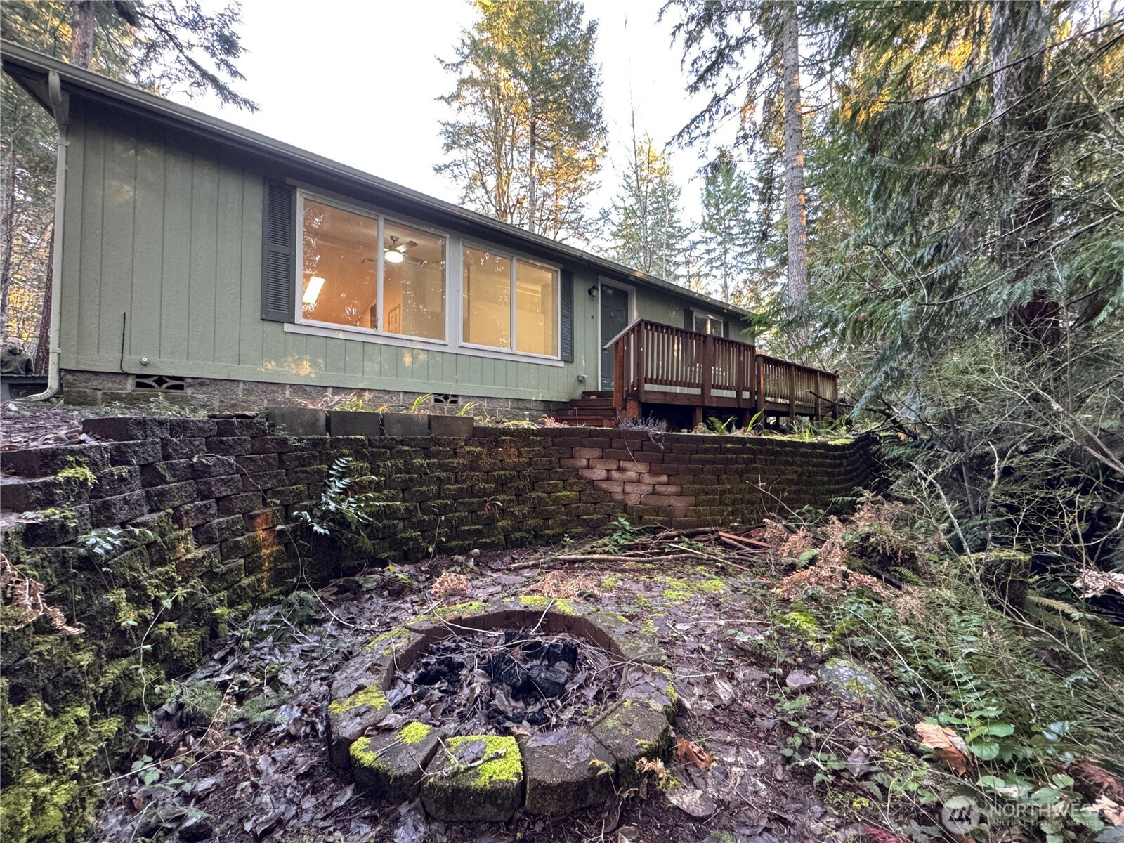 Retreat to this beautiful 2-bed, 1.5 bath home nestled in the trees with territorial views and light from overhead skylights. Relax with .4 acres of wooded privacy and an outdoor firepit, perfect for summer vacations. Inside, you'll find an open-concept floorplan with a massive living room. The home has recently been renovated with new LVP flooring. The primary bedroom includes a half bath and walk-in closet. Enjoy the extra-spacious kitchen with stainless steel appliances, pantry, and plenty of storage throughout. Enjoy two decks—front and back—with a wheelchair-accessible ramp. Located in the Lake Cushman community with private parks, boat launches, golf course, and sports courts. Minutes from Olympic National Park and the charming town of Hoodsport for shopping and dining!