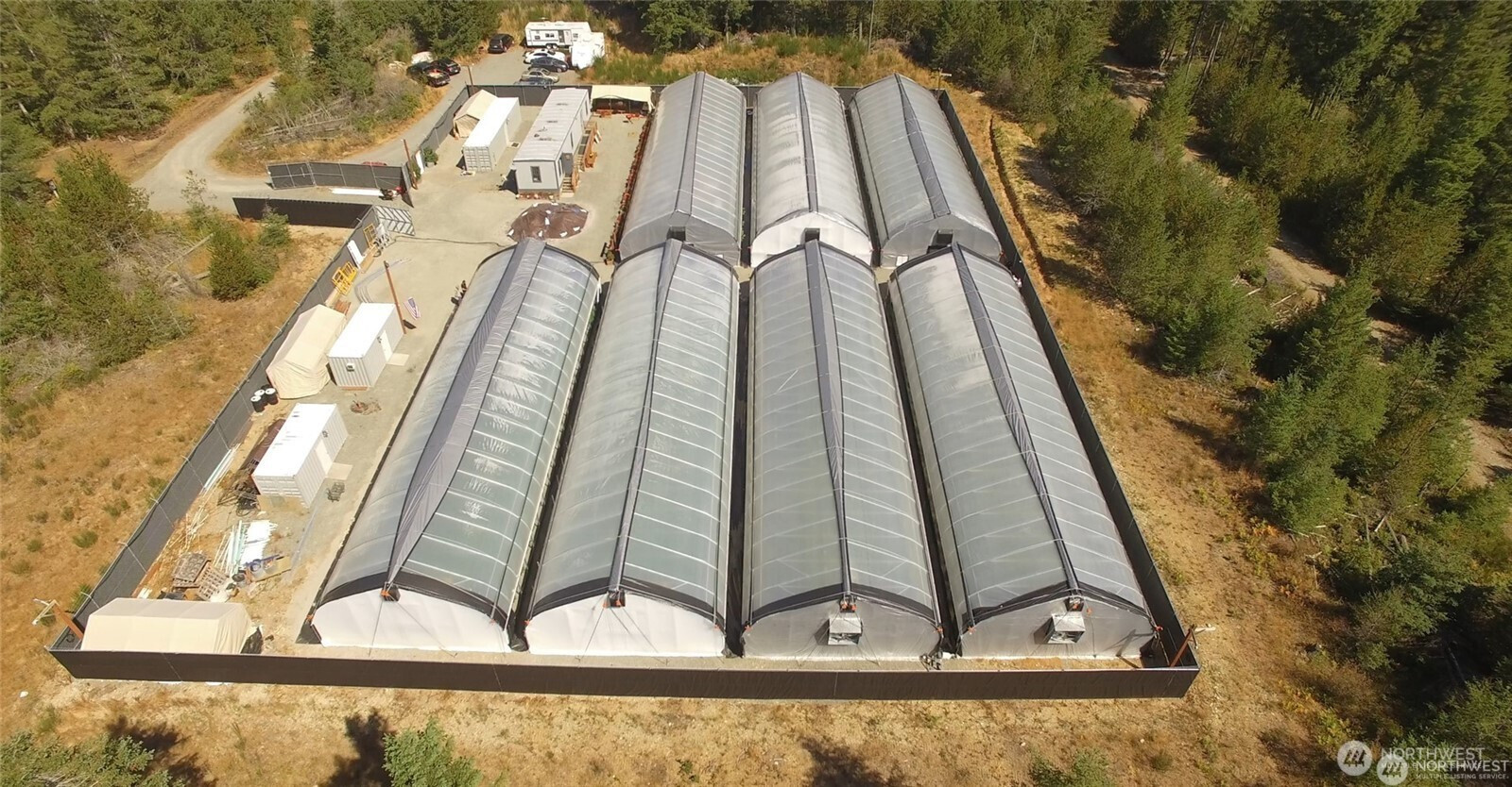 Fully licensed tier 3 producer processor facility w/8ft fence w/razor wire. 42 cameras w/IP enabled DVR system. 400 amps pwr. 400 sqft foam insulated climate controlled drying and curing building. 700 sqft Office Building w/ADA restroom. 400 sqft Irrigation & Storage Buildings. 7 insulated greenhouses totaling 3000 sqft. Auto timer controlled light deprivation, auto drip irrigation w/inline fert, drip lines & 5,000 drip emitters (1 gph), plastic ground cover for 360 degree protection, auto ventilation, well water w/new well pump 20 gpm, gravity fed septic sys, every bldg wired for elect, secluded entrance, parking lot, camper trailer, wet & dry auto trimming machine, drying racks, dehumidifiers, fans, air cond, heaters, extraction lab equip