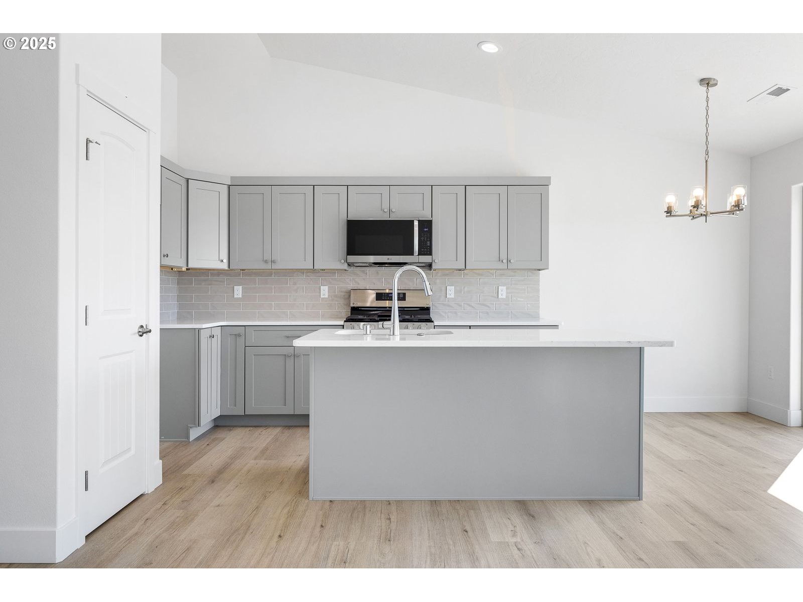 Dishwasher, Disposal, FreeStandingGasRange, Island, Microwave, Pantry, PlumbedForIceMaker, Quartz, SolidSurf
