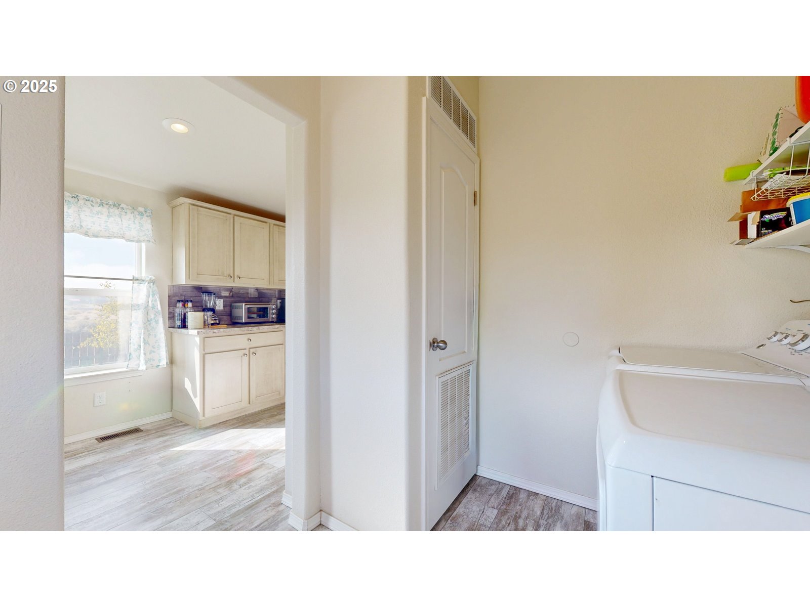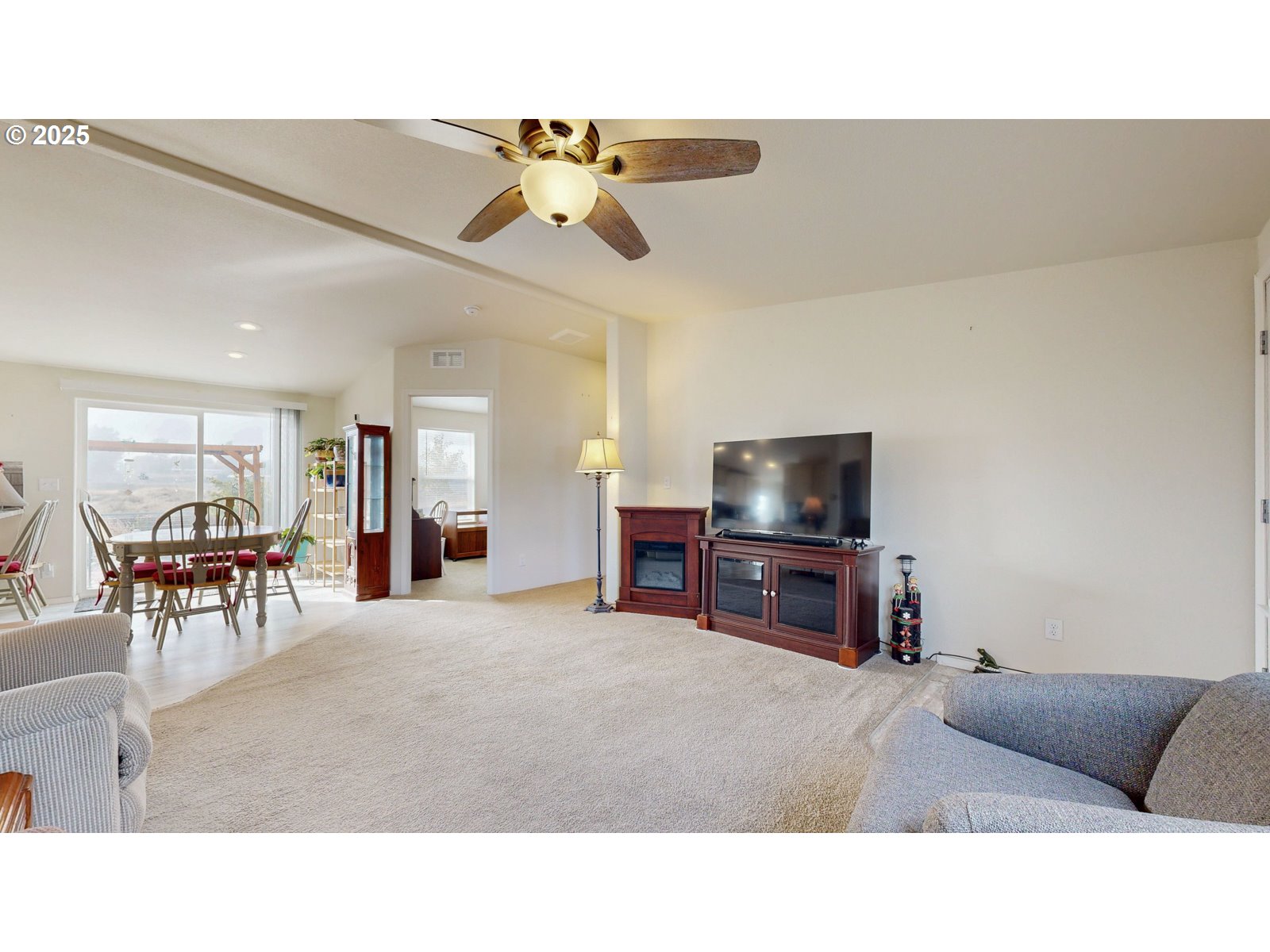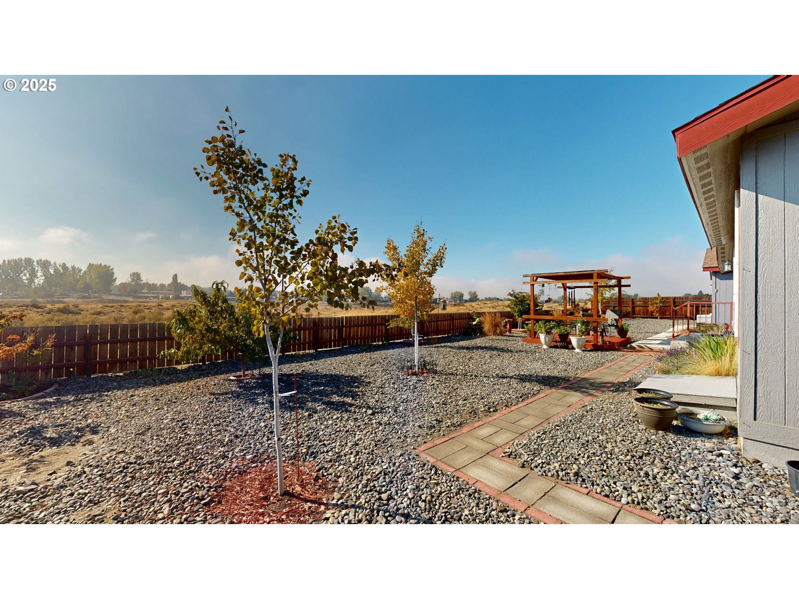 Welcome to peaceful country living in Irrigon! This super clean, well-maintained 3 BR 2 BA home is tucked away in a quiet neighborhood that offers all the small-town charm without all the yard work. The lot is beautifully landscaped with rock gardens—so you can trade your mower for a lounge chair and enjoy the scenery instead. Step inside and you’ll find a light, bright, and airy open-concept layout with vaulted ceilings and an easy flow between spaces. The living area is spacious and welcoming—perfect for cozy nights in or casual get-togethers. The kitchen is a show-stopper for anyone who loves to cook (or just loves extra counter space): tons of cabinets, stainless steel appliances, a dining bar for quick bites, and a cheerful nook with a slider that opens to the backyard. Bonus: all appliances stay—including the washer and dryer! The primary suite offers the ideal retreat with its walk-in closet and private bath featuring a large shower. Both secondary bedrooms also have walk-in closets, so there’s no shortage of storage here. Out back, unwind beneath the pergola-covered deck while enjoying views of the peaceful fields that stretch out behind the property. It’s the perfect spot for morning coffee, evening chats, or a good book on a lazy weekend afternoon. A detached two-car garage provides plenty of space for parking, hobbies, or extra storage. With its low-maintenance yard, clean modern comfort, and country-quiet setting, this home offers the best of both worlds—relaxation and convenience. Come see why life feels just a little easier here!