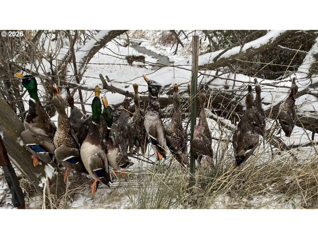 Discover a truly unique and productive 55.31-acre farm offering exceptional duck hunting just a short distance from the Columbia River! This property is buildable, dividable, and boasts year-round natural springs and open ponds teeming with waterfowl, all sustained by full water rights and efficient irrigation.Currently serving as pasture, the farm allows cattle to cover costs while you enjoy the abundant wildlife and pristine spring-fed ponds. The natural springs ensure unfrozen water throughout the year, sustaining a thriving habitat below. Conveniently located off Hwy 730, opposite the Irrigon Wildlife Area, the property includes a rented 1344 sq ft mobile home.With R-2 zoning, residential development opportunities abound. Imagine designing your dream home—or multiple homes—amidst this scenic landscape. A homesite perched on the plateau could offer panoramic views of the Columbia River, or you could enjoy easy access to private hunting blinds and tranquil ponds just steps away.The property is fully equipped for immediate use, featuring perimeter and cross fencing, gated entry, established roads, and accessible power. This is your chance to embrace a spectacular recreational lifestyle where living, working, and playing seamlessly converge.