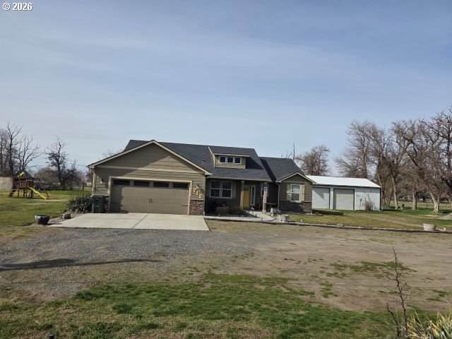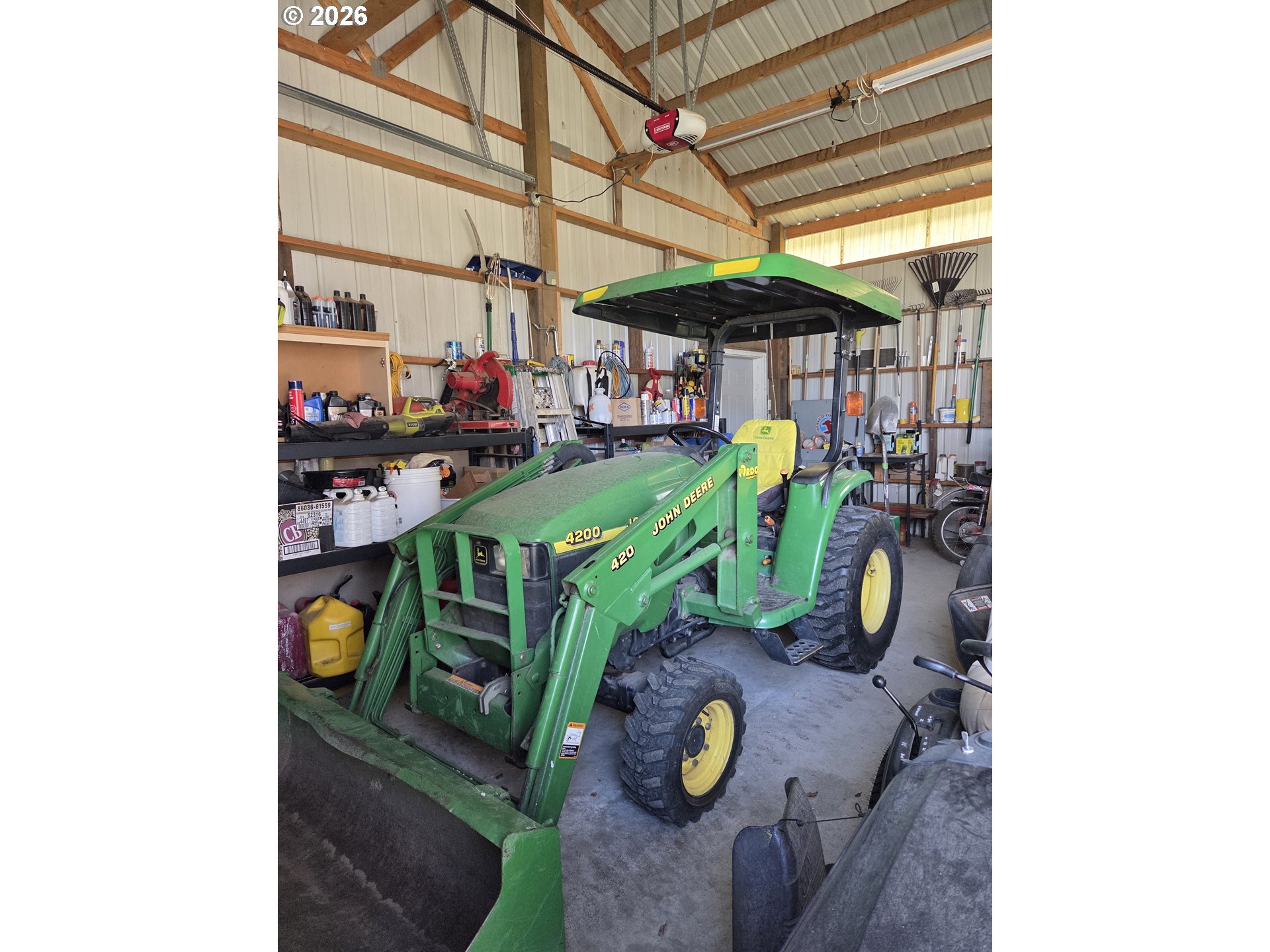 2 acres + irrigation + shop + tractor included! Beautiful ranch-style home with pressurized irrigation rights, fenced pasture, and a shop—plus a John Deere 4200 tractor with attachments included at the asking price, making this property ready for country living from day one.Inside you’ll find a spacious open floor plan with high ceilings, engineered oak flooring, and abundant windows bringing in natural light. The kitchen features stainless steel appliances and flows seamlessly into the living and dining areas, creating a warm and inviting space for entertaining or everyday living.The primary suite offers a walk-in shower and built-in vanity, creating a comfortable private retreat. Two additional bedrooms share a convenient Jack-and-Jill bathroom, providing both privacy and functionality.Step outside to a covered back patio overlooking the peaceful acreage and fenced pasture. A large shop with a loft and hoist for additional storage, plus a spacious 12x60 room offering endless possibilities.Additional features include double insulated walls for energy efficiency, quality finishes throughout, and room to enjoy the outdoors.Opportunities like this don’t come along often—well-equipped acreage with irrigation, shop space, and included equipment. A must see!