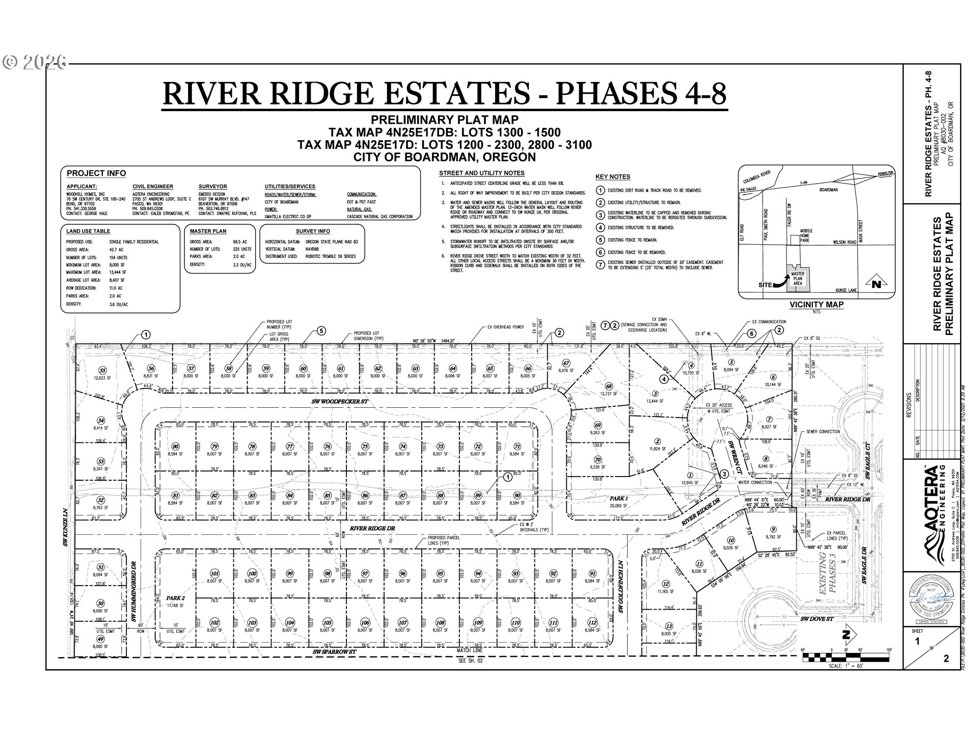 Prime development opportunity in the growing community of Boardman, Oregon. This 29.53-acre property spans 12 parcels and includes 82 paper lots, zoned R-1 with Preliminary Plat Approval already in place—significantly reducing your timeline to build.The site features flat topography and has utilities available at the property, making it highly development-ready. Ideally located in the area of Amazon’s new “Exascale” data center, this area is poised for continued growth and increased housing demand. Whether you're a builder, developer, or investor seeking your next subdivision project, this property offers scale, location, and strong future upside.
