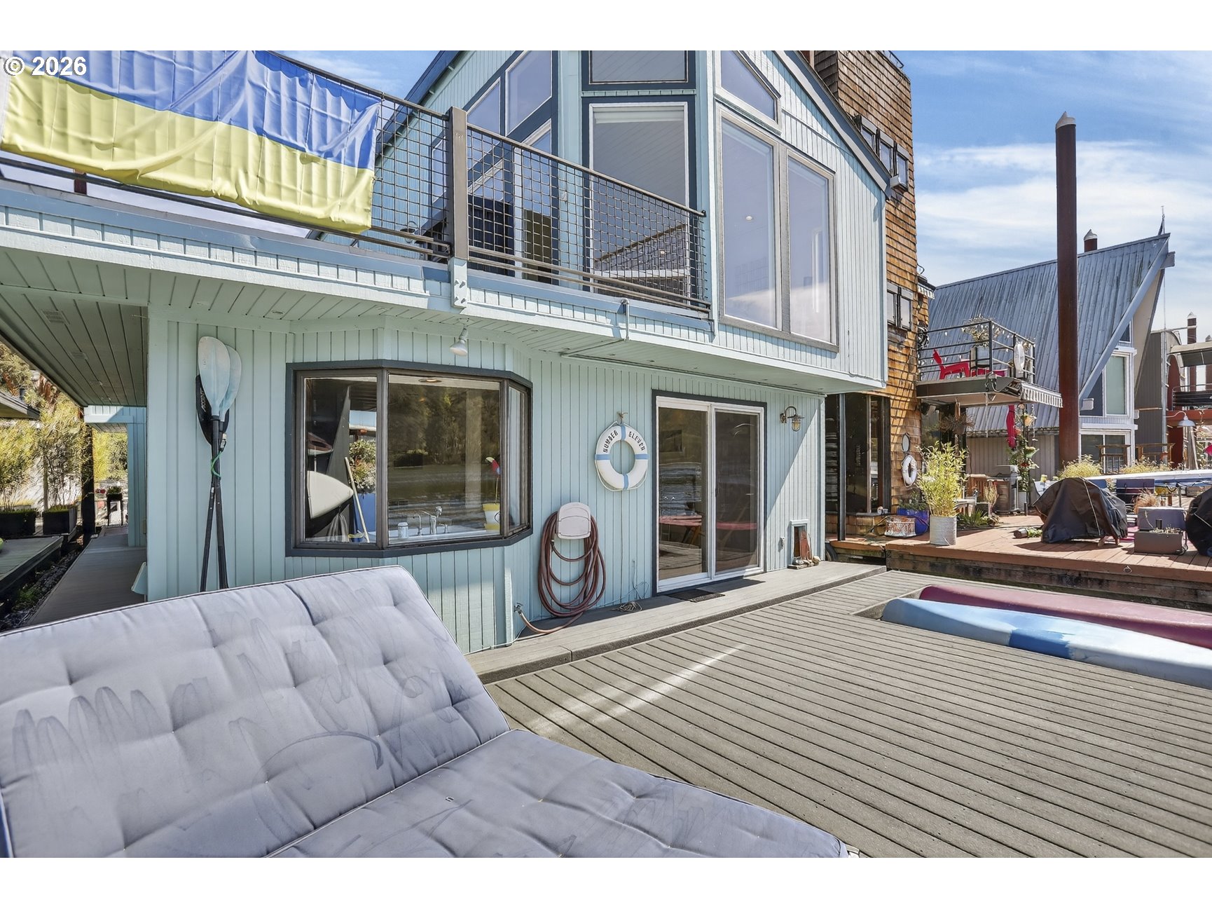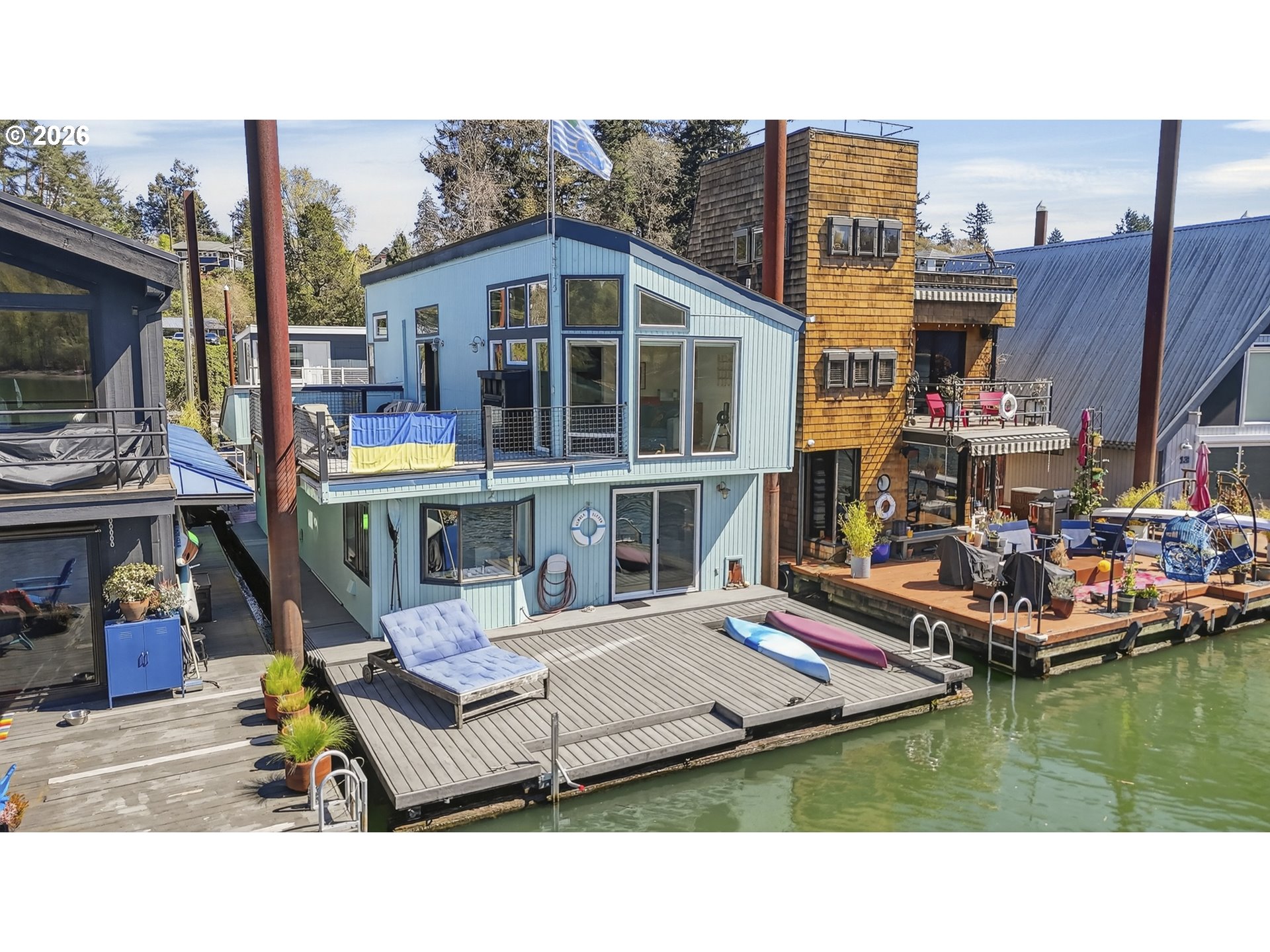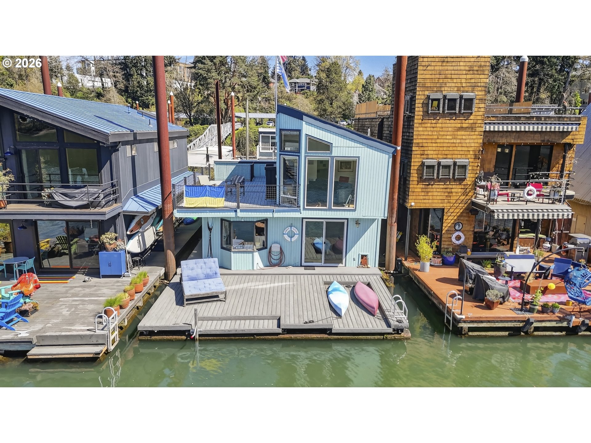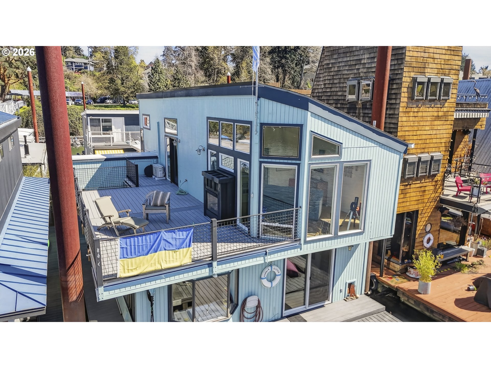 (503) 893-8874Tucked along a picturesque stretch of the Willamette River at the historic Portland Rowing Club, this one-of-a-kind floating property delivers the full river lifestyle—complete with three separate floating structures: a beautifully updated main home, a charming ADU tender, & a separate storage shed. The main home features 2 bedrooms & 2 bathrooms, blending comfort with a relaxed coastal feel. The main level showcases wood flooring and a tongue & groove wood ceiling, creating a warm, inviting space. The sunken kitchen is a standout feature, with a charming bay window that frames river views & a gas cooktop that makes cooking a joy. The living room offers recessed lighting, a gas fireplace, & sliding doors that open to the main deck — perfect for taking in the fresh air & scenic views. Upstairs, vaulted ceilings elevate the space, where a light-filled primary bedroom takes center stage. Large windows showcase sweeping river views, while an indoor/outdoor gas fireplace adds a touch of magic year-round. A wet bar and built ins are tucked into the hallway for easy access! Also on the upper level; 3rd bedroom with a mini split & closet, a full bathroom, & access to the upper deck — an ideal spot to unwind, entertain, & take in the ever-changing scenery of the Willamette River. The outdoor spaces are dialed in for river living, with plenty of room to host, a kayak ramp, & a step-down for easy water access. Storage is abundant throughout, & the separate storage structure (complete with electricity) adds even more flexibility. The ADU tender is a true bonus, offering its own kitchen, living area, & bathroom on the main level, plus a loft-style bedroom & upper deck with views of the River! Whether used for guests or rental income, it’s a rare & valuable addition. Located next to Springwater Trail & just a few short blocks from Sellwood proper, this home offers not just a place to live — but a lifestyle rooted in community, nature, & the timeless charm of life on the river.