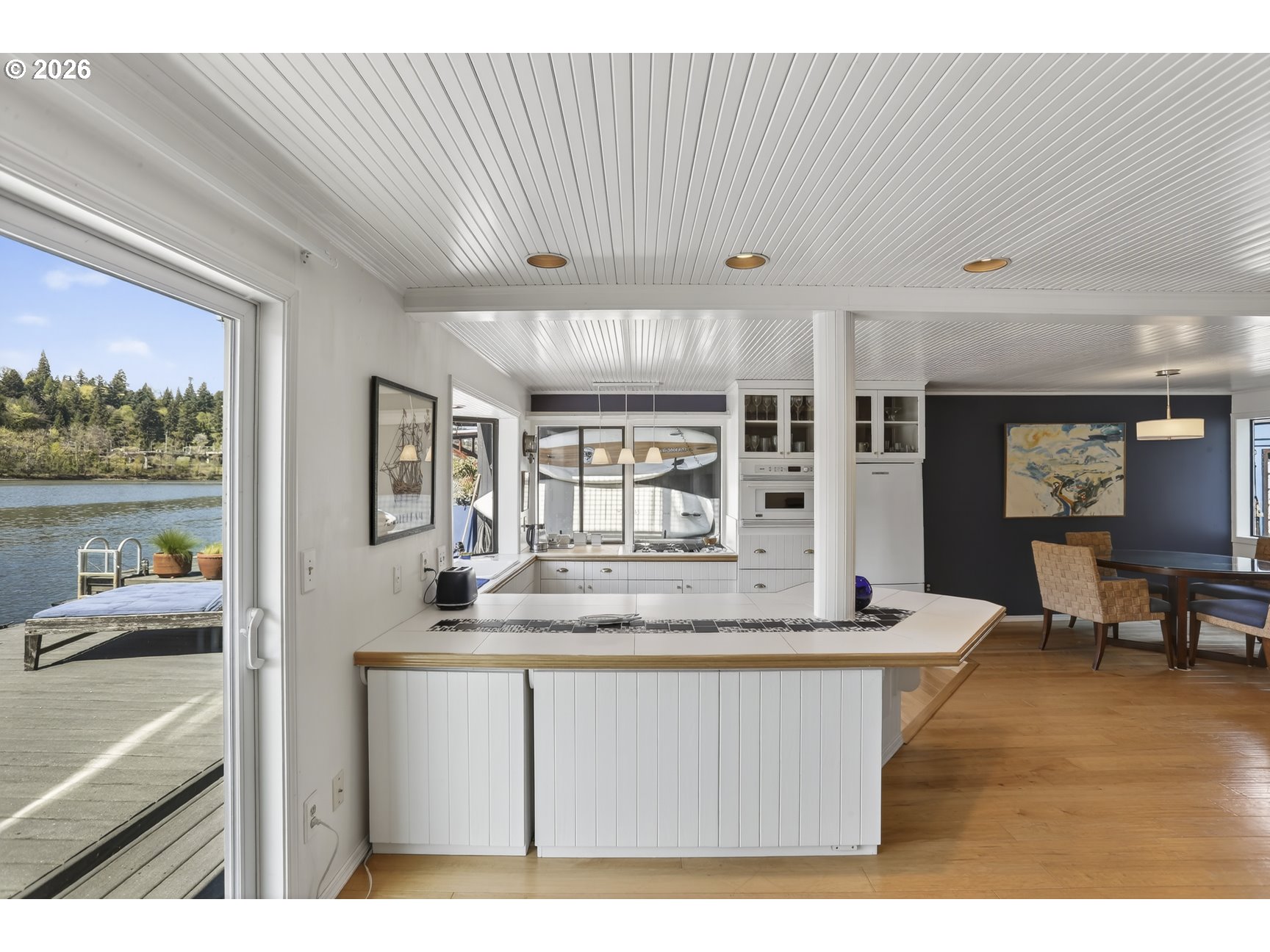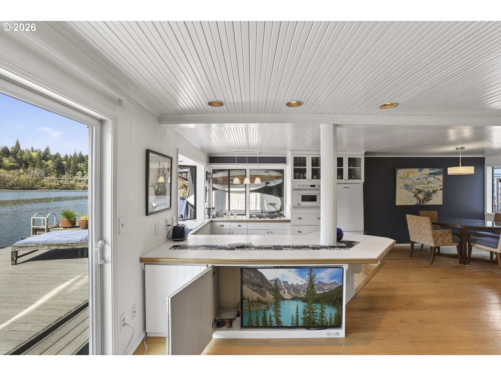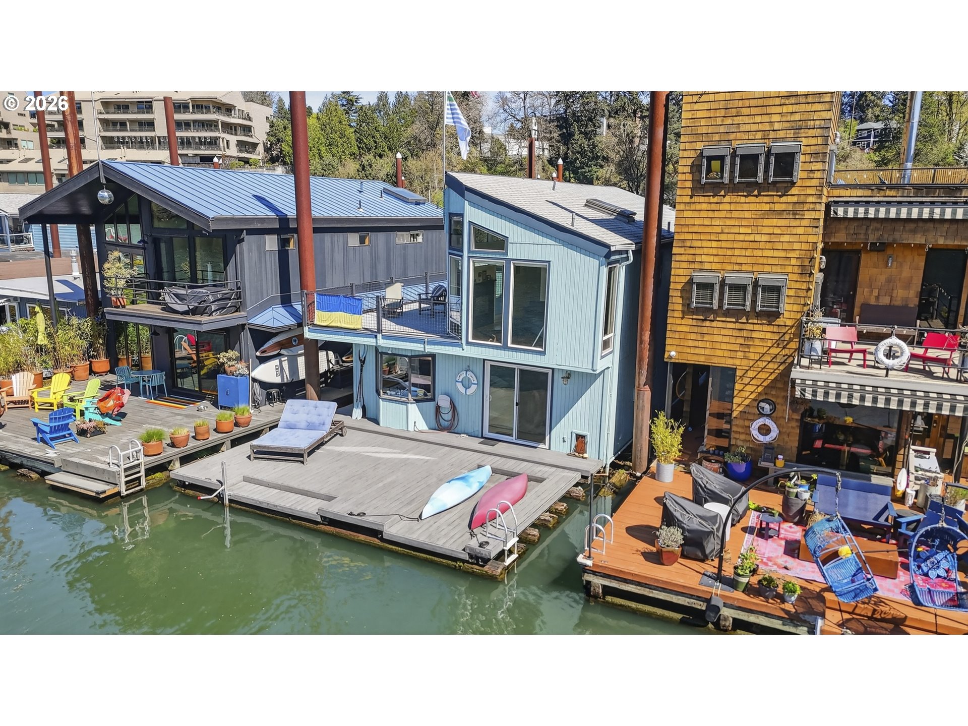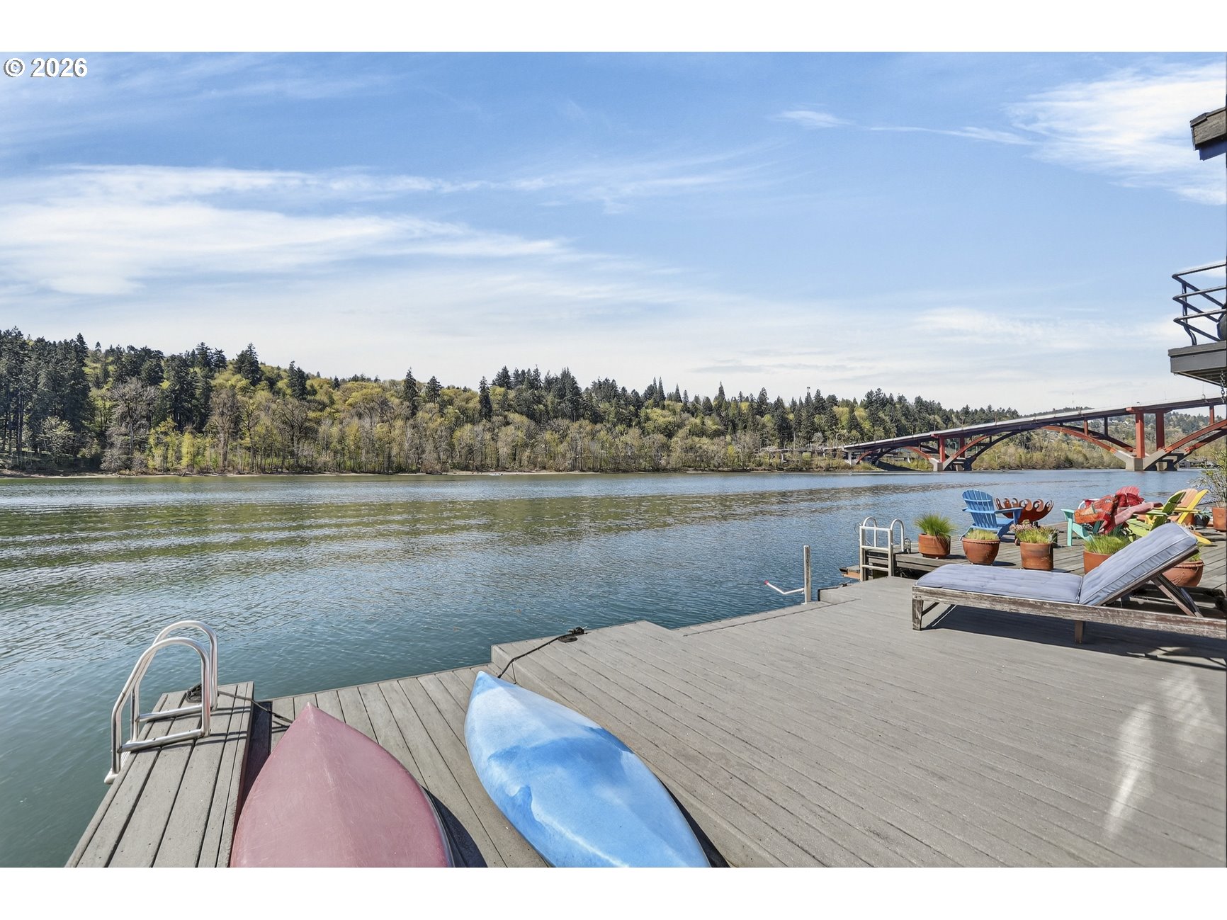 (503) 893-8874Tucked along a picturesque stretch of the Willamette River at the historic Portland Rowing Club, this one-of-a-kind floating property delivers the full river lifestyle—complete with three separate floating structures: a beautifully updated main home, a charming ADU tender, & a separate storage shed. The main home features 2 bedrooms & 2 bathrooms, blending comfort with a relaxed coastal feel. The main level showcases wood flooring and a tongue & groove wood ceiling, creating a warm, inviting space. The sunken kitchen is a standout feature, with a charming bay window that frames river views & a gas cooktop that makes cooking a joy. The living room offers recessed lighting, a gas fireplace, & sliding doors that open to the main deck — perfect for taking in the fresh air & scenic views. Upstairs, vaulted ceilings elevate the space, where a light-filled primary bedroom takes center stage. Large windows showcase sweeping river views, while an indoor/outdoor gas fireplace adds a touch of magic year-round. A wet bar and built ins are tucked into the hallway for easy access! Also on the upper level; 3rd bedroom with a mini split & closet, a full bathroom, & access to the upper deck — an ideal spot to unwind, entertain, & take in the ever-changing scenery of the Willamette River. The outdoor spaces are dialed in for river living, with plenty of room to host, a kayak ramp, & a step-down for easy water access. Storage is abundant throughout, & the separate storage structure (complete with electricity) adds even more flexibility. The ADU tender is a true bonus, offering its own kitchen, living area, & bathroom on the main level, plus a loft-style bedroom & upper deck with views of the River! Whether used for guests or rental income, it’s a rare & valuable addition. Located next to Springwater Trail & just a few short blocks from Sellwood proper, this home offers not just a place to live — but a lifestyle rooted in community, nature, & the timeless charm of life on the river.