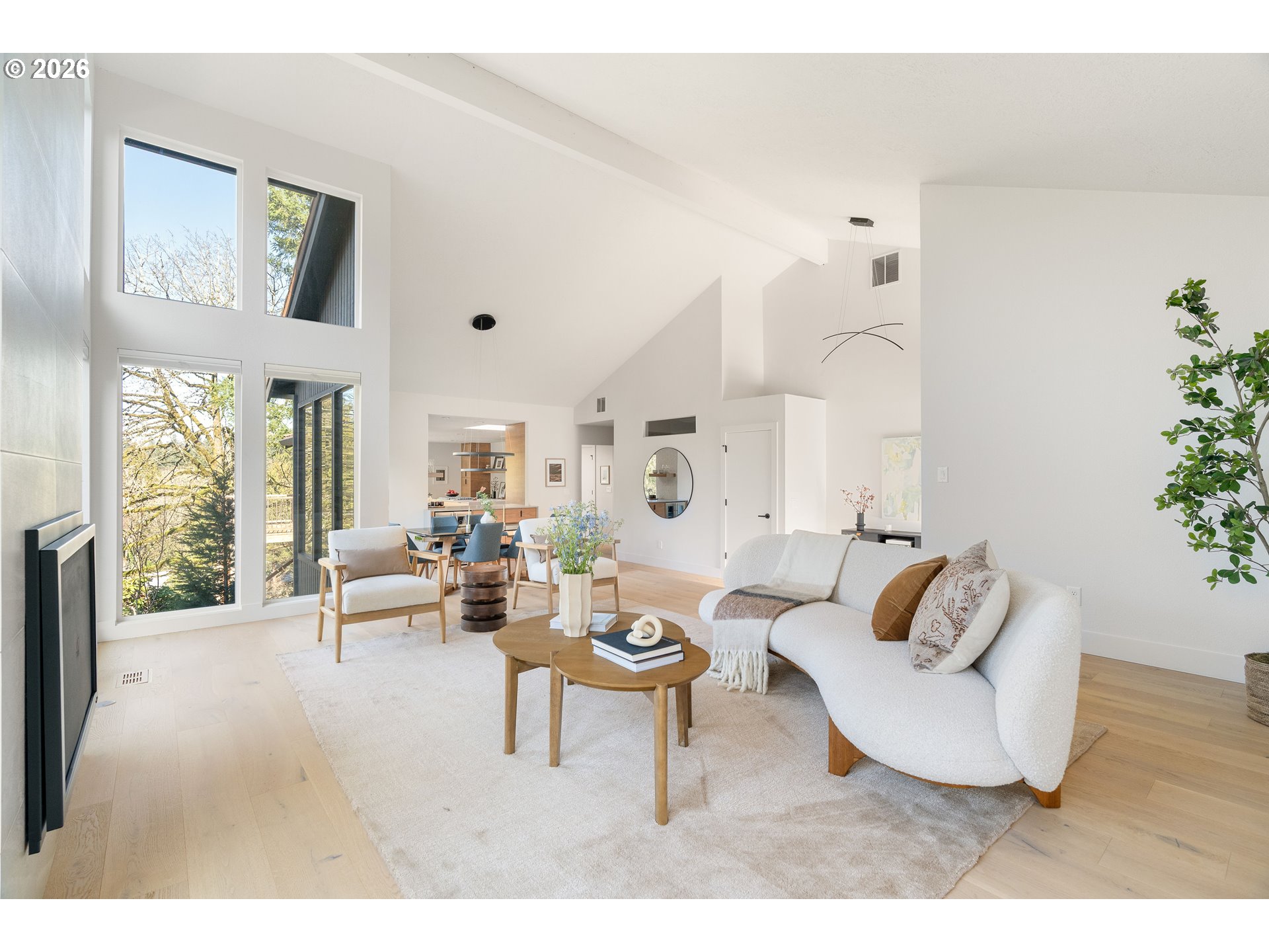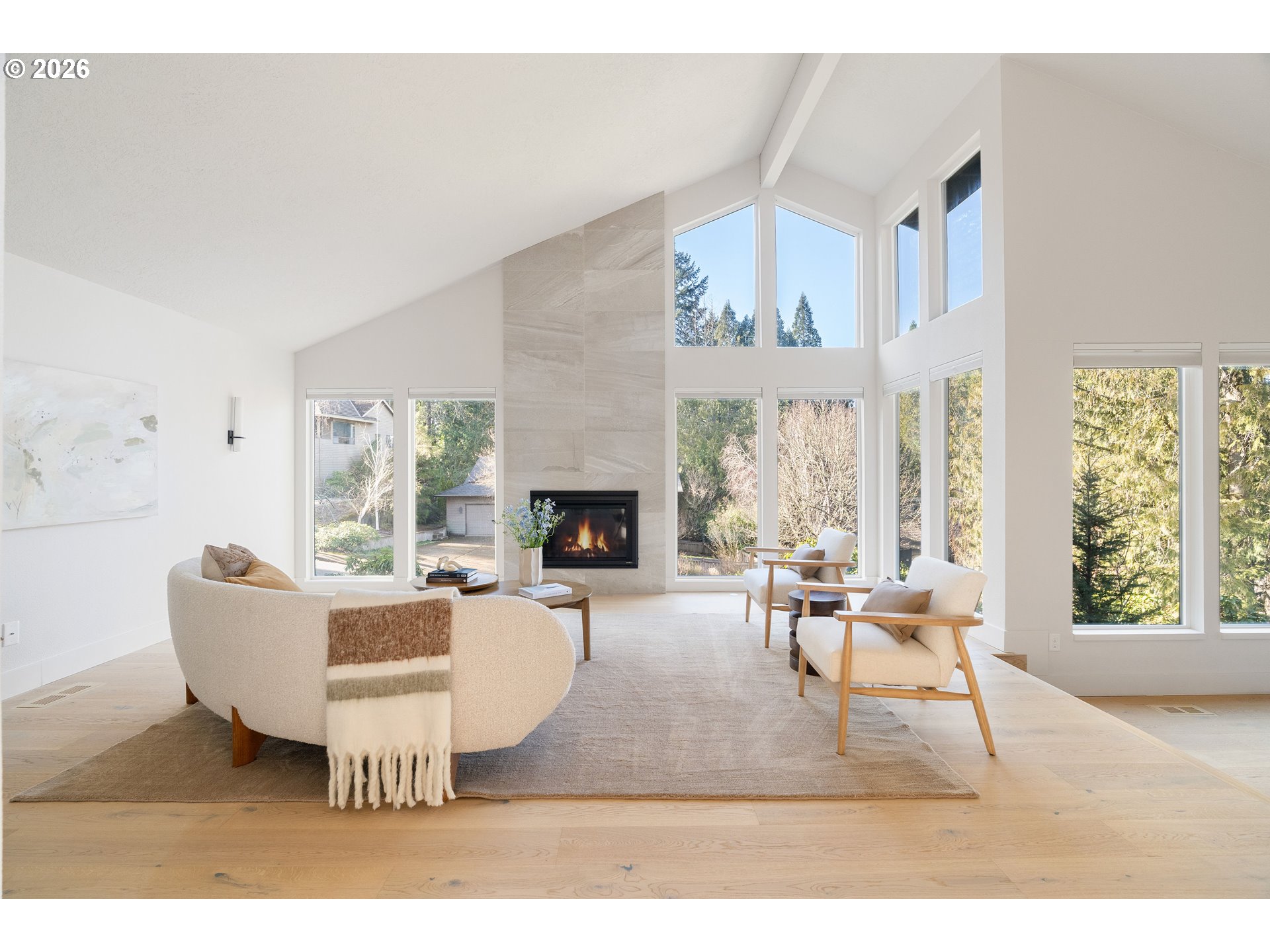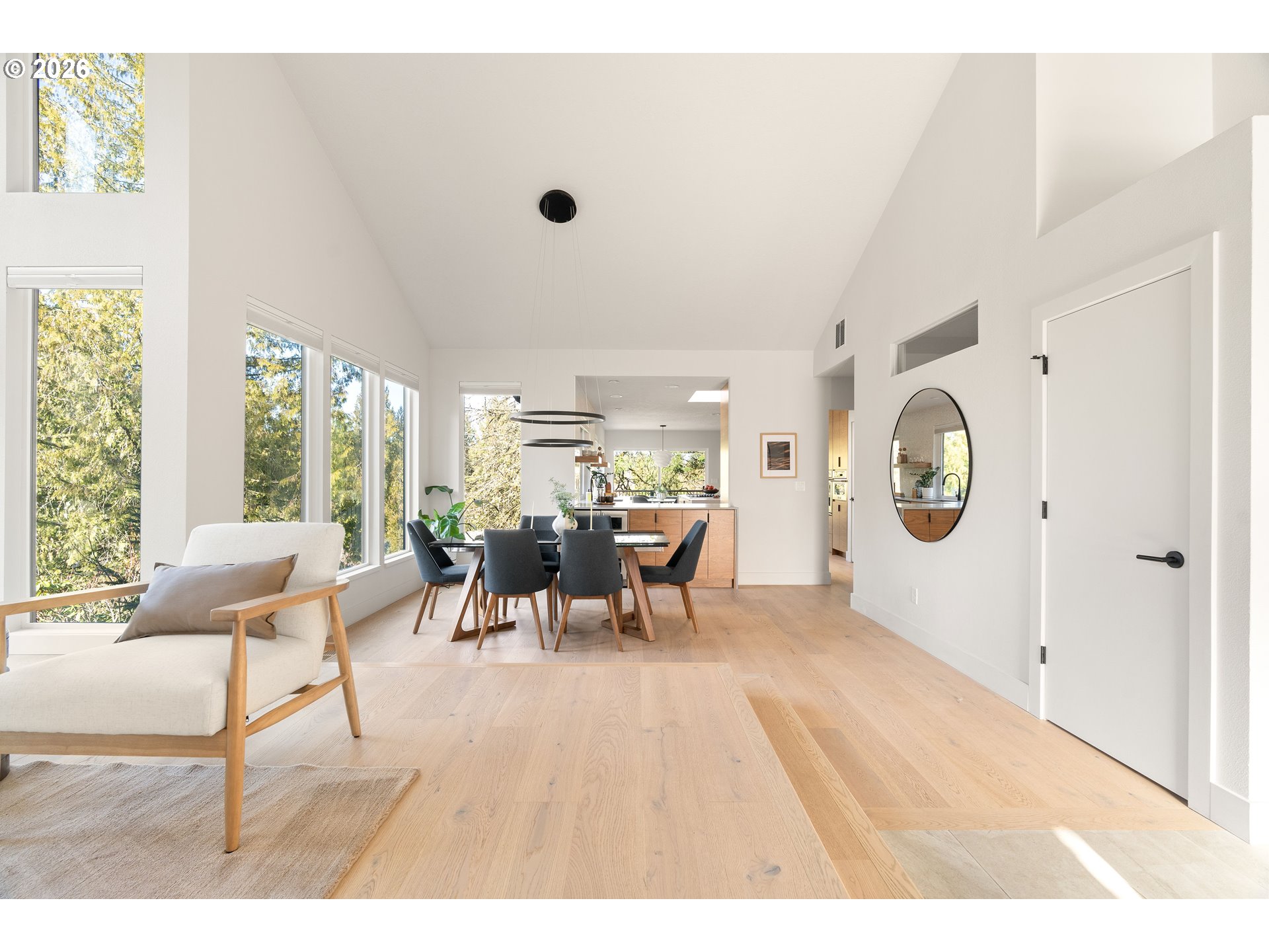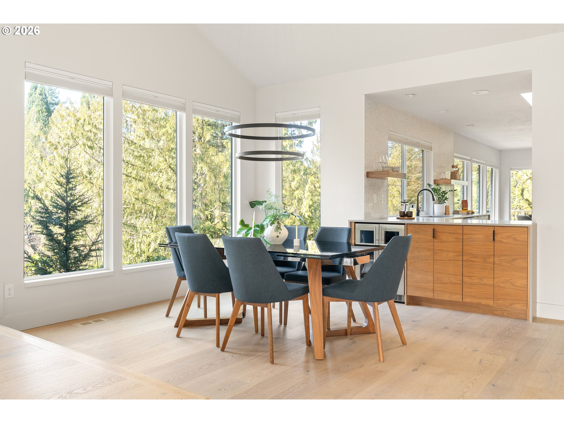 (503) 893-8874This fully remodeled Northwest contemporary blends timeless architectural style with modern luxury. The one-level home features vaulted ceilings and floor-to-ceiling windows that flood the space with natural light, offering seasonal territorial views. Inside, enjoy the elegance of white oak flooring, heated tile in bathrooms, and custom walnut cabinets and built-ins throughout. The kitchen is a showpiece with high-end appliances, a huge island, exquisite tile work, and a casual dining area that opens through sliding glass doors onto a patio with scenic views - perfect for entertaining or relaxed family meals. Outside, the property is graced with mature, beautiful Northwest landscaping, providing serene outdoor spaces that complement the home’s architectural charm. Additional highlights include a spacious RV garage, a durable 50-year tile roof, and updated 2020 gas water heater and HVAC system. Don't miss out on this one of a kind designer home.