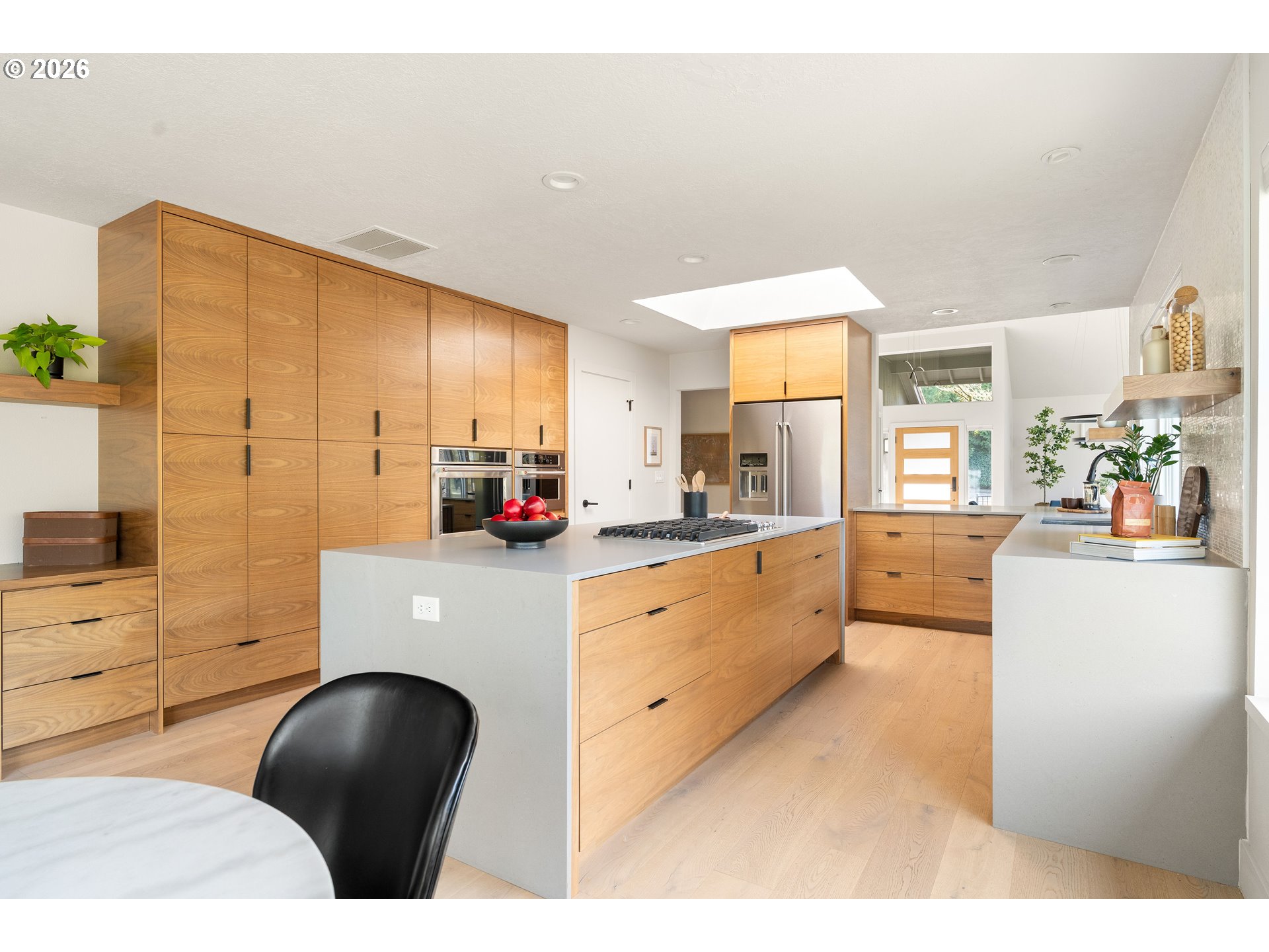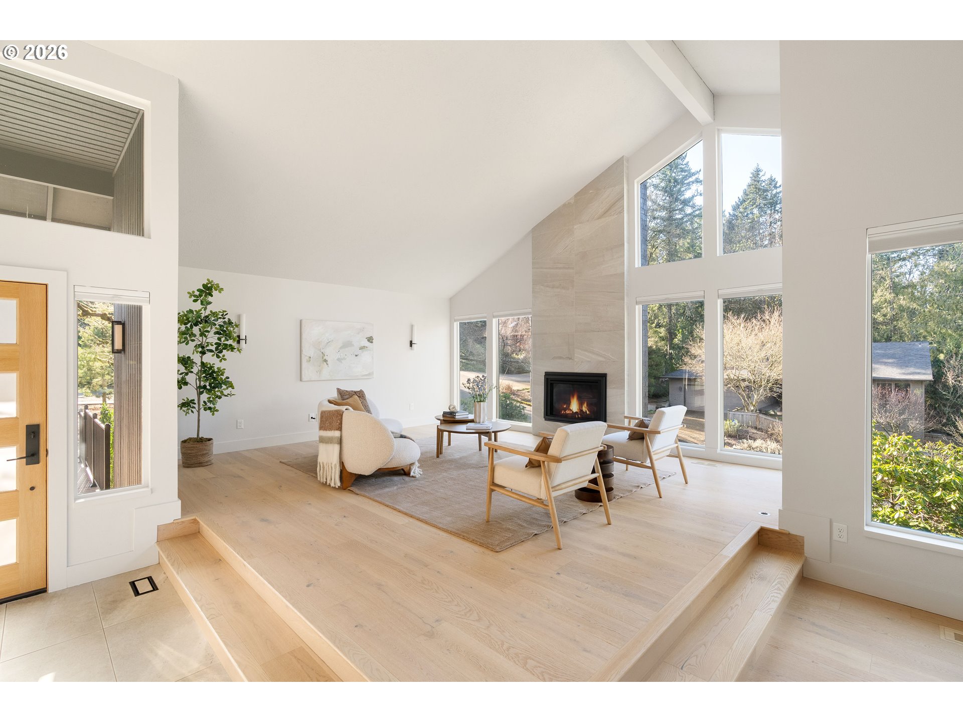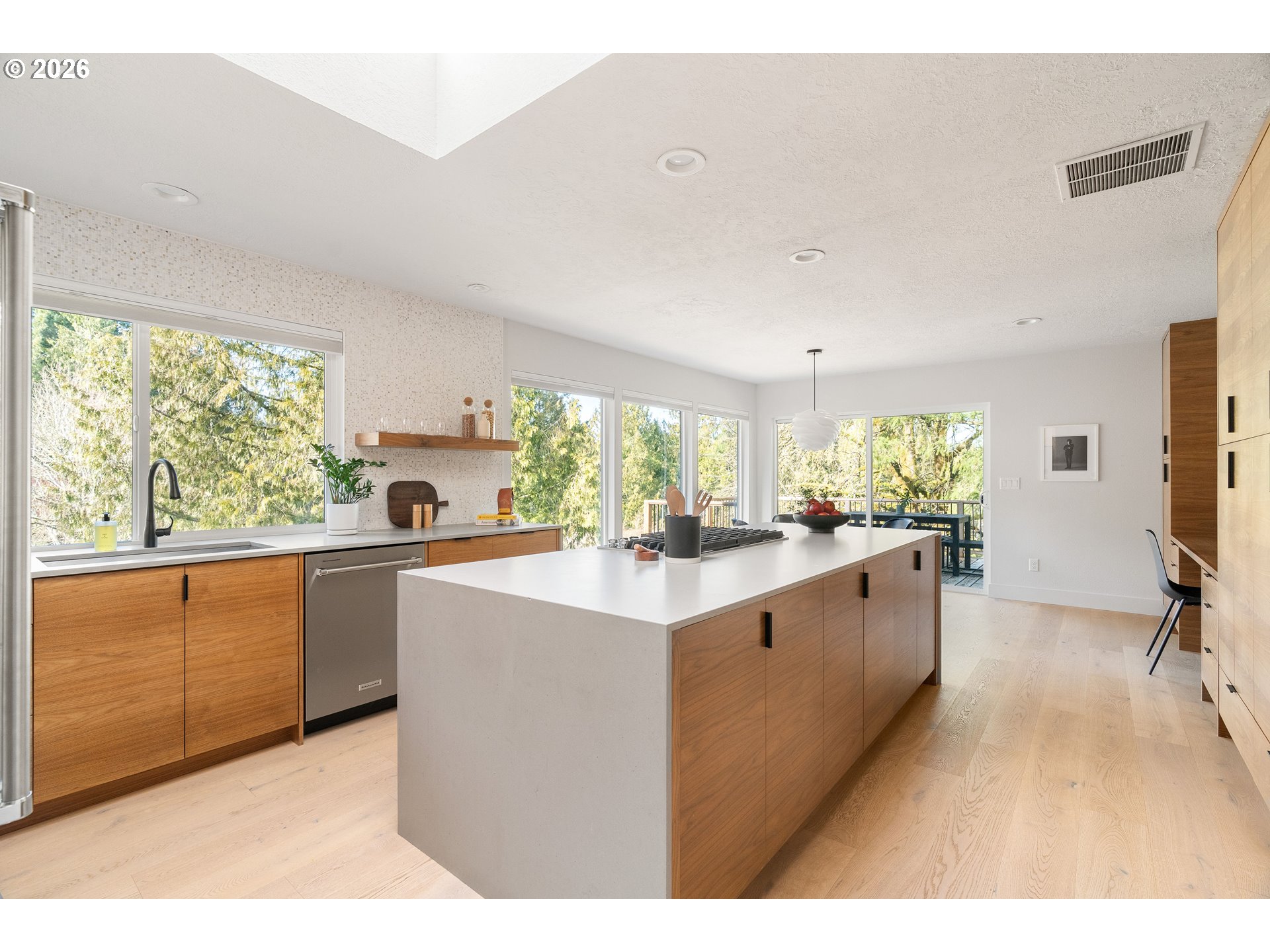 (503) 893-8874This fully remodeled Northwest contemporary blends timeless architectural style with modern luxury. The one-level home features vaulted ceilings and floor-to-ceiling windows that flood the space with natural light, offering seasonal territorial views. Inside, enjoy the elegance of white oak flooring, heated tile in bathrooms, and custom walnut cabinets and built-ins throughout. The kitchen is a showpiece with high-end appliances, a huge island, exquisite tile work, and a casual dining area that opens through sliding glass doors onto a patio with scenic views - perfect for entertaining or relaxed family meals. Outside, the property is graced with mature, beautiful Northwest landscaping, providing serene outdoor spaces that complement the home’s architectural charm. Additional highlights include a spacious RV garage, a durable 50-year tile roof, and updated 2020 gas water heater and HVAC system. Don't miss out on this one of a kind designer home.