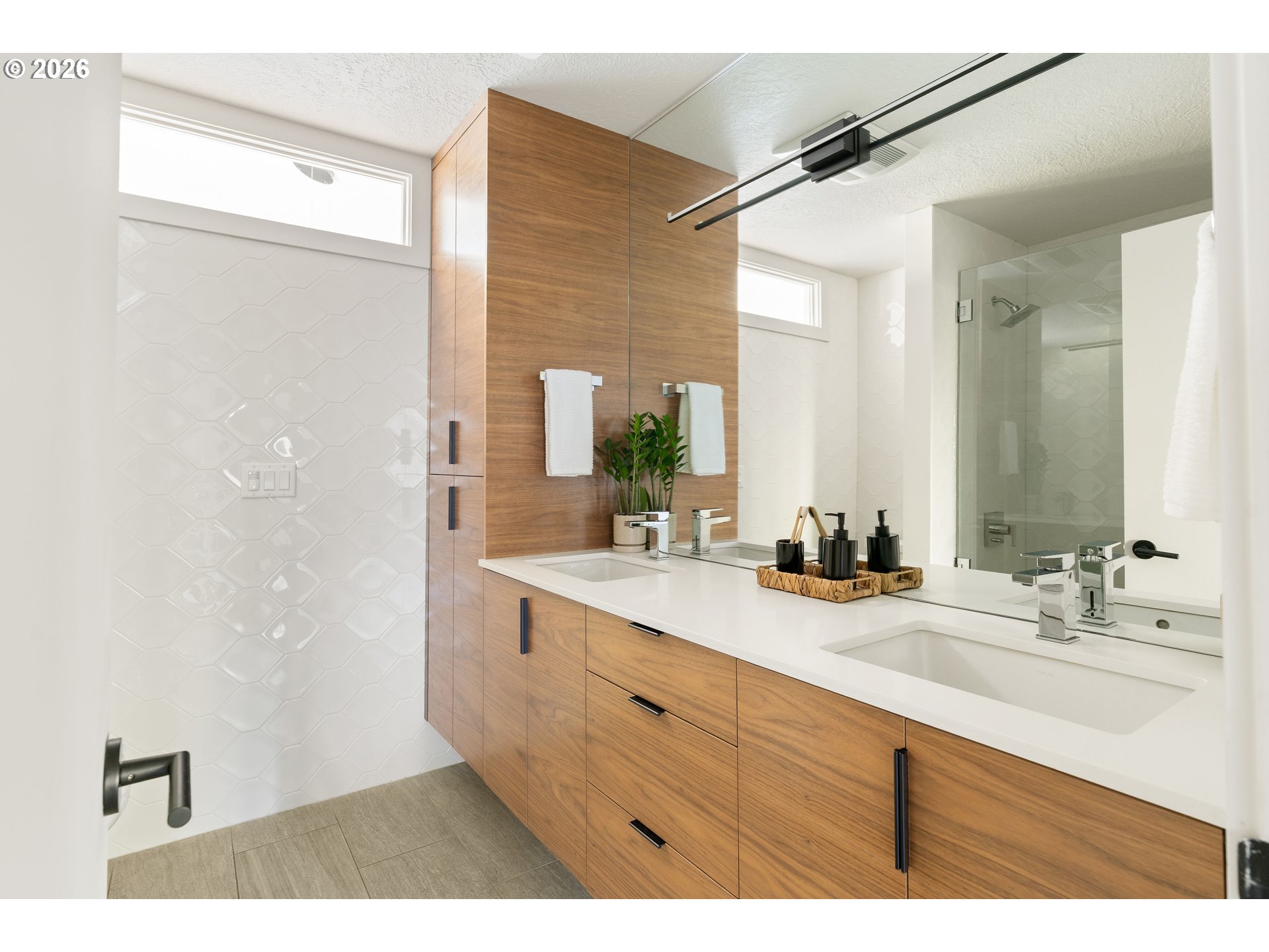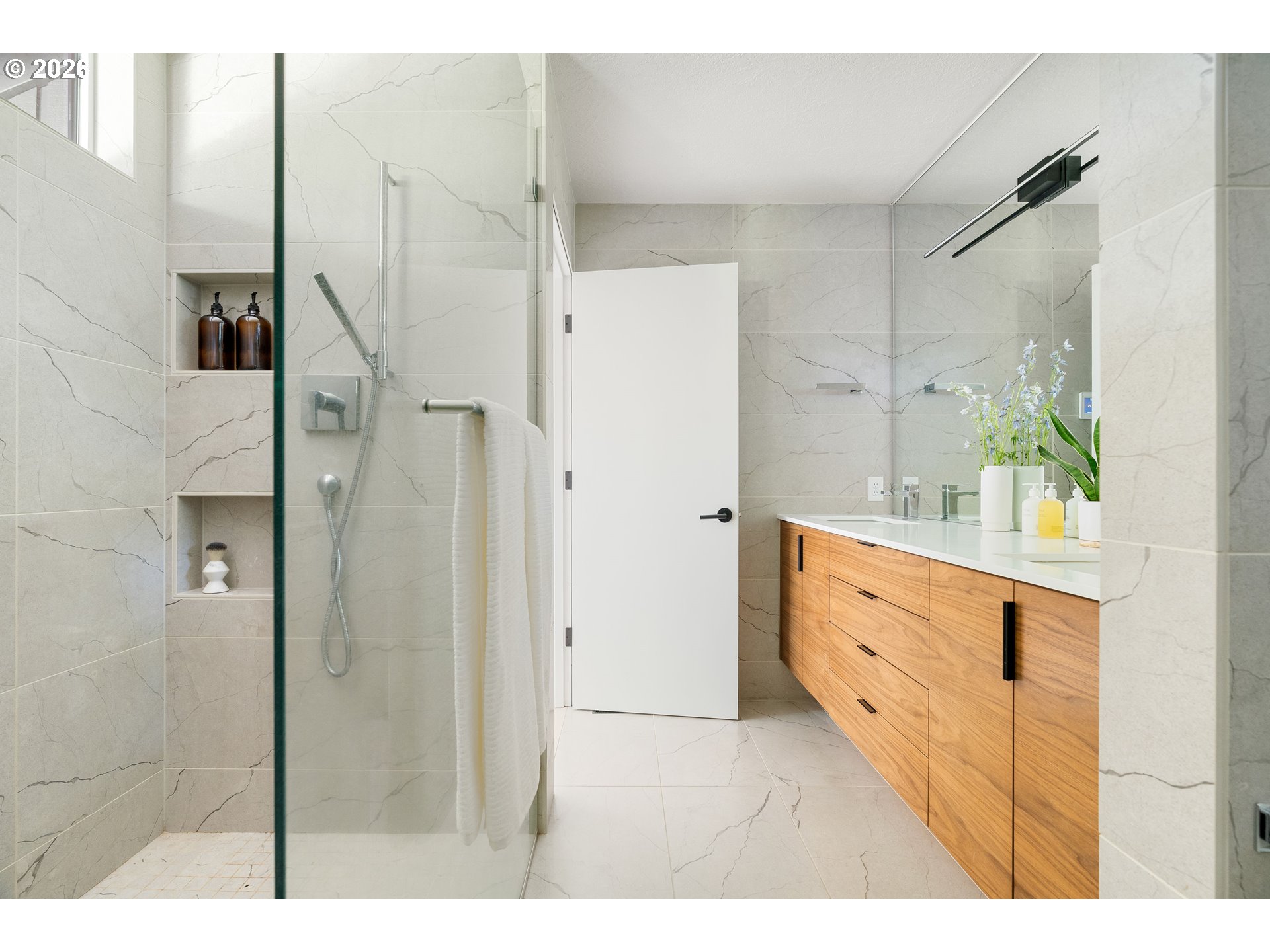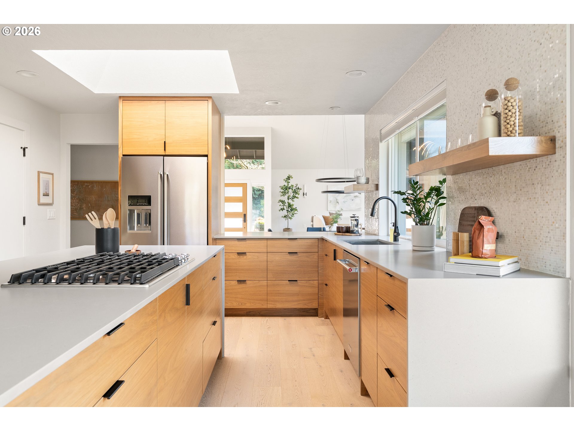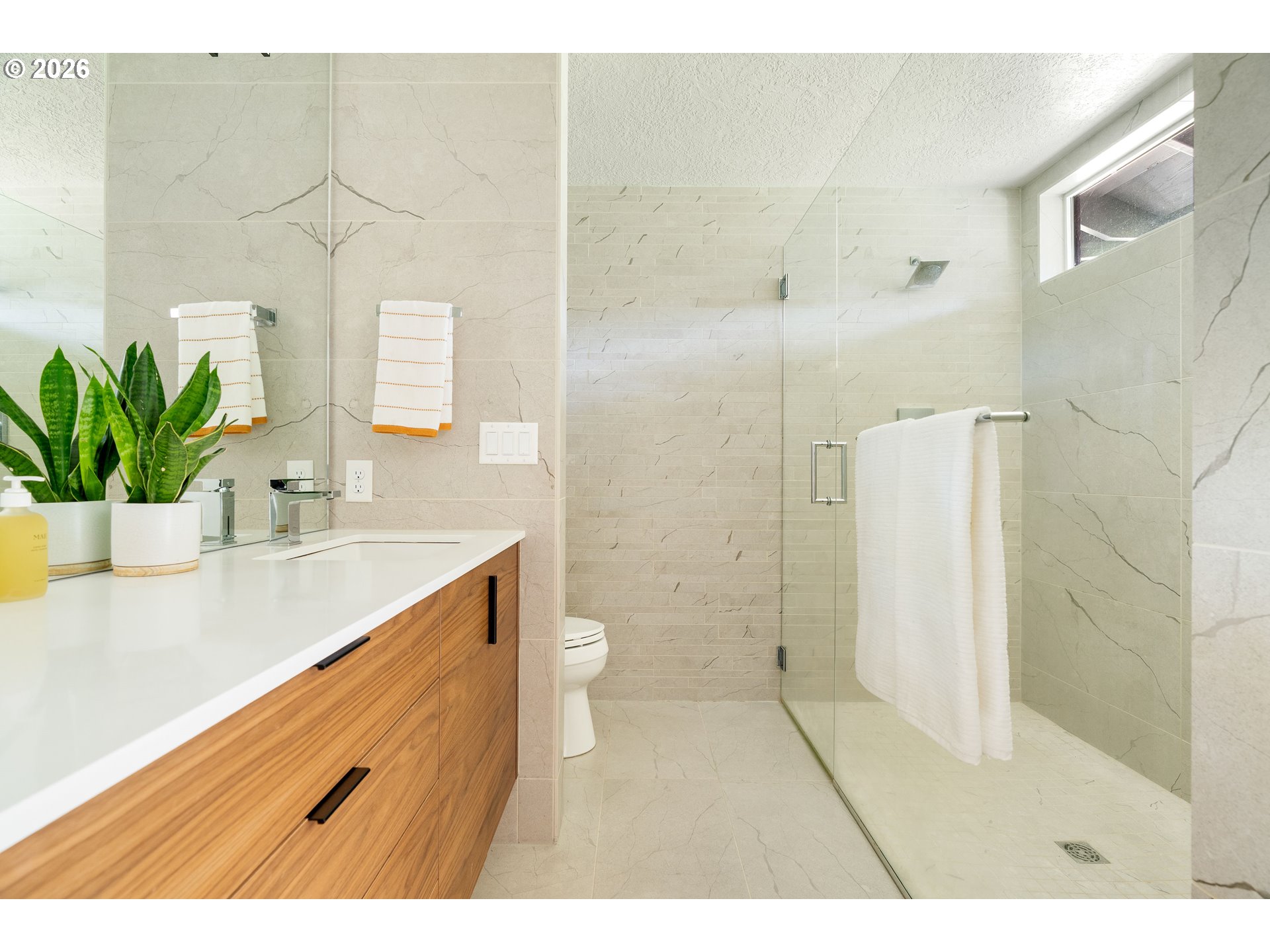 (503) 893-8874This fully remodeled Northwest contemporary blends timeless architectural style with modern luxury. The one-level home features vaulted ceilings and floor-to-ceiling windows that flood the space with natural light, offering seasonal territorial views. Inside, enjoy the elegance of white oak flooring, heated tile in bathrooms, and custom walnut cabinets and built-ins throughout. The kitchen is a showpiece with high-end appliances, a huge island, exquisite tile work, and a casual dining area that opens through sliding glass doors onto a patio with scenic views - perfect for entertaining or relaxed family meals. Outside, the property is graced with mature, beautiful Northwest landscaping, providing serene outdoor spaces that complement the home’s architectural charm. Additional highlights include a spacious RV garage, a durable 50-year tile roof, and updated 2020 gas water heater and HVAC system. Don't miss out on this one of a kind designer home.