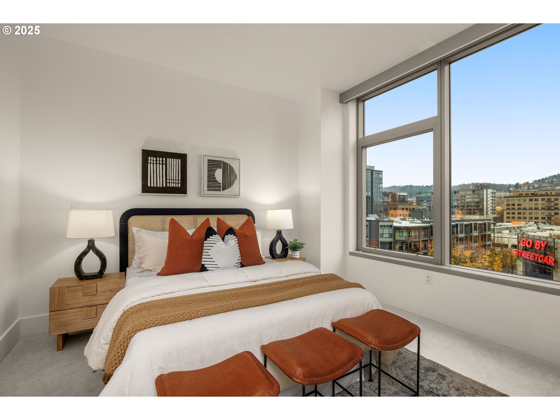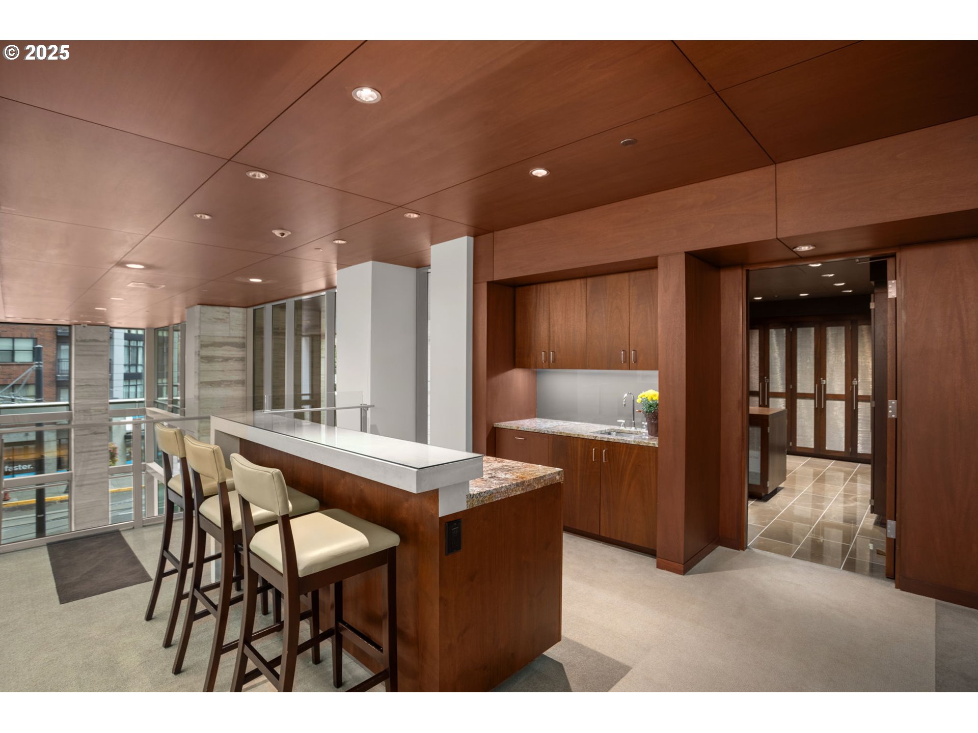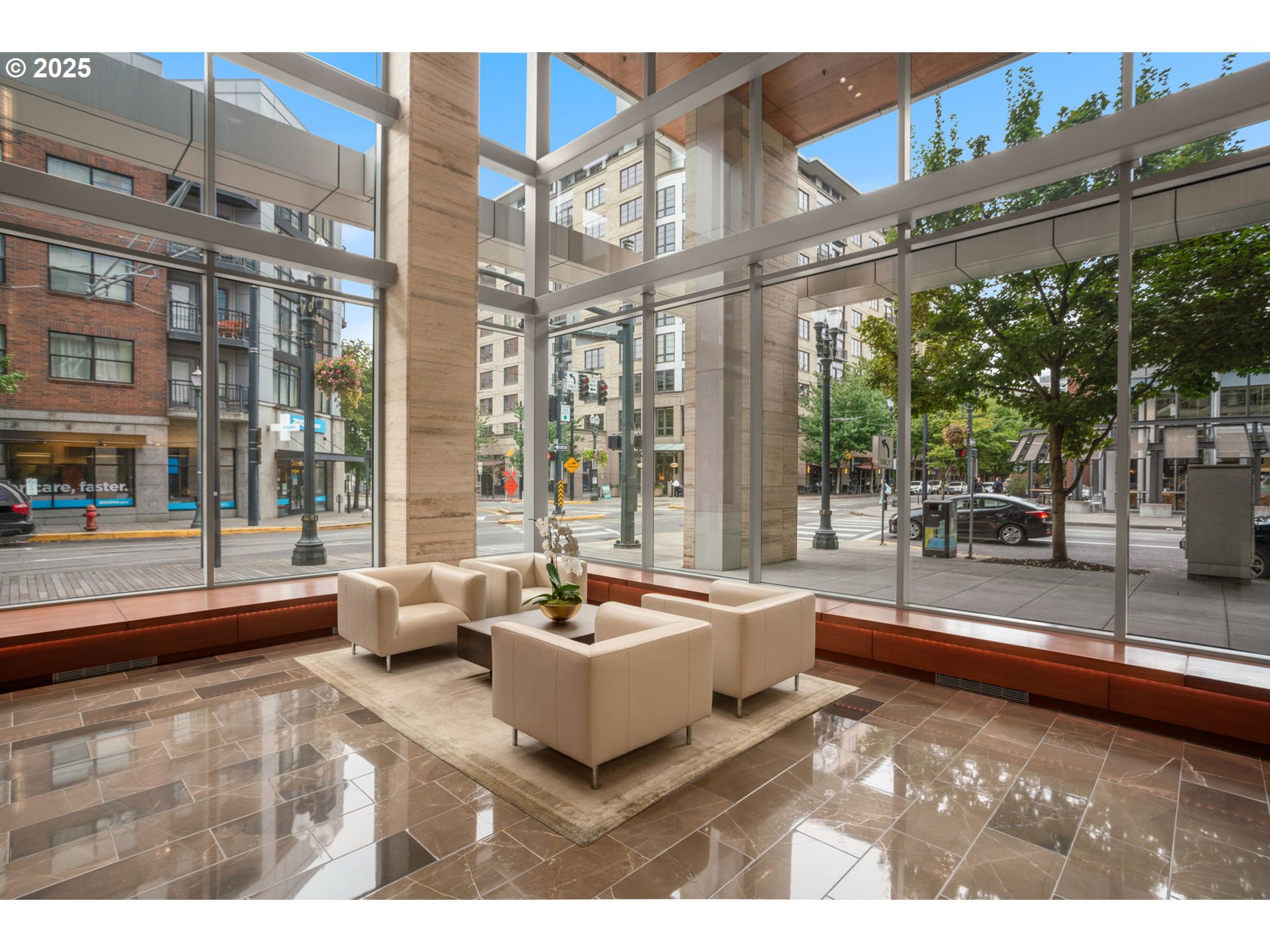Sophisticated two-bedroom- two bathroom home at the highly regarded Metropolitan Condominiums, offering timeless design and light-filled views. Priced at an exceptional value in the Pearl District’s premier luxury building, residents enjoy five-star amenities including concierge service, a fully equipped fitness center, wine storage, elegant lounge and meeting rooms. A landscaped courtyard with adjacent guest suites is also a coveted amenity. The home’s thoughtful floor plan begins with a true entry and flows seamlessly into open, airy living areas balanced by privately positioned bedrooms. Expansive windows capture views across the city and beyond, enhancing both the main living space and the serene primary suite. Refined finishes elevate the interiors: hardwood floors, granite counters in kitchen and baths, travertine stone accents, Viking stainless appliances, recessed lighting, and rich mahogany cabinetry. A utility room with new washer and dryer adds welcome functionality. Ideally located within blocks of three neighborhood parks, world-class dining, boutique shopping, groceries, and the Portland Streetcar, this residence embodies the best of Pearl District living. A deeded parking space and storage unit complete the offering.