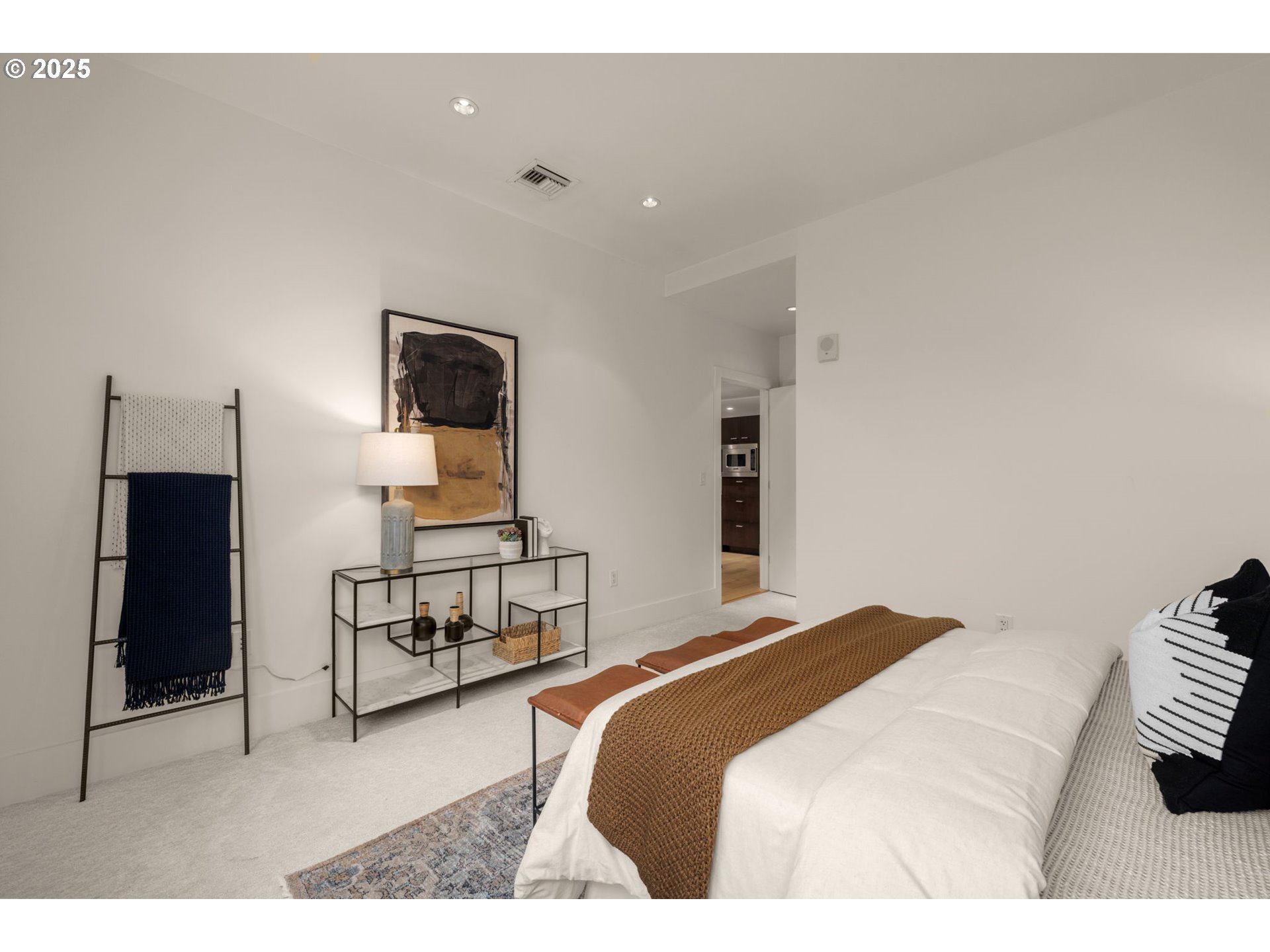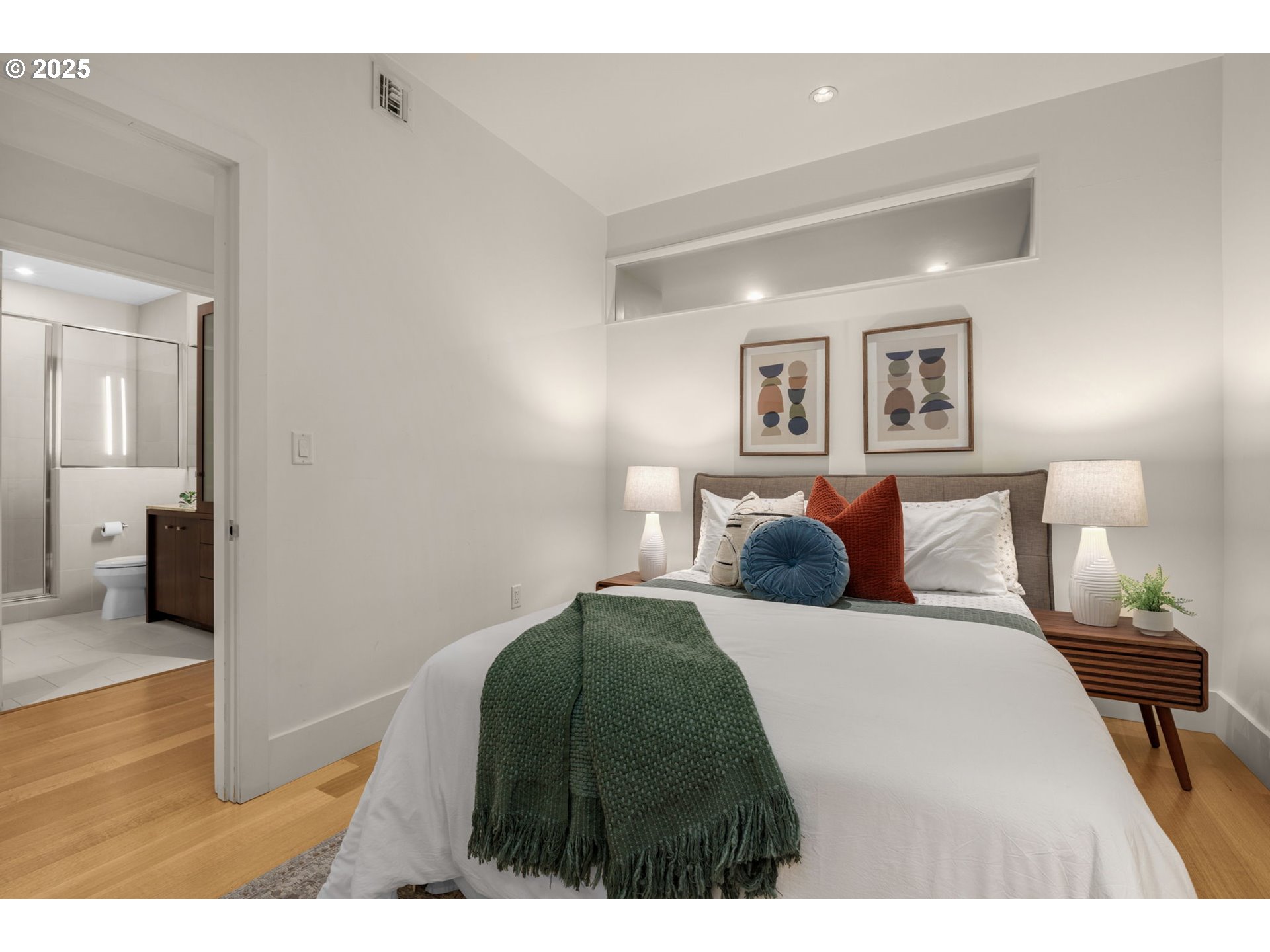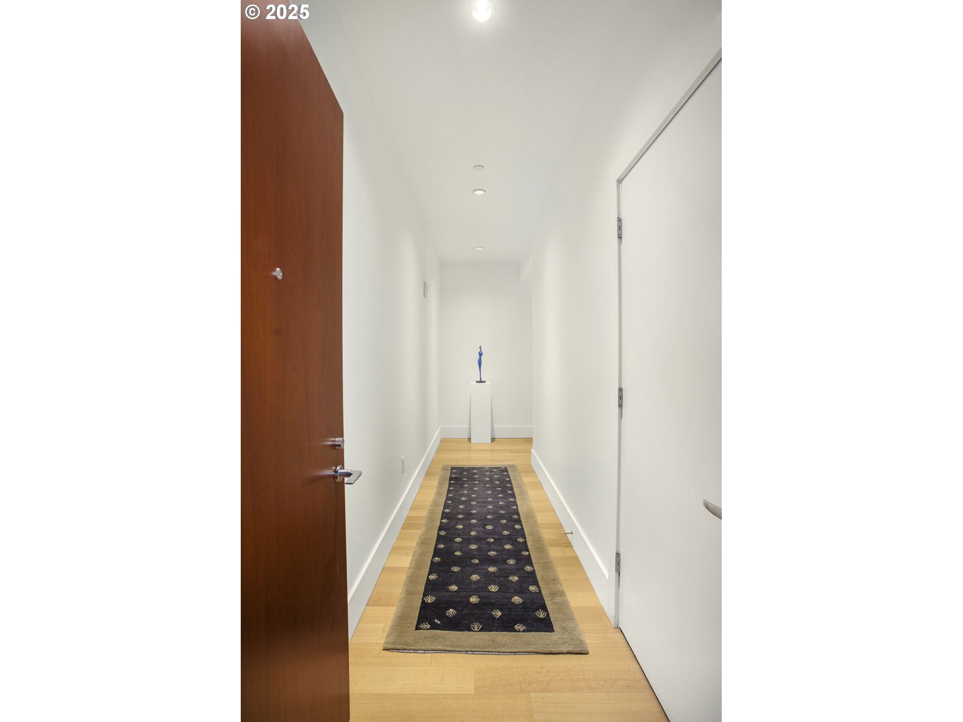 Sophisticated two-bedroom- two bathroom home at the highly regarded Metropolitan Condominiums, offering timeless design and light-filled views. Priced at an exceptional value in the Pearl District’s premier luxury building, residents enjoy five-star amenities including concierge service, a fully equipped fitness center, wine storage, elegant lounge and meeting rooms. A landscaped courtyard with adjacent guest suites is also a coveted amenity. The home’s thoughtful floor plan begins with a true entry and flows seamlessly into open, airy living areas balanced by privately positioned bedrooms. Expansive windows capture views across the city and beyond, enhancing both the main living space and the serene primary suite. Refined finishes elevate the interiors: hardwood floors, granite counters in kitchen and baths, travertine stone accents, Viking stainless appliances, recessed lighting, and rich mahogany cabinetry. A utility room with new washer and dryer adds welcome functionality. Ideally located within blocks of three neighborhood parks, world-class dining, boutique shopping, groceries, and the Portland Streetcar, this residence embodies the best of Pearl District living. A deeded parking space and storage unit complete the offering.