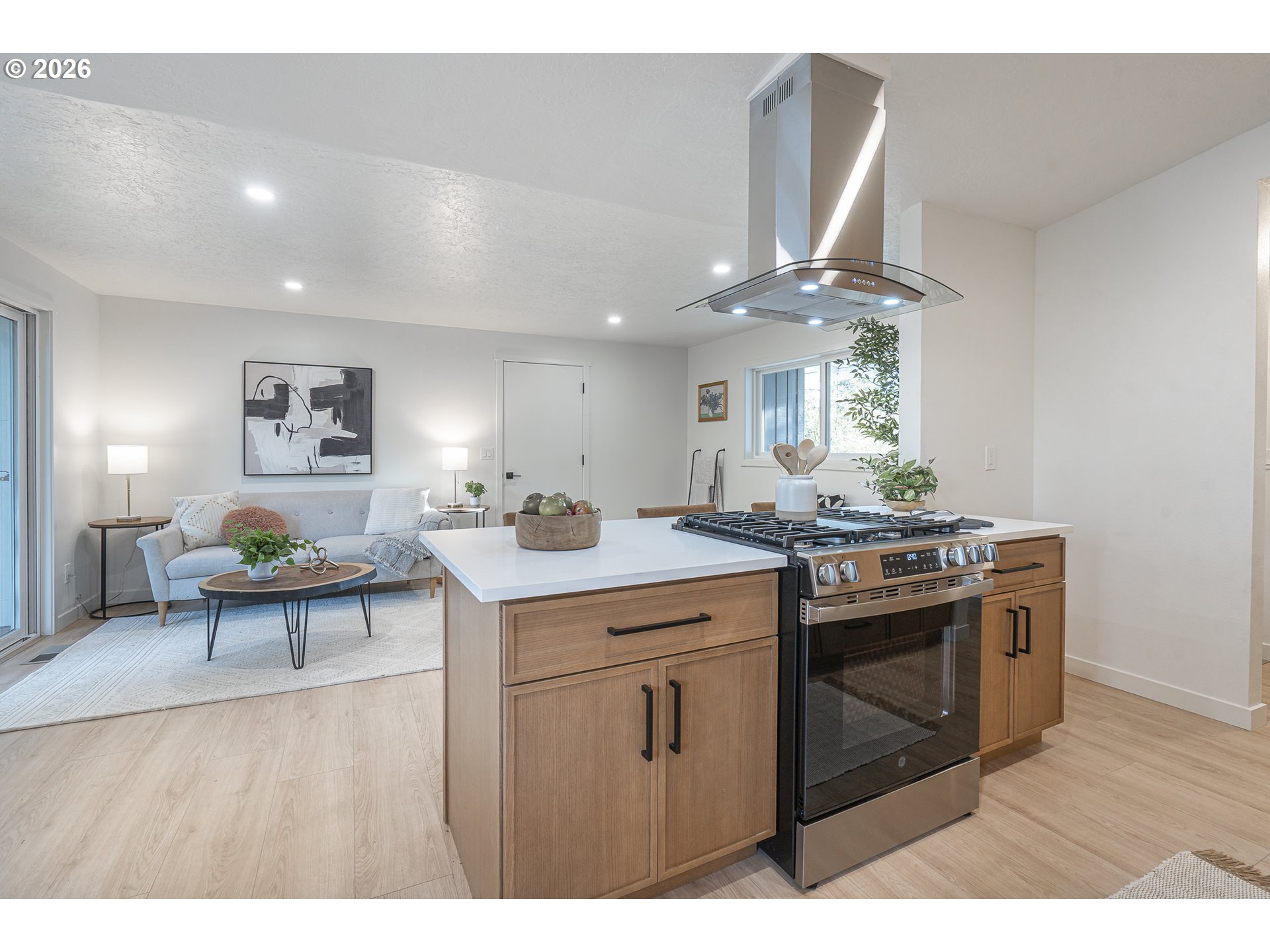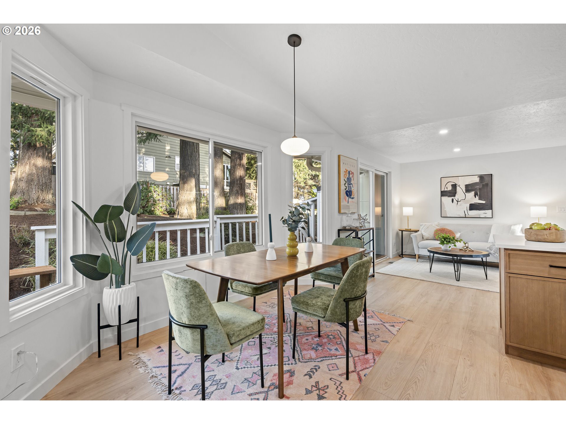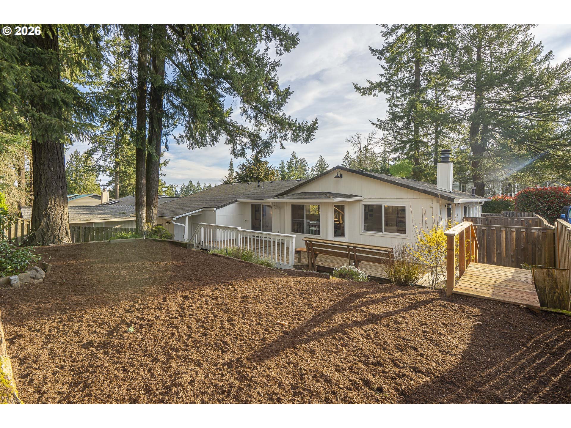 OPEN HOUSE SAT 12-2. Thoughtfully renovated single-level modern ranch on a spacious corner lot in the desirable Markham neighborhood. This warm and inviting home features fresh interior paint, updated trim, stylish new lighting, and wide-plank light-oak-tone flooring. Vaulted living room is filled with natural light and showcases a striking new electric fireplace with designer tile surround, a sliding door provides easy access to the side deck. The functional kitchen offers modern finishes, including slim shaker cabinetry, quartz countertops, stainless steel appliances, pantry storage and a sunny nook. The kitchen flows effortlessly into the spacious family room with a quartz eat-bar, providing ample space for gathering, entertaining and everyday living, a second slider opens to a generous deck ideal for relaxing or hosting guests . This home features three comfortable bedrooms and two fully updated bathrooms featuring new vanities, tile surrounds, tile flooring and contemporary fixtures. An extra large two-car garage, offers abundant flexibility and storage, with a separate shop area located behind the garage-perfect for hobbies, projects, or additional workspace. The inviting exterior showcases fresh paint, a new overhead garage door, and a new front entry door. The fenced yard and spacious deck provide a private and peaceful setting, perfect for relaxing, entertaining, or bringing your outdoor ideas to life. Washer, dryer & freezer included. Ideally located near parks, scenic hiking trails, schools, and convenient freeway access. A wonderful place to call home!