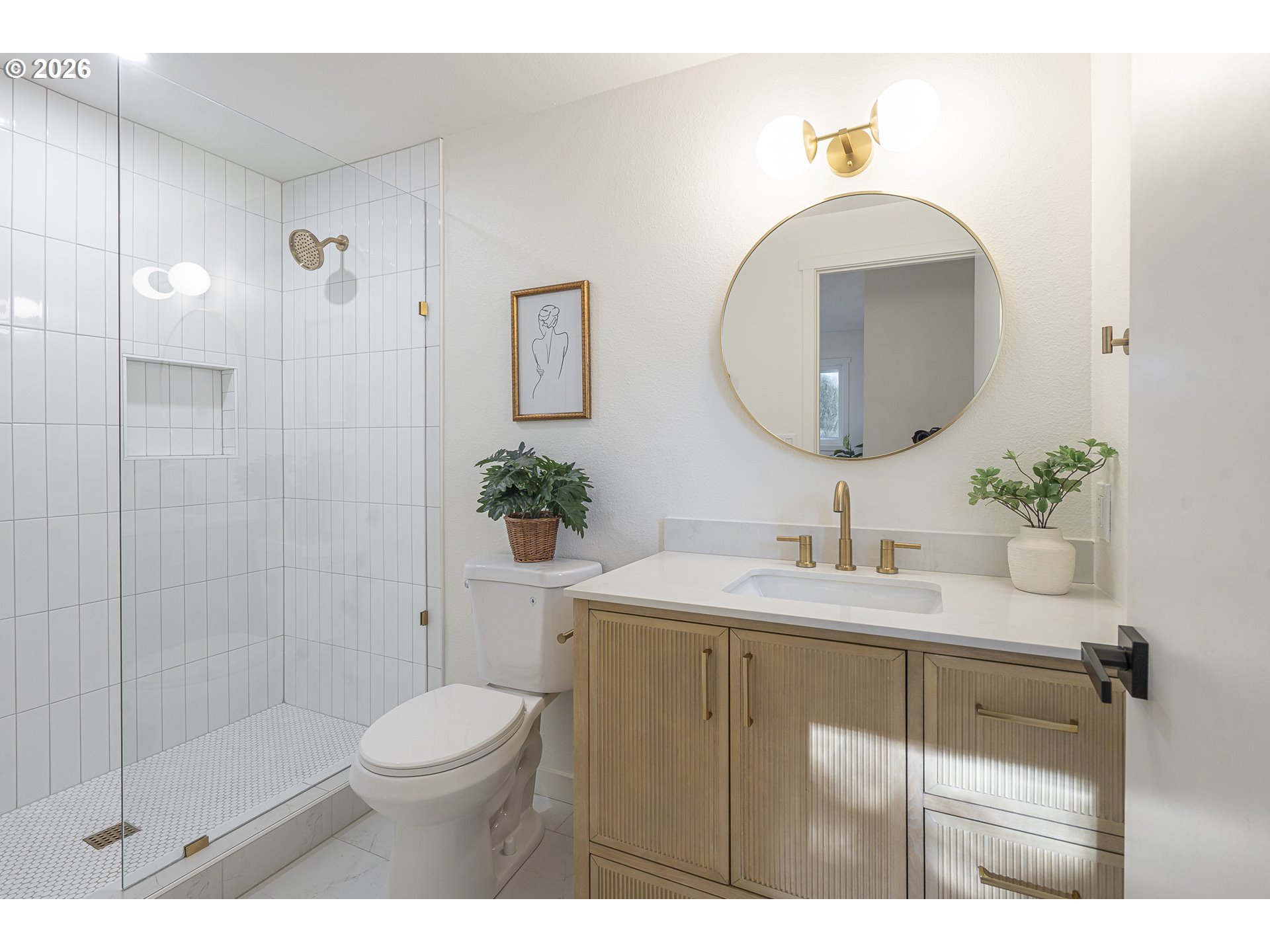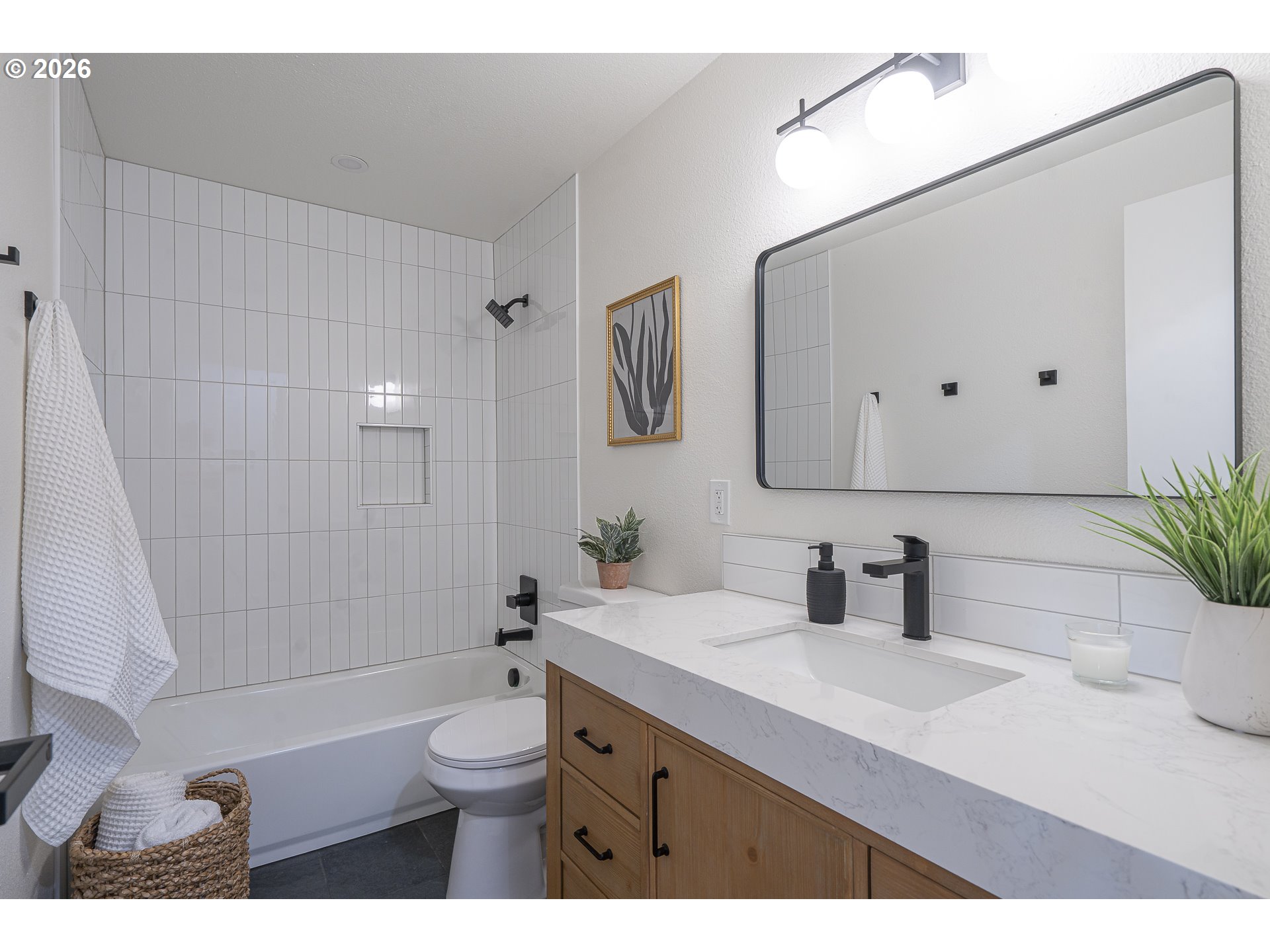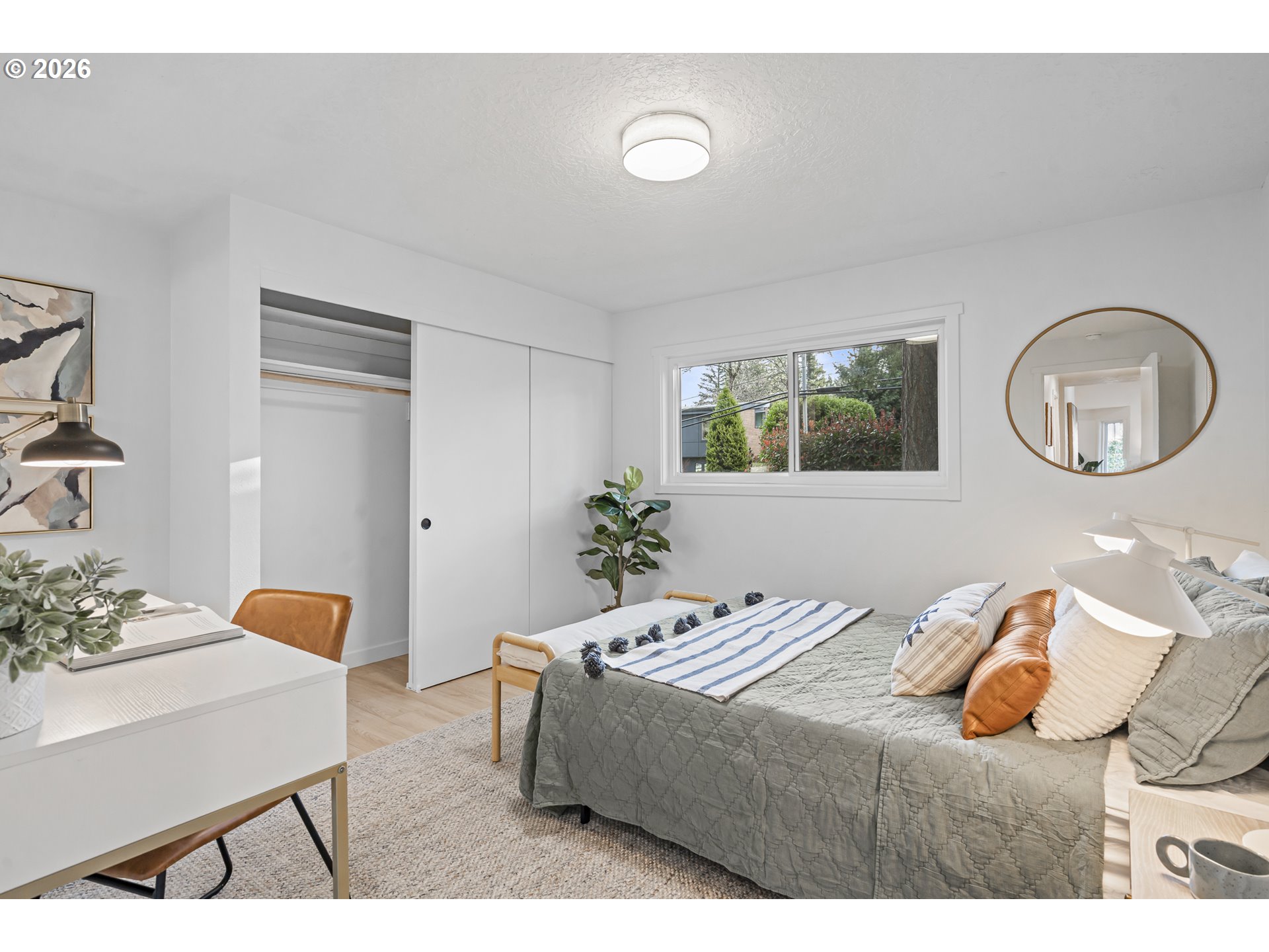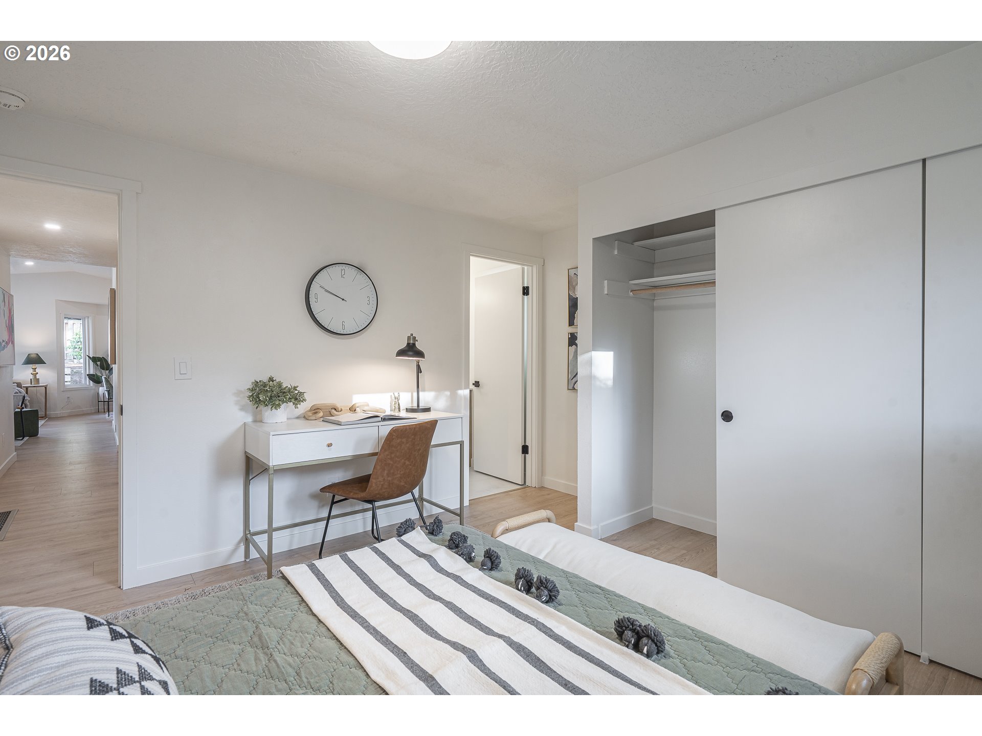 OPEN HOUSE SAT 12-2. Thoughtfully renovated single-level modern ranch on a spacious corner lot in the desirable Markham neighborhood. This warm and inviting home features fresh interior paint, updated trim, stylish new lighting, and wide-plank light-oak-tone flooring. Vaulted living room is filled with natural light and showcases a striking new electric fireplace with designer tile surround, a sliding door provides easy access to the side deck. The functional kitchen offers modern finishes, including slim shaker cabinetry, quartz countertops, stainless steel appliances, pantry storage and a sunny nook. The kitchen flows effortlessly into the spacious family room with a quartz eat-bar, providing ample space for gathering, entertaining and everyday living, a second slider opens to a generous deck ideal for relaxing or hosting guests . This home features three comfortable bedrooms and two fully updated bathrooms featuring new vanities, tile surrounds, tile flooring and contemporary fixtures. An extra large two-car garage, offers abundant flexibility and storage, with a separate shop area located behind the garage-perfect for hobbies, projects, or additional workspace. The inviting exterior showcases fresh paint, a new overhead garage door, and a new front entry door. The fenced yard and spacious deck provide a private and peaceful setting, perfect for relaxing, entertaining, or bringing your outdoor ideas to life. Washer, dryer & freezer included. Ideally located near parks, scenic hiking trails, schools, and convenient freeway access. A wonderful place to call home!
