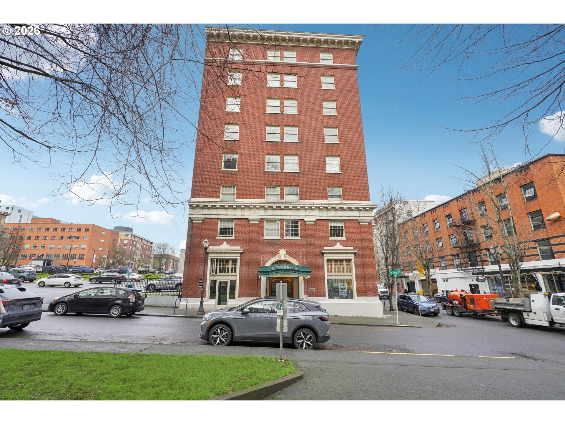 Own a piece of Portland’s history in Unit #703 at The Roosevelt. Bright, upper-floor 1-bedroom in the heart of the Cultural Arts District. Situated along the South Park Blocks, you’re steps from the Portland Art Museum, Arlene Schnitzer Concert Hall, PSU, the Central Library, farmers markets, restaurants, shops, and the MAX and bus lines. Truly everything downtown has to offer. Built in 1924 as a historic hotel and converted to condominiums in 2000, The Roosevelt is listed on the National Register of Historic Places and known for its vintage charm, classic architecture and strong sense of community. Skyline views, hardwood floors and efficient 1-bedroom layout. Whether you're looking for a low-maintenance city home or a perfectly placed condo, this delivers style, history, and unbeatable value. The Roosevelt is downtown living done right. Experience the best of Portland right outside your front door. HOA Dues cover all utilities and wifi.