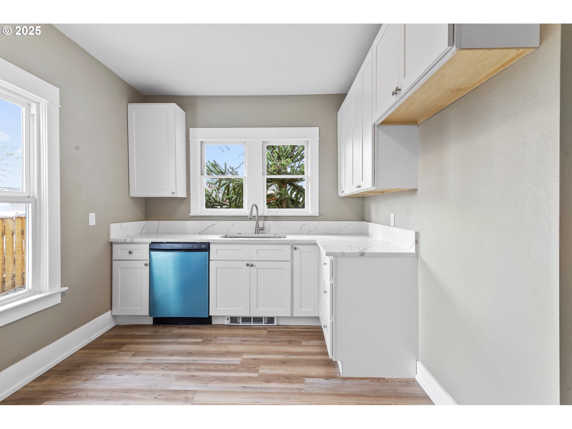 This beautifully remodeled home offers a modern lifestyle in a highly convenient SE Portland location. The new kitchen features sleek cabinets, stunning white quartz countertops, perfect for culinary enthusiasts and gatherings. The lower level has been thoughtfully finished to include a spacious family room, ideal for movie nights or entertaining. This versatile space can also serve as a home office or guest room, offering flexibility to suit your needs. A contemporary new bathroom enhances comfort and style with modern fixtures. Each bedroom is generously sized, providing ample space for relaxation and personal expression. Vinyl windows throughout the home ensure excellent insulation, keeping the house cool in summer and warm in winter. The fully insulated home improves energy efficiency and comfort year-round. Sitting on a corner lot, the property offers potential for off-street parking and adds to its curb appeal. The front covered porch is perfect for morning coffee or unwinding after a busy day. The backyard includes a concrete patio, ideal for outdoor barbecues and gatherings. Located in a prime SE Portland neighborhood, this home offers unparalleled convenience with easy access to stores, restaurants, and amenities. Quick freeway access makes commuting to downtown Portland or exploring the scenic Pacific Northwest effortless. This is a move-in-ready home, more than just a houseāit's an opportunity to enjoy a modern, comfortable lifestyle in a sought-after area. Priced to sell, it provides incredible value for anyone seeking a stylish, ready-to-go starter home. Schedule your viewing today and imagine how this house could become your new home!