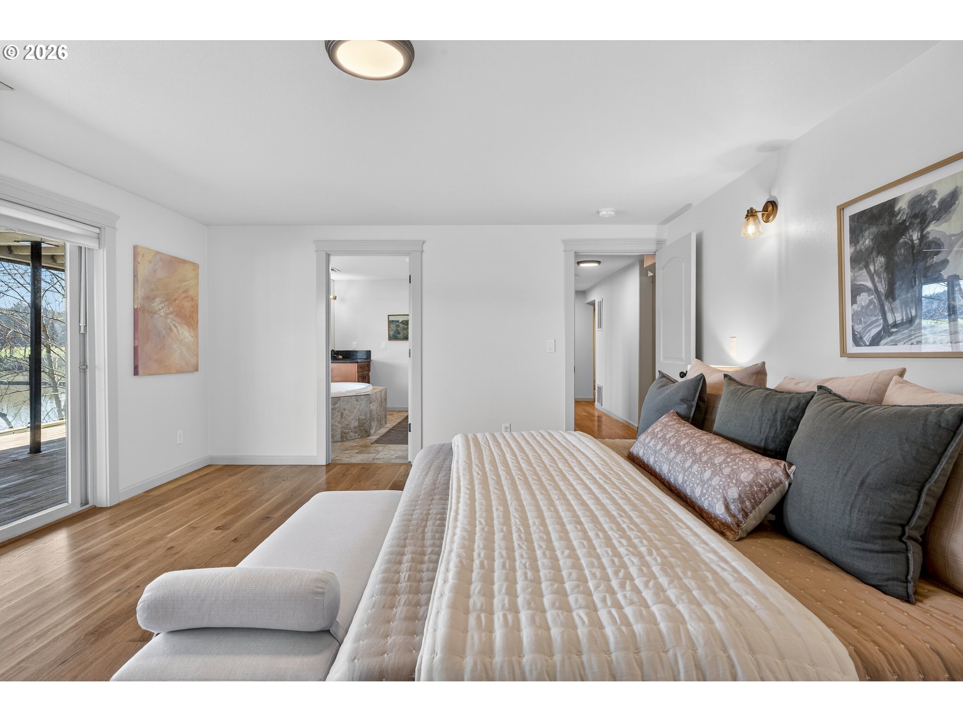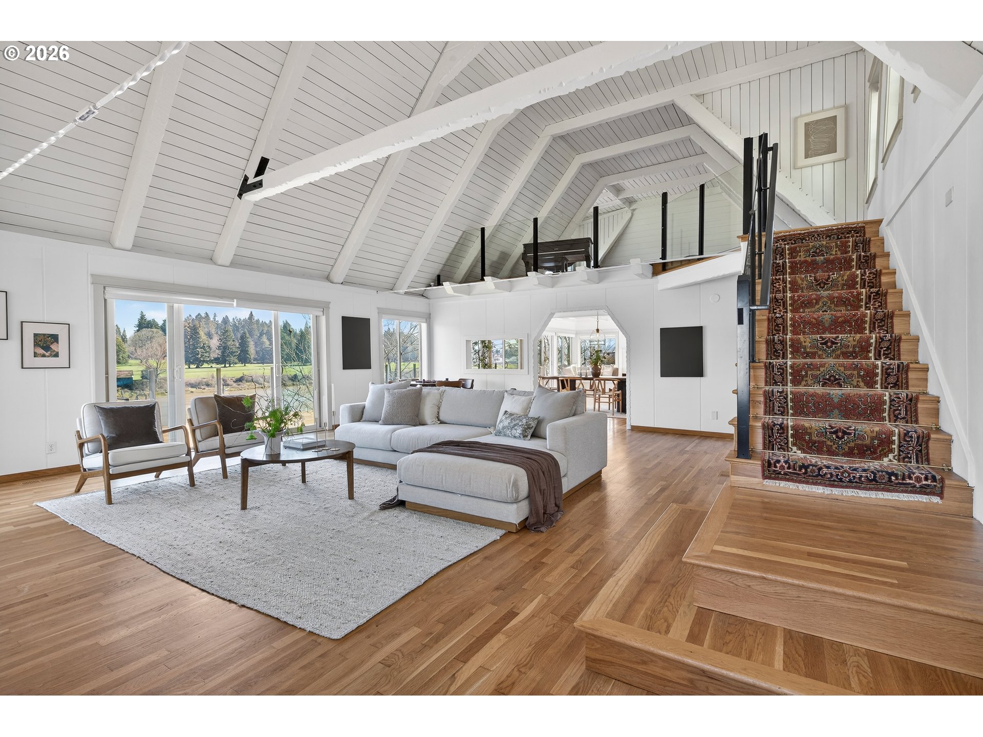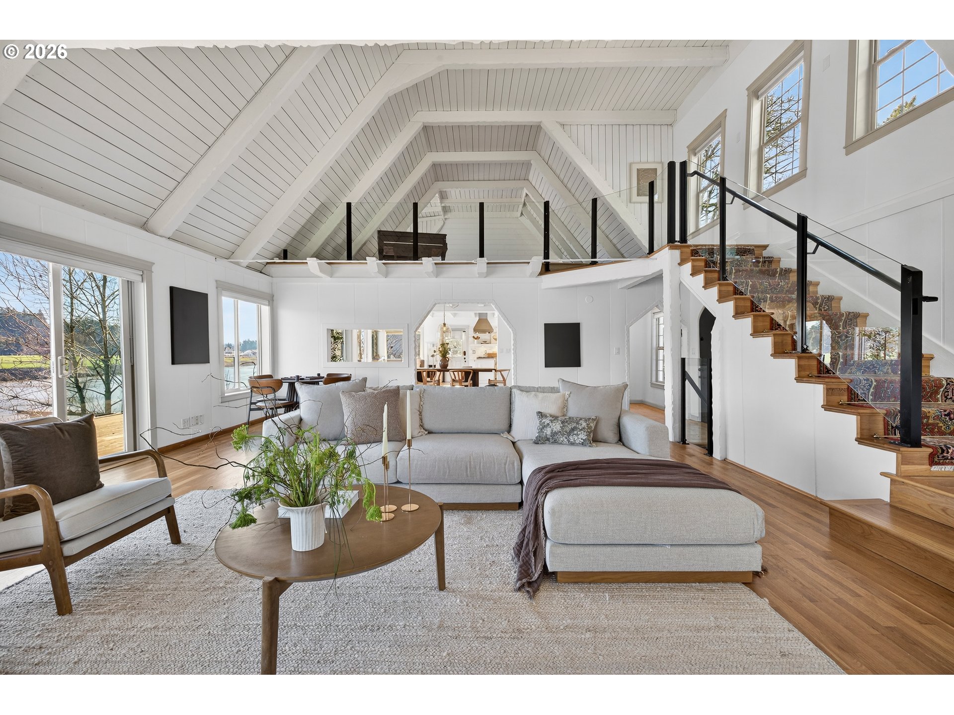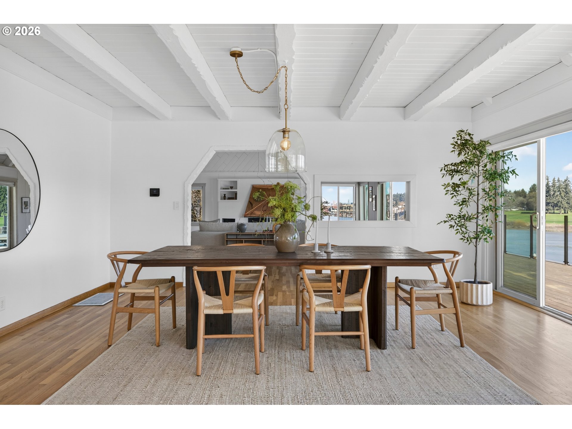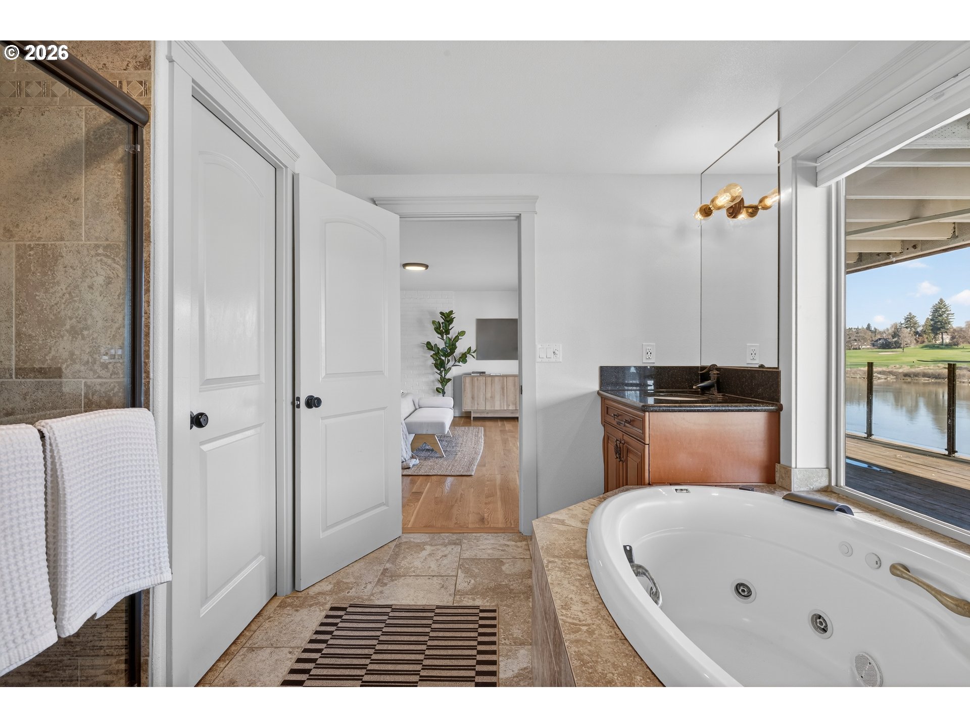 (503) 893-8874Perched along the banks of the Willamette River in coveted Dunthorpe, this exceptional riverfront retreat captures sweeping water views from nearly every room. With panoramic vistas spanning the river, Waverley Country Club, and downtown Portland, this home offers a rare blend of luxury, thoughtful updates, and an unparalleled waterfront lifestyle. Vaulted ceilings and a dramatic open living room with showstopping copper mantle over the central fireplace create light-filled interiors where walls of windows frame ever-changing river scenes. The remodeled kitchen was reimagined to maximize views and flow, featuring top-of-the line appliances, carrara marble backsplash, and quartz countertops. Sip your morning coffee from the breakfast nook, adjacent dining room, or step out to the oversized balcony to dine with alfresco while watching boats and riverside wildlife. The newly rebuilt and stained decking feature sleek glass railings preserve the 180 degree views from downtown PDX to Lake Oswego. The airy lower-level primary suite includes an updated bath with soaking tub and private access to the lower-level balcony. Gleaming hardwood floors continue throughout the lower-level with two additional bedrooms and remodeled full bath. Recent improvements include a new roof, new deep-water dock and gangway, new lighting and cosmetic upgrades throughout and refreshed landscaping. HVAC and electrical updates were completed throughout. Outdoor enthusiasts will love the private dock, expansive decks, waterfall feature, hot tub and covered area for entertaining. Enjoy access to nearby trails, Lewis & Clark college, and top-rated Riverdale schools.