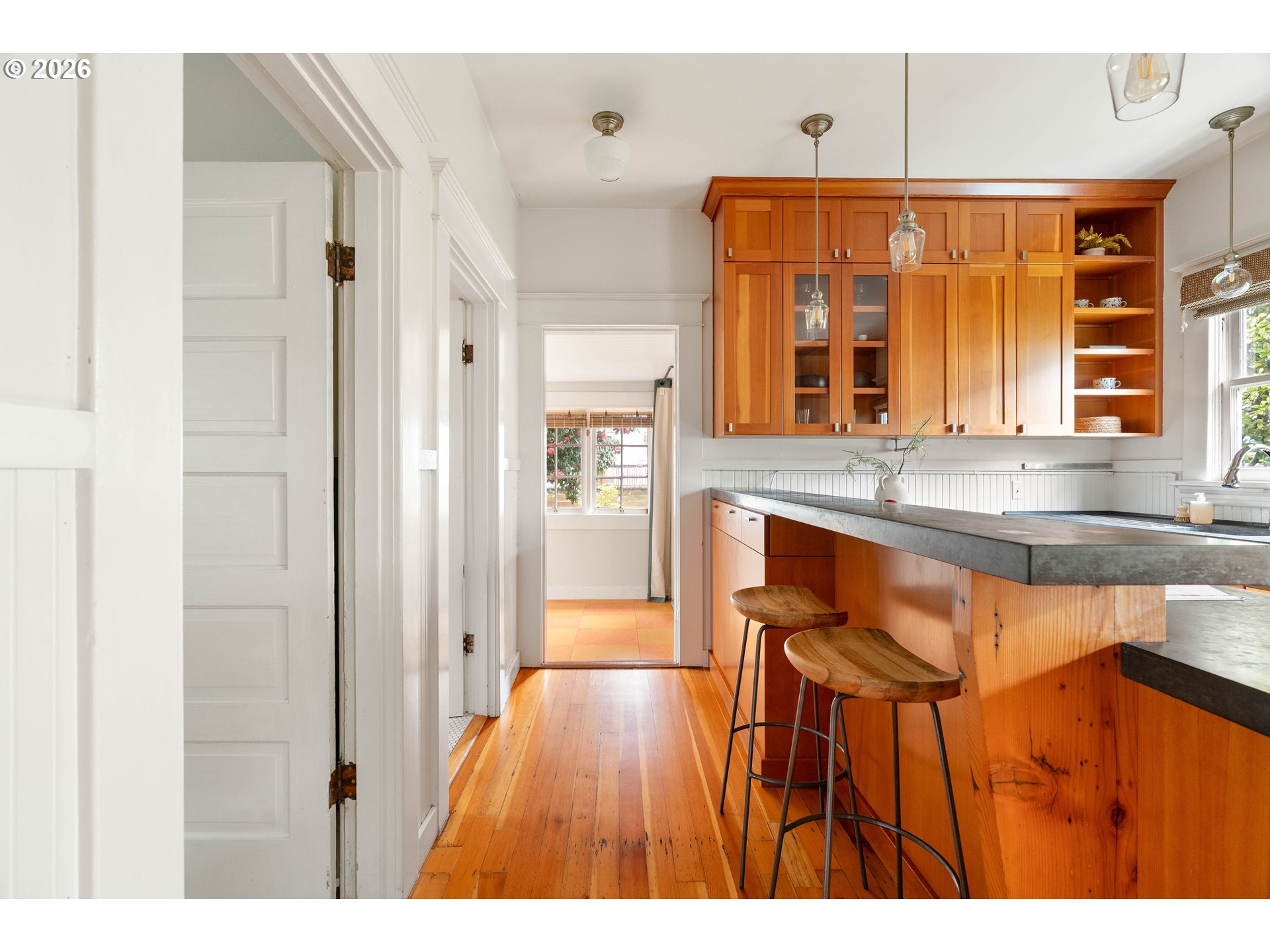 This amazing Portland bungalow is just moments from Alberta’s vibrant restaurants and shops, and has incredibly low property taxes! A welcoming front porch leads into light-filled living and dining spaces where classic charm meets modern comfort. The thoughtfully designed kitchen features custom fir cabinetry, concrete countertops, and a generous breakfast bar ideal for gathering. An enclosed sun porch extends the living space and opens to a private backyard retreat with a dining patio and raised garden beds. A rare urban sanctuary, perfect for effortless indoor-outdoor living and entertaining. [Home Energy Score = 5. HES Report at https://rpt.greenbuildingregistry.com/hes/OR10047433]