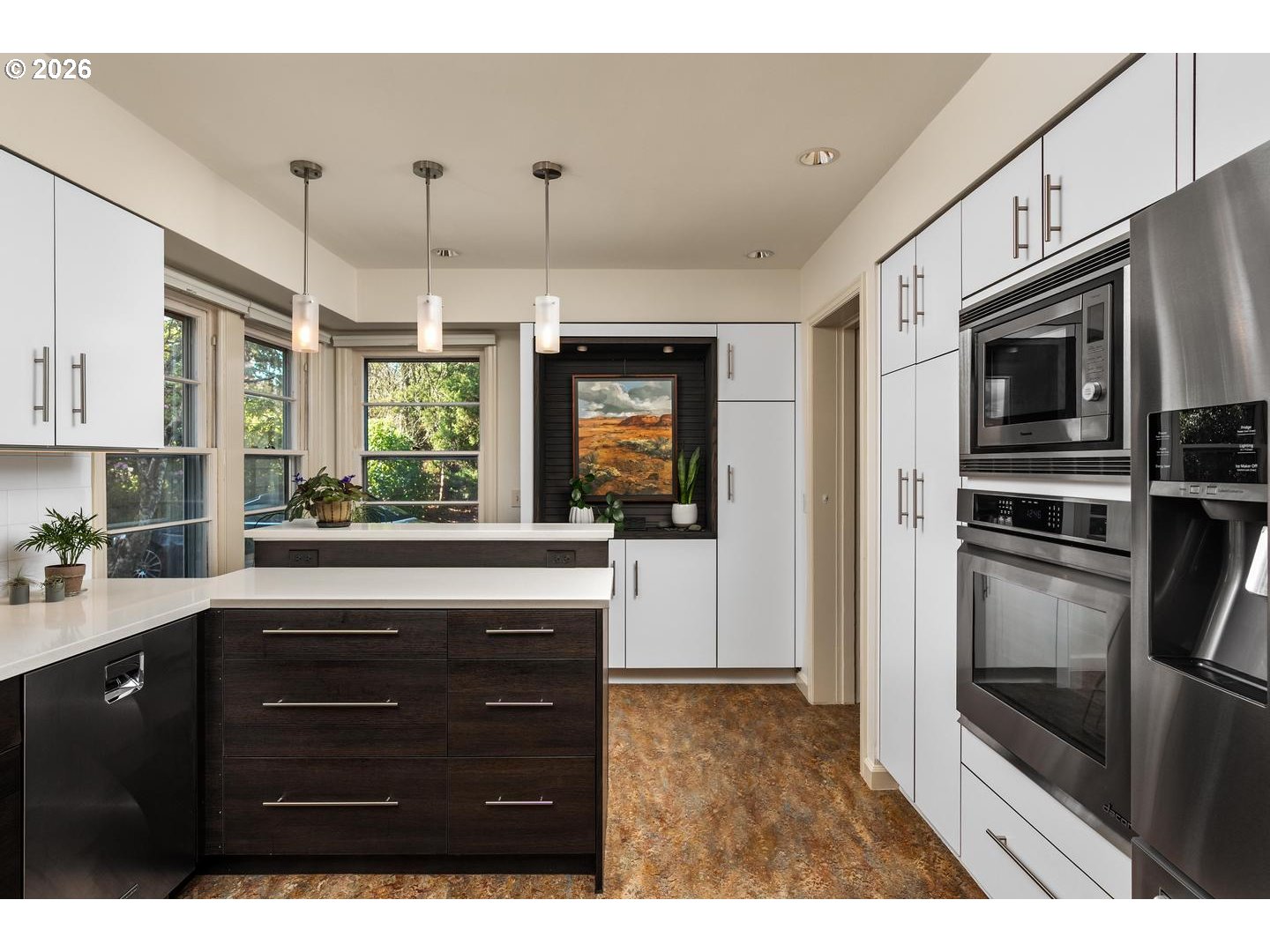 Important: The address is located on a Court, not a Street. Set on nearly an acre, this serene property offers the feel of a private retreat, surrounded by mature trees and beautifully landscaped grounds. A spacious gourmet kitchen, remodeled in 2015, offers stainless steel gas appliances, a breakfast bar, and custom built-ins—ideal for both everyday living and entertaining. The living room is warm and inviting with a wood-burning fireplace, beautifully refinished wood floors, a classic coved ceiling, and an abundance of windows that fill the space with natural light. The spacious primary suite is a true sanctuary, offering a massive walk-in shower, skylight, and an adjacent laundry room for added convenience. A cozy dining room by the window creates the perfect spot for everyday meals or quiet mornings. A welcoming front patio and generous rear outdoor living spaces invite relaxed entertaining, with a fireplace and wall-mounted screen setting the stage for cozy summer movie nights. An oversized one-car garage adds functionality, while the expansive grounds provide privacy, tranquility, and endless possibilities for enjoying the outdoors. A right-of-way and trail are located adjacent to the property, providing direct access to Tryon Creek State Park. This lot is potentially dividable, please verify with the city. [Home Energy Score = 5. HES Report at https://rpt.greenbuildingregistry.com/hes/OR10244023]