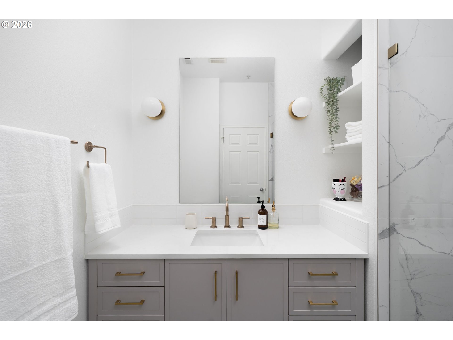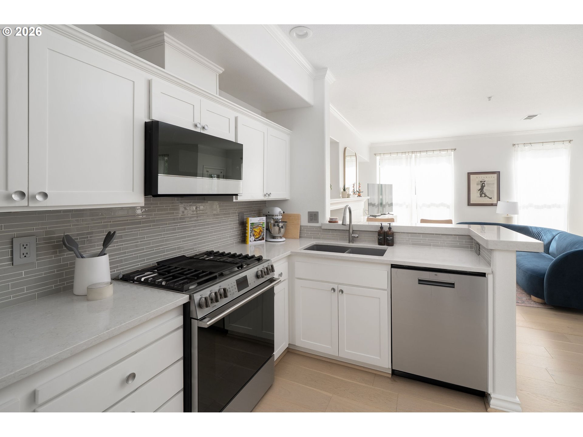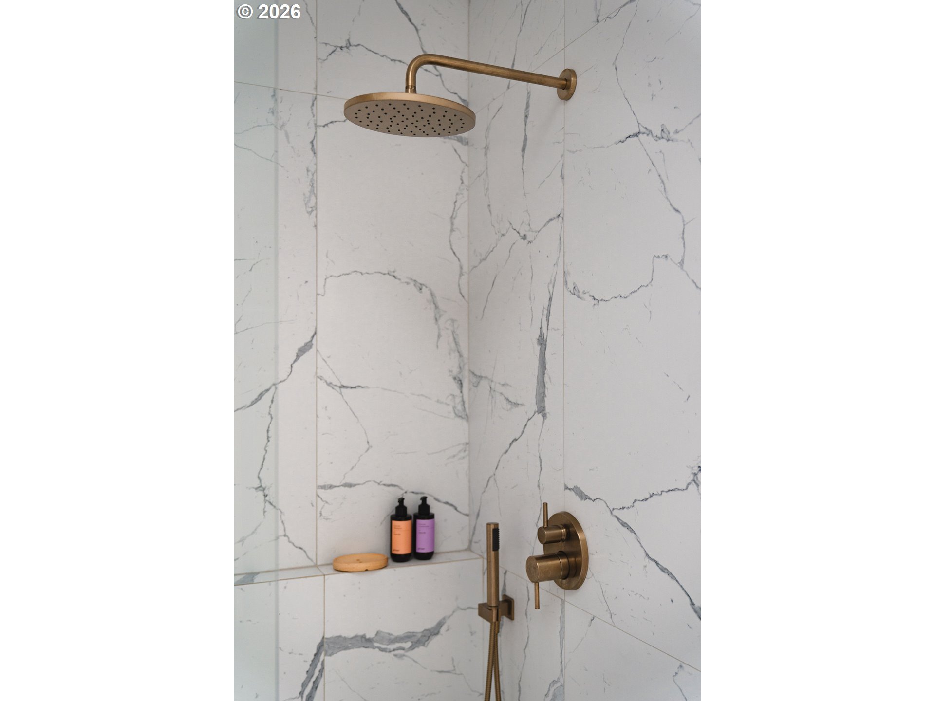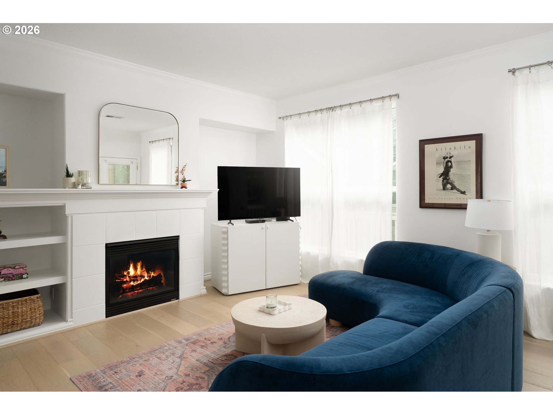Nestled in the highly sought-after Forest Heights community, 10253 NW Wilshire Ln offers a truly rare opportunity to own a beautifully updated end-unit brownstone surrounded by trails, trees, and everyday conveniences.This 3-bedroom, 3-full-bath home has been thoughtfully renovated from top to bottom with timeless, high-end finishes. Newer white oak floors run throughout, complemented by all-new West Elm and Moss & Cedar lighting that elevates every space. The kitchen shines with quartz countertops, tile backsplash, and a full suite of updated Café appliances—including gas range/oven, refrigerator, dishwasher, and built-in microwave—plus a bonus space just off the kitchen perfect for a home office, breakfast nook, or flex space.The light-filled living room features custom built-ins, a gas fireplace, and tall windows that bring the outdoors in. Step outside to your private deck—an ideal spot for summer dining and relaxing.Upstairs, the primary suite is a true retreat with a walk-in closet complete with custom California Closets built-ins and a beautifully updated bath featuring a skylight, new vanity and fixtures, and a stunning floor-to-ceiling tiled walk-in shower with modern brass finishes. A second updated bathroom upstairs adds style and convenience. Downstairs, a second suite includes an updated bath and opens via sliding doors to its own private patio and yard area—perfect for guests, multi-generational living, or a private work-from-home setup. All bedroom closets include custom California Closets organizers.Additional upgrades include a Navien tankless water heater (2024) and air conditioning (2023). Every detail has been carefully chosen and impeccably executed—no stone left unturned.Enjoy the best of Forest Heights living with serene pathways right outside your door, a true “in the forest” feel, and walkable access to Forest Heights Park, coffee, dining, and more.