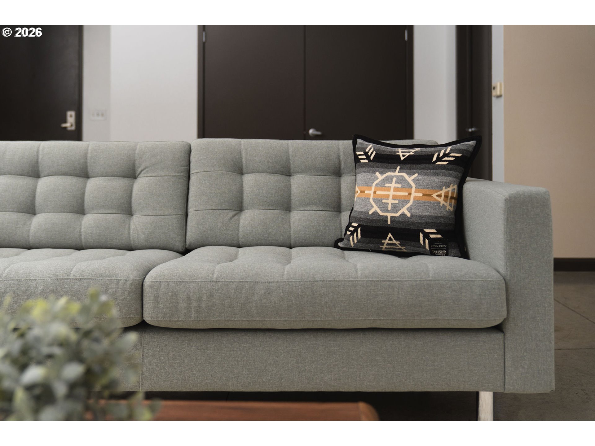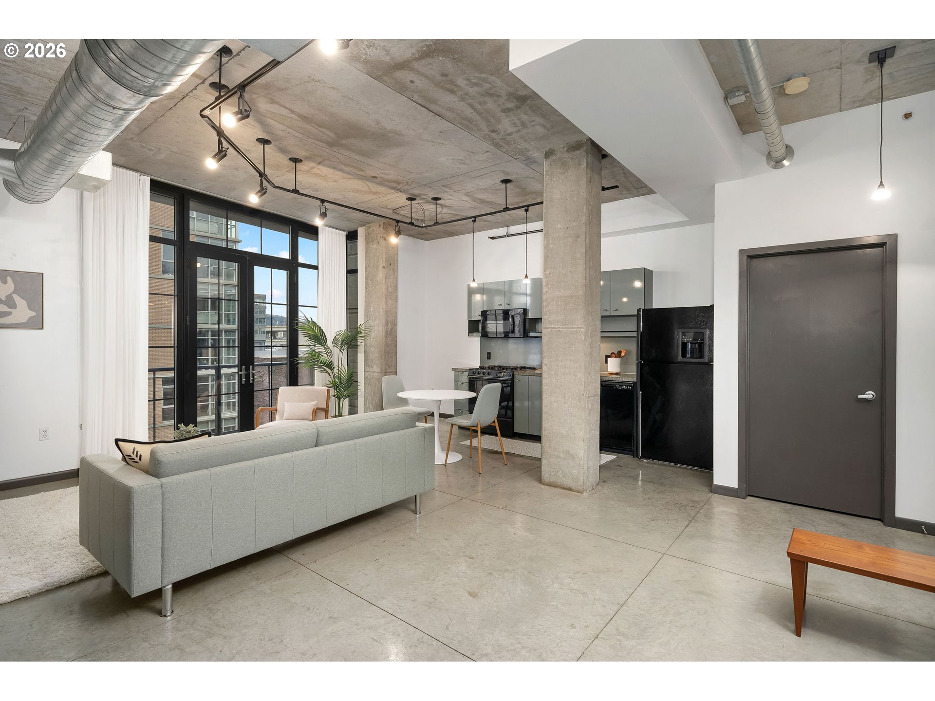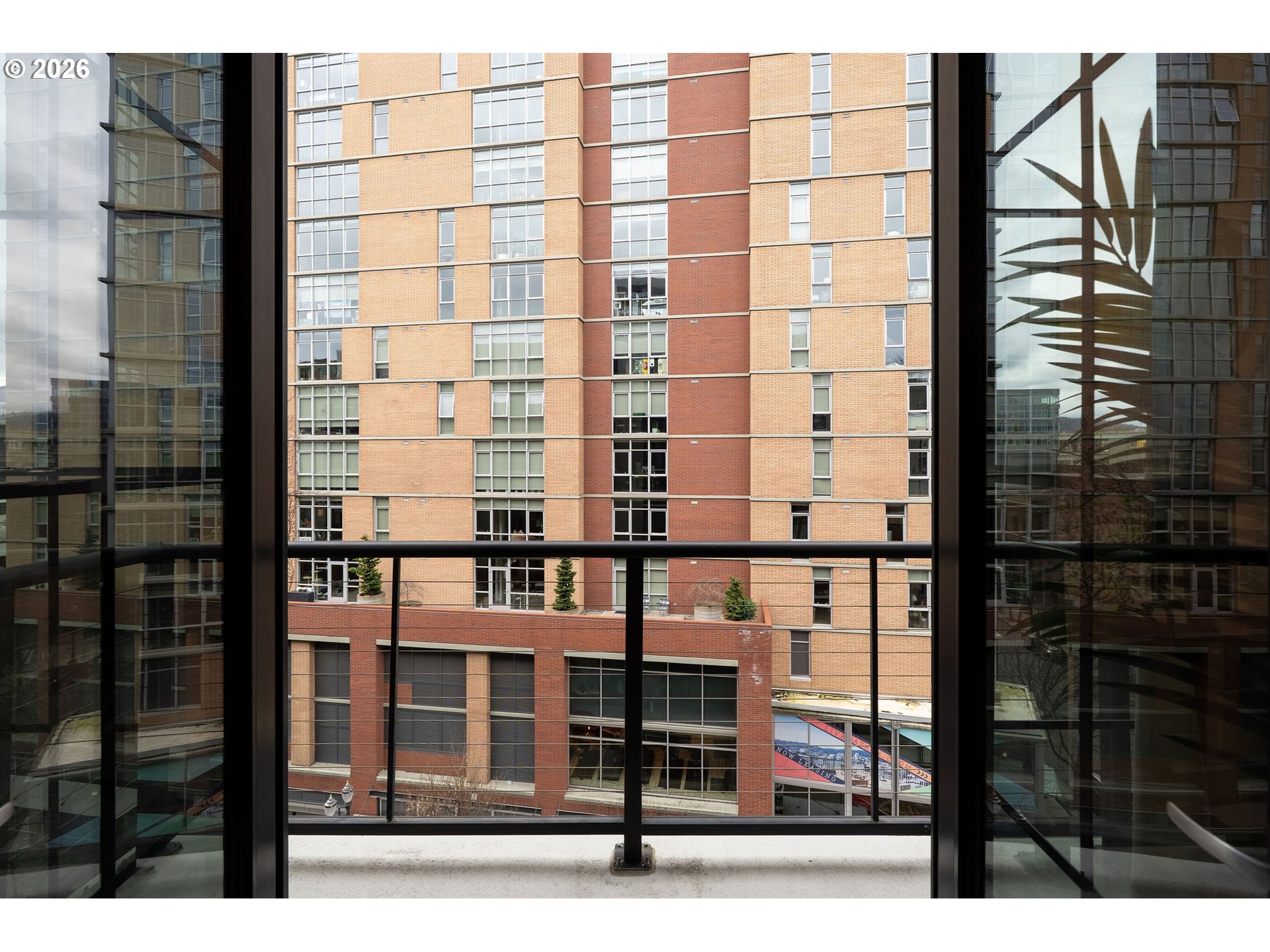 Streetcar Lofts no. 415. A refined pied-à -terre with an open, west-facing living space framed by 10-foot French doors and floor-to-ceiling windows. Enjoy sunsets with peekaboo views of Portland’s West Hills. Below, the landscaped courtyard is a certified wildlife habitat, a quiet green counterpoint to the city. The fitness studio overlooks NW Lovejoy, grounding your daily routine in the rhythm of the neighborhood. Deeded parking and generous storage add rare convenience. With a 99 Walk Score, cafés, galleries, parks, and the streetcar are just outside your door.
