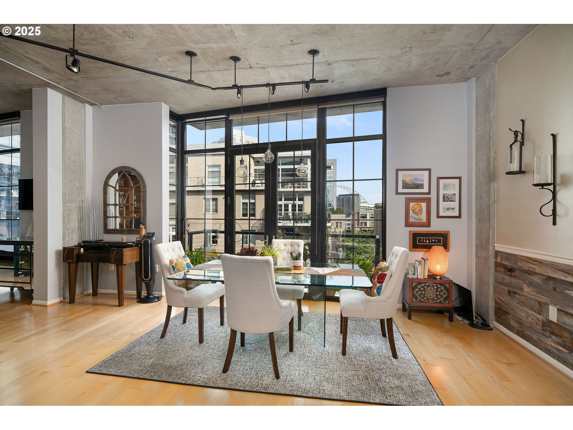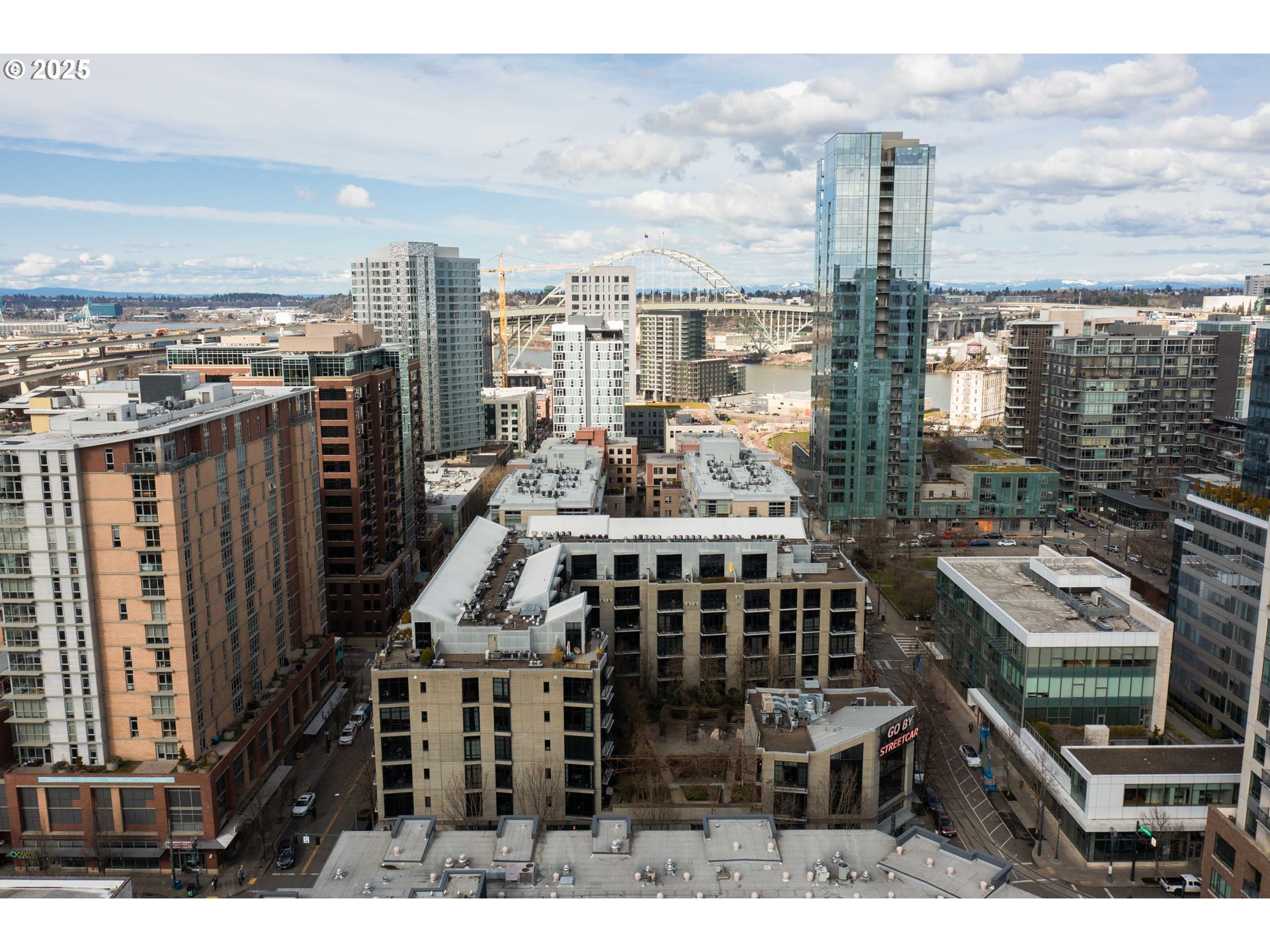 (503) 893-8874This north-facing loft at Streetcar Lofts frames views of the Fremont Bridge and city skyline. High concrete ceilings and a full wall of windows define the open plan, with hardwood floors throughout. The kitchen is updated with stainless appliances, granite counters, and a walk-in pantry that doubles as storage.A custom office with Murphy bed makes hosting guests simple, complemented by a second full bath with modern finishes. The primary suite is enclosed by glass walls and doors, with a large walk-in closet and remodeled bath. Building amenities include a landscaped courtyard, community room, and a gym with neighborhood views. Outside, you’re a block from Tanner Springs Park, connected to three Streetcar lines, and minutes from Forest Park trails.