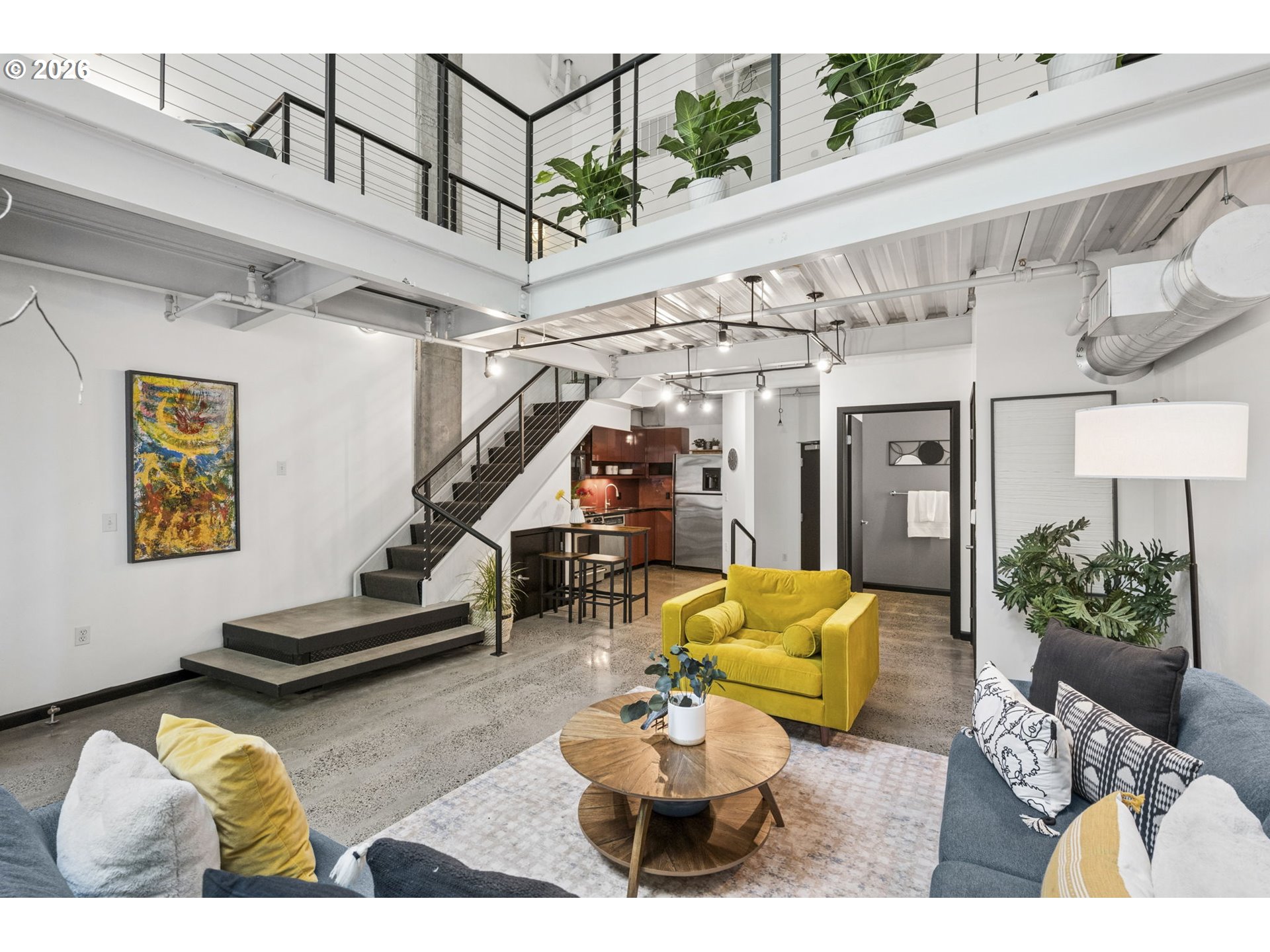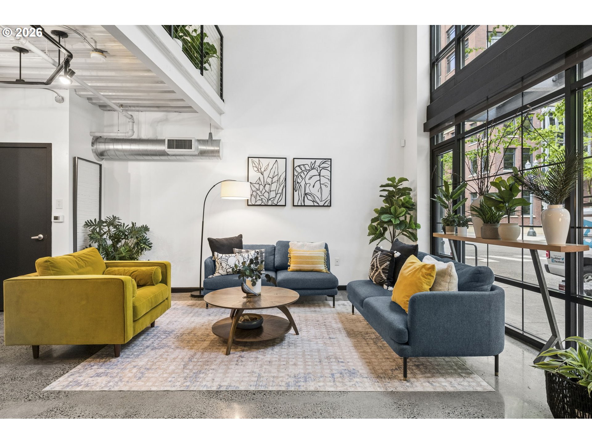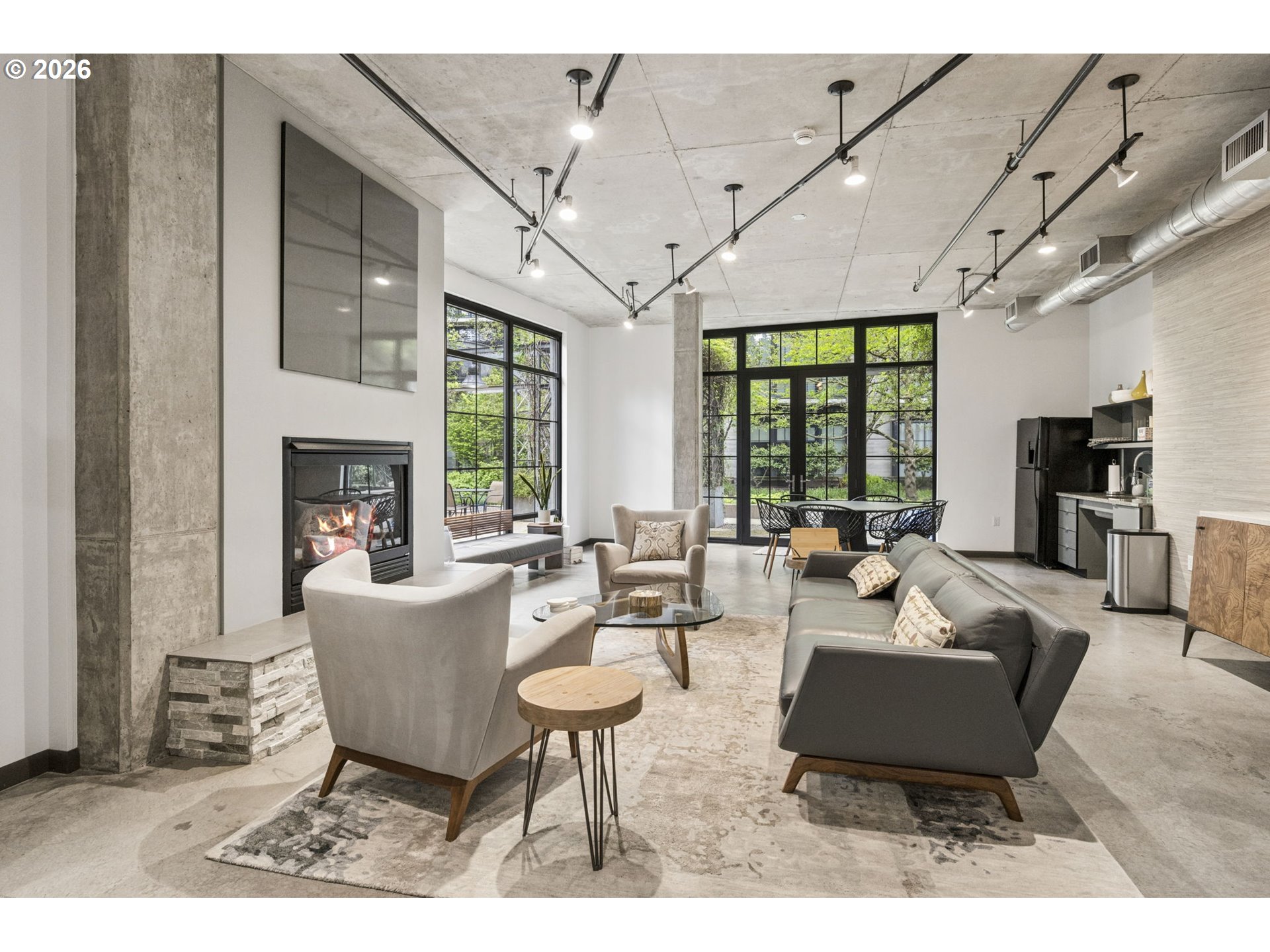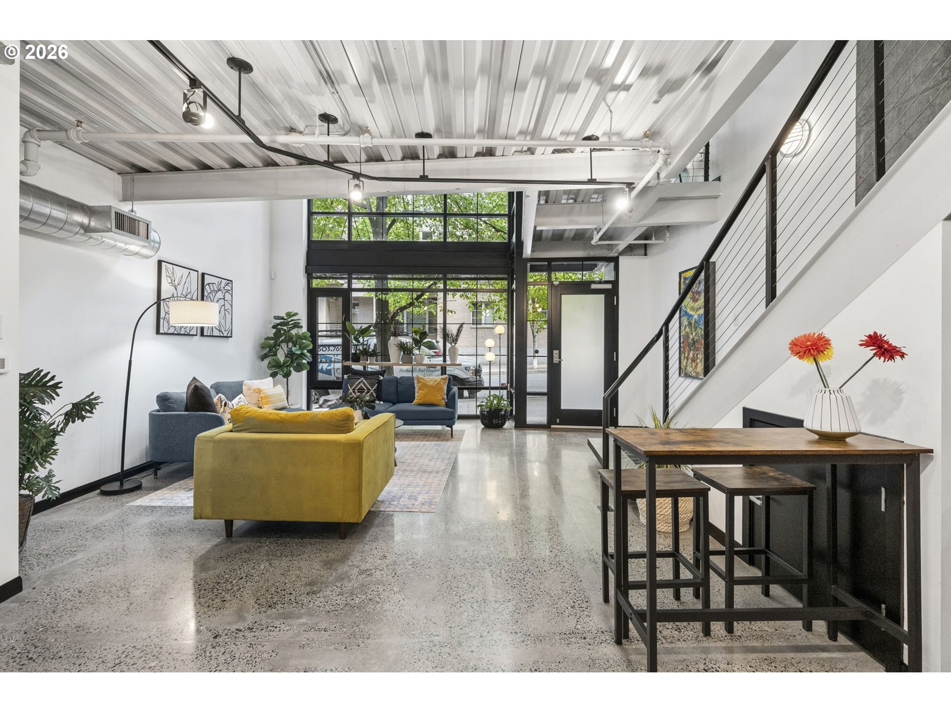The Pearl is such the SWEET SPOT to live, work, or even own an Air Bnb! TH2 is a live/work townhome-style unit in the Streetcar Lofts. These mixed-use units rarely come available. The zoning allows for multiple opportunities —just live in this cool space, run a small business, or both!! Open concept, 2 levels with super tall ceilings, massive floor to ceiling windows and beautiful sealed cement floors. Modern industrial elements and really the perfect amount of space. Extraordinarily quiet. Main floor includes the living and dining areas, kitchen, a half bath, storage and interior/exterior entrances. The upper level is the primary suite: cute little balcony, walk-in closet, laundry closet for full size stackables, and a full bathroom. The secured building offers an outdoor courtyard for entertaining and BBQing, cozy community room, a 2 level on-site fitness room with a view, deeded garage parking and deeded private storage. The complex just had an abundance of work done--this is THE BEST time to purchase!! Life in the Pearl - the heart of everything fun! First Thursday, tons of food/coffee options, galleries, boutique shopping, grocery store, the streetcar, and several parks. All right outside your door.