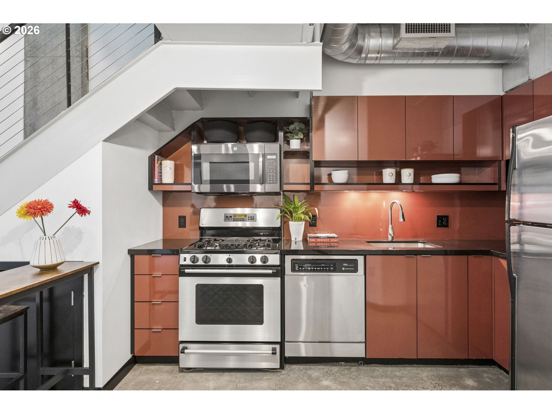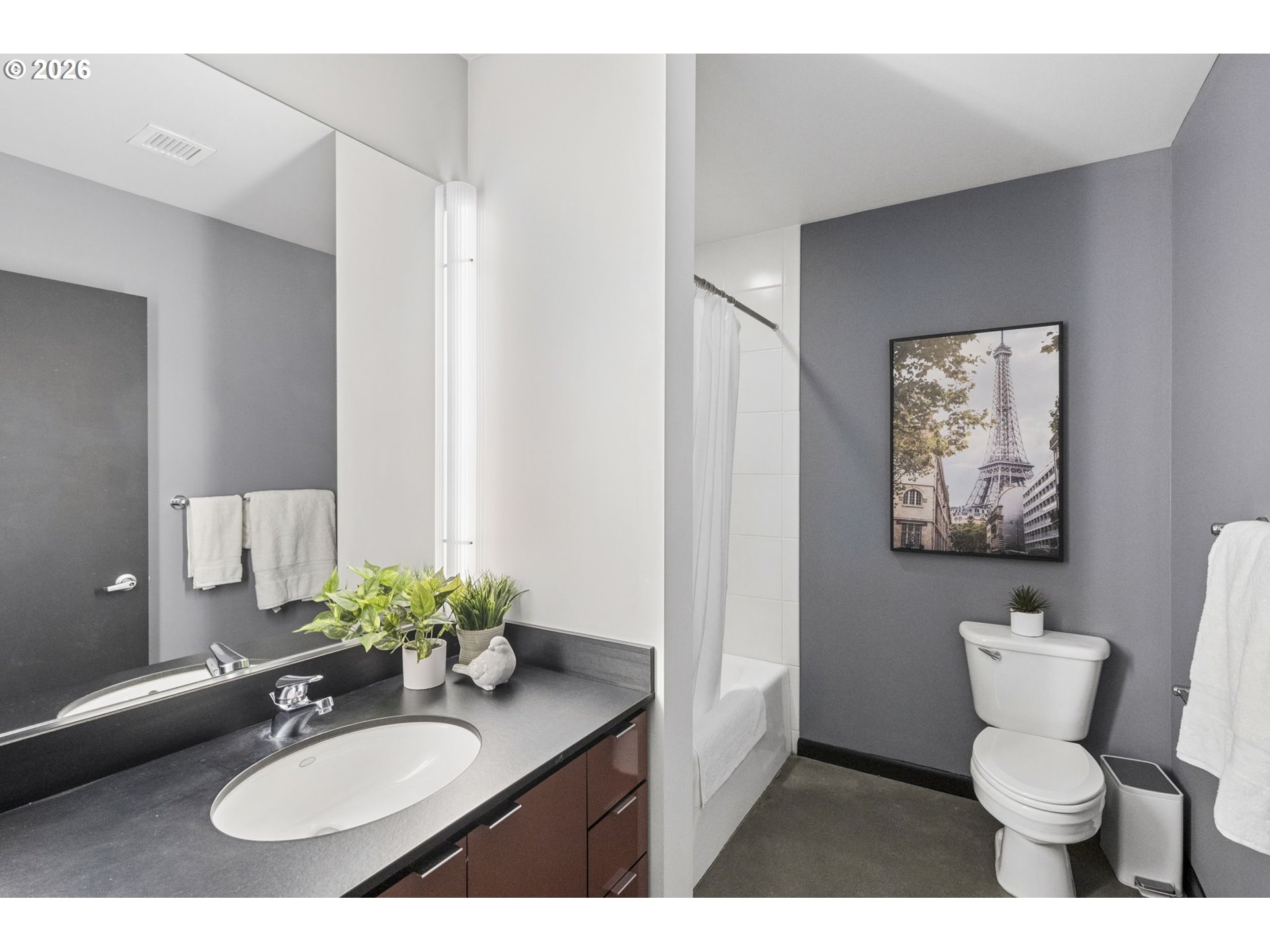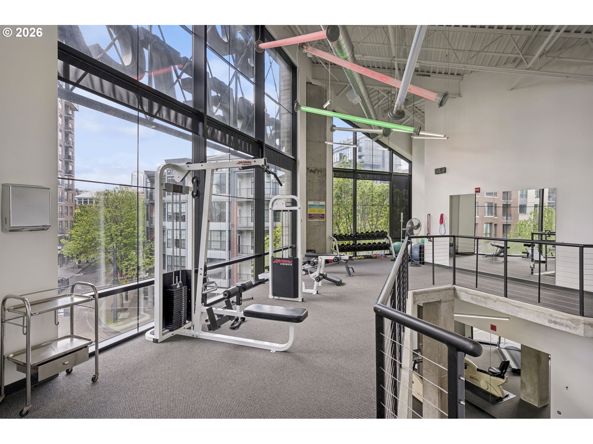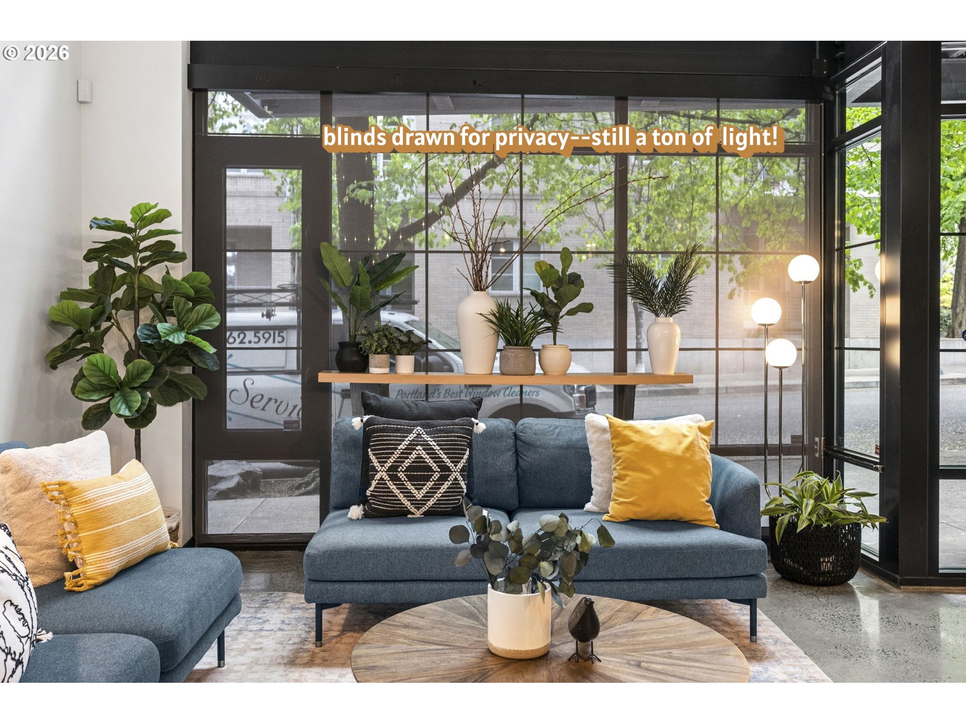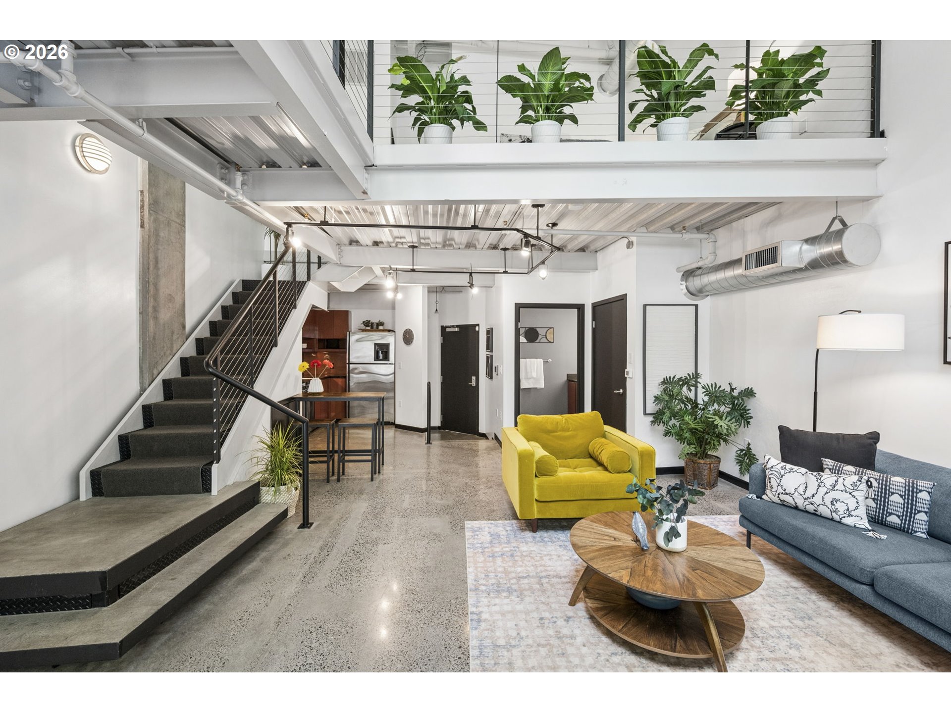 The Pearl is such the SWEET SPOT to live, work, or even own an Air Bnb! TH2 is a live/work townhome-style unit in the Streetcar Lofts. These mixed-use units rarely come available. The zoning allows for multiple opportunities —just live in this cool space, run a small business, or both!! Open concept, 2 levels with super tall ceilings, massive floor to ceiling windows and beautiful sealed cement floors. Modern industrial elements and really the perfect amount of space. Extraordinarily quiet. Main floor includes the living and dining areas, kitchen, a half bath, storage and interior/exterior entrances. The upper level is the primary suite: cute little balcony, walk-in closet, laundry closet for full size stackables, and a full bathroom. The secured building offers an outdoor courtyard for entertaining and BBQing, cozy community room, a 2 level on-site fitness room with a view, deeded garage parking and deeded private storage. The complex just had an abundance of work done--this is THE BEST time to purchase!! Life in the Pearl - the heart of everything fun! First Thursday, tons of food/coffee options, galleries, boutique shopping, grocery store, the streetcar, and several parks. All right outside your door.