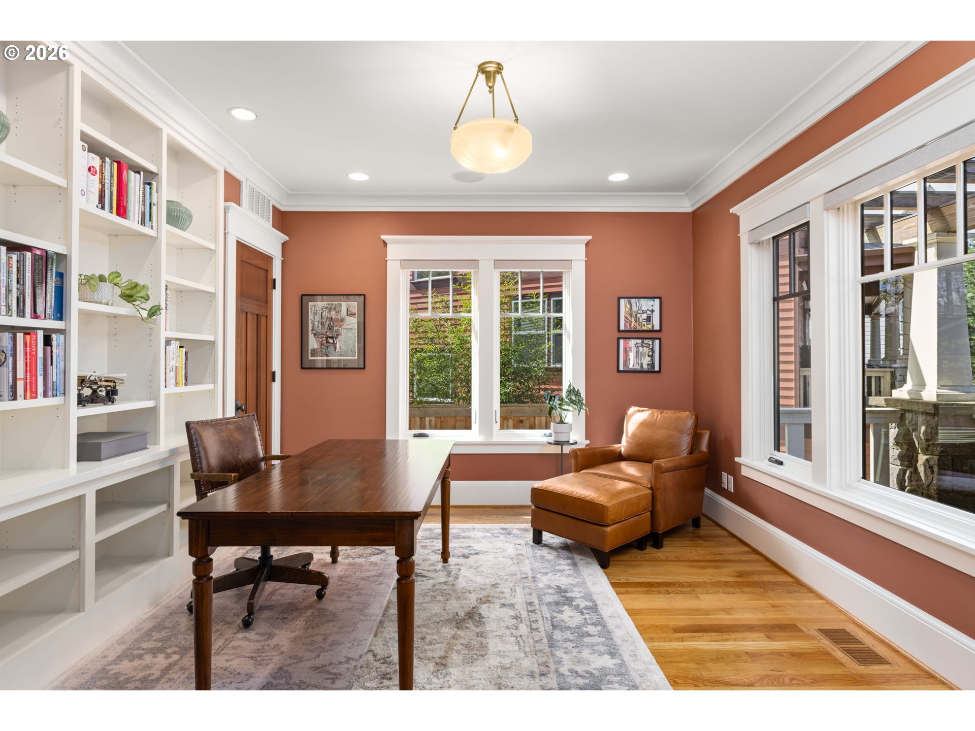 OPEN 4/4 1p-3p & 4/12 12p-2p. Custom-built,"historically sensitive" reproduction Craftsman in a rare private cul-de-sac setting in a beautiful pocket of Mt. Tabor. High-end finishes throughout with an open-concept living/dining layout anchored by a chef’s kitchen featuring an oversized island, Dacor dual-oven 6-burner range, Sub-Zero refrigerator/freezer, abundant built-ins, and folding French doors opening to a covered, heated deck with gas line and new high-end decking. The yard is fully fenced and completely re-landscaped providing a private and beautiful area for play, entertaining or just relaxing. The light and bright living spaces include a great room with gas-start wood-burning fireplace and built-in cabinets and window seats with storage, an open formal dining room with a built-in china hutch and an additional window seat. You'll also find a den/library/office with a gorgeous divided light pocket door, two closets and a wall of custom bookshelves. Upstairs includes a spacious primary suite with walk-in closet, large private balcony, spa-inspired bath with heated floors, soaking tub, and walk-in shower. Two additional bedrooms with full bath and upper-level laundry with washer/dryer complete the upper level. A fully finished basement offers a guest bedroom, steam shower bath, media room with surround sound, flexible bonus room (gym,studio) and large temperature-controlled wine cellar. This beautiful home maintains the classic architecture of old Portland with all of today's upgrades. Homes like this don't come around very often- it's definitely a must see! [Home Energy Score = 8. HES Report at https://rpt.greenbuildingregistry.com/hes/OR10148754]