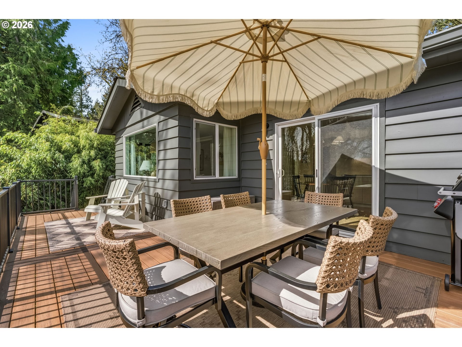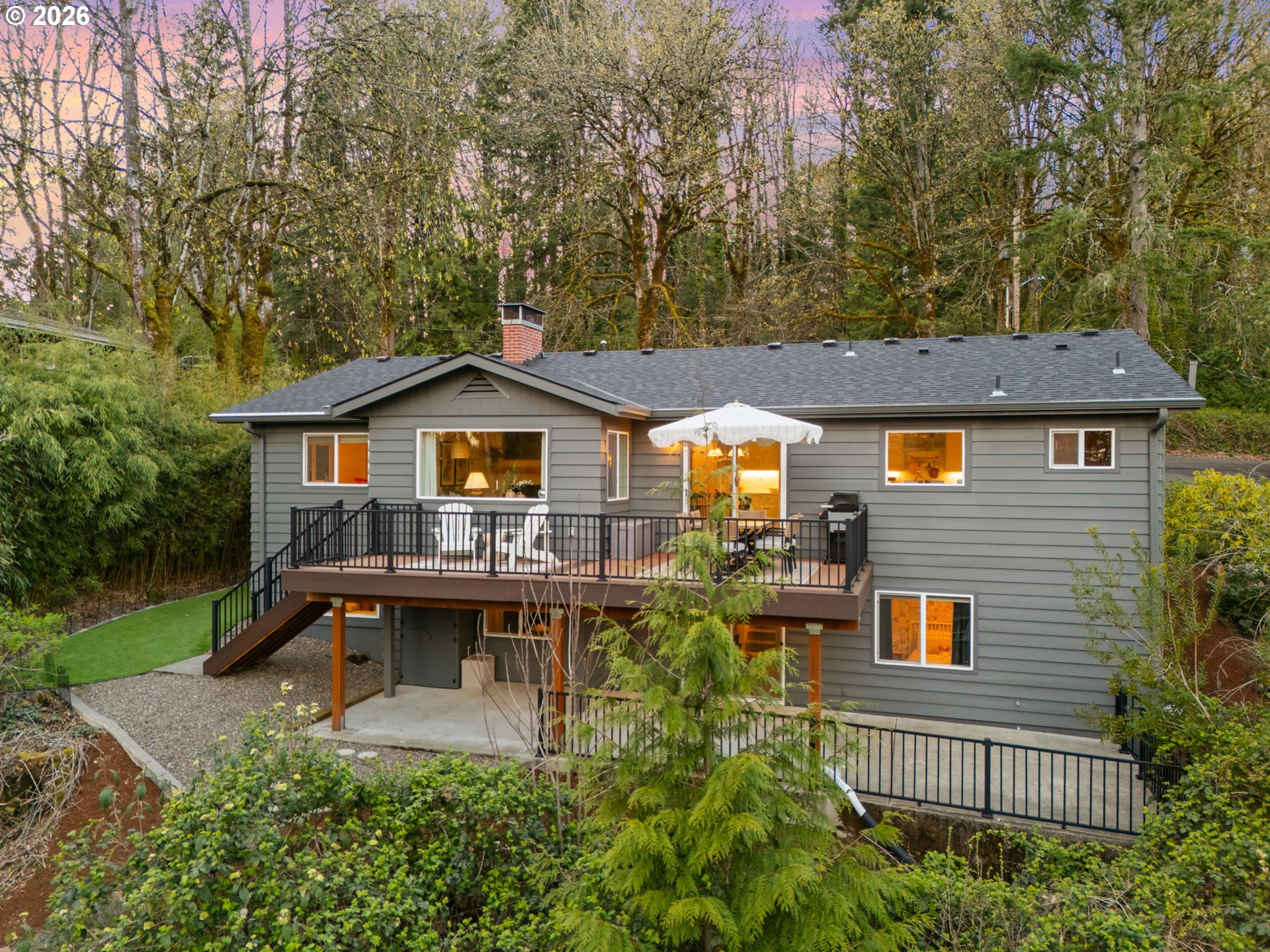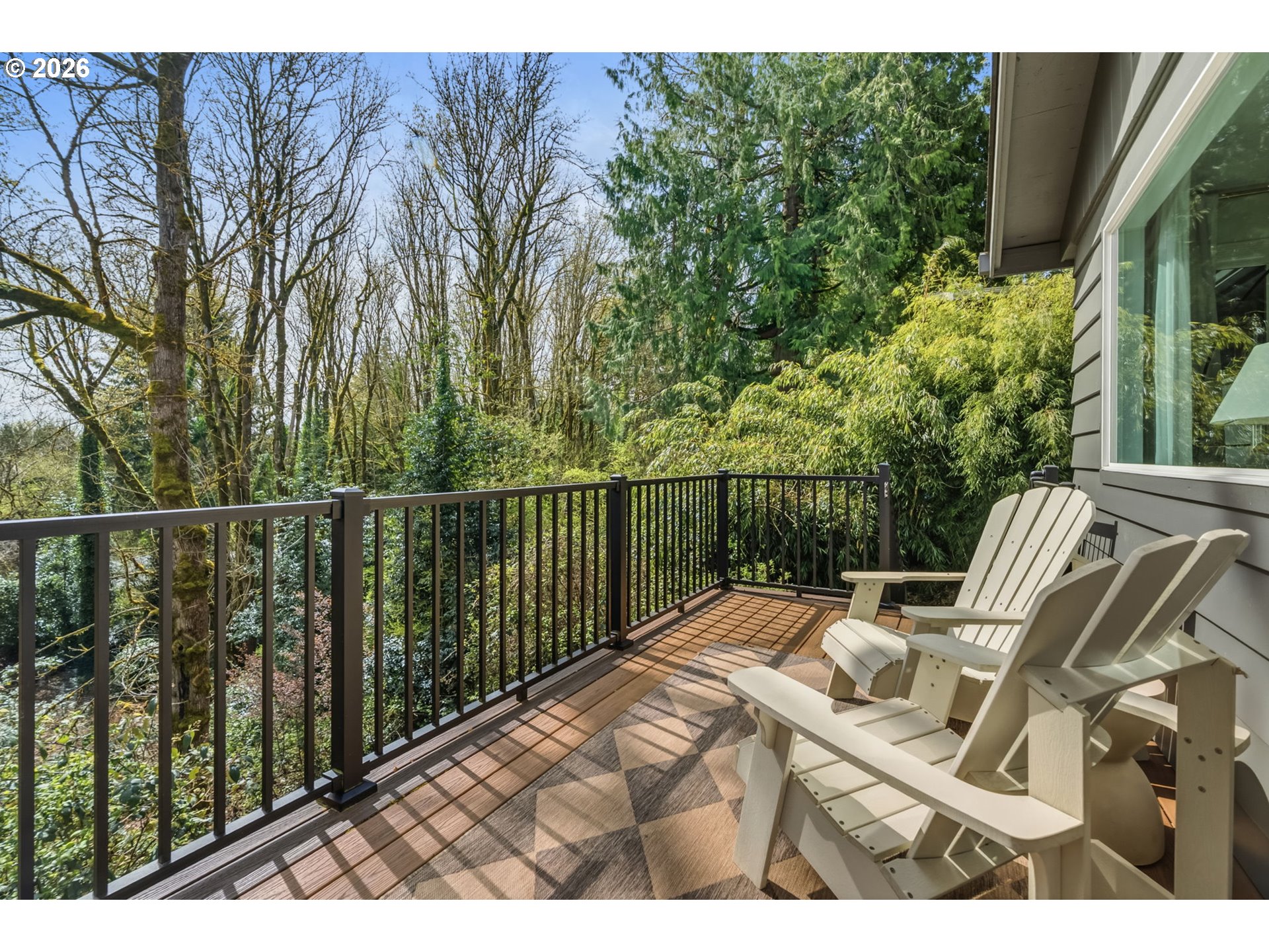 Marshall Park Mid-Century filled with character! Tucked on a quiet street among the trees, this home is the perfect blend of timeless style & peaceful living. You know that house that feels like you are in a magazine - it has the perfect finishes, the exact paint colors & the light fixtures from your very own Pinterest board? This is that house. Featuring a brand new kitchen with custom cabinetry, quartz slab backsplash, designer tile & Rejuvenation hardware. Fresh oak hardwood floors create a seamless flow, while south-facing picture windows provide abundant natural light. The primary suite includes a walk-in closet & spacious attached bath - something you don't see everyday in a 1963 home. Relax on the new Trex deck with stairs to the lower patio and expansive yard. Other recent updates include a brand new roof, gutters, exterior & interior paint, garage door and updated electrical. Don't miss the path at the end of the street leading you to the beautiful Marshall Park. Just minutes to popular Multnomah Village & Hillsdale, plus hiking trails & Tryon Creek State Park only steps away. You won't forget this slice of paradise on a third of an acre! [Home Energy Score = 6. HES Report at https://rpt.greenbuildingregistry.com/hes/OR10187998]